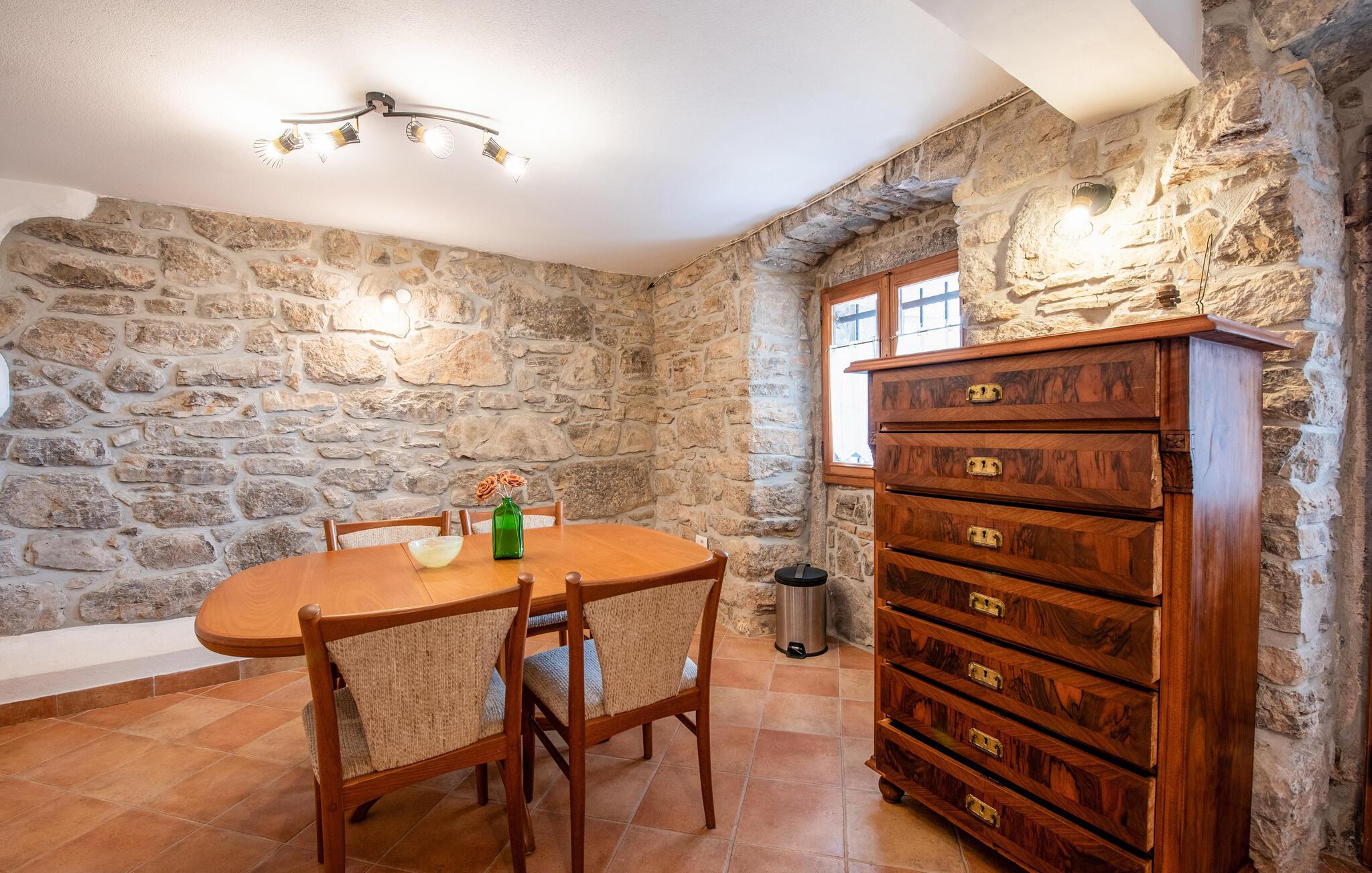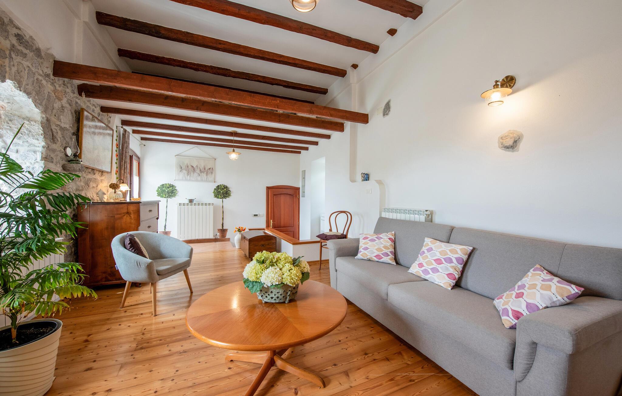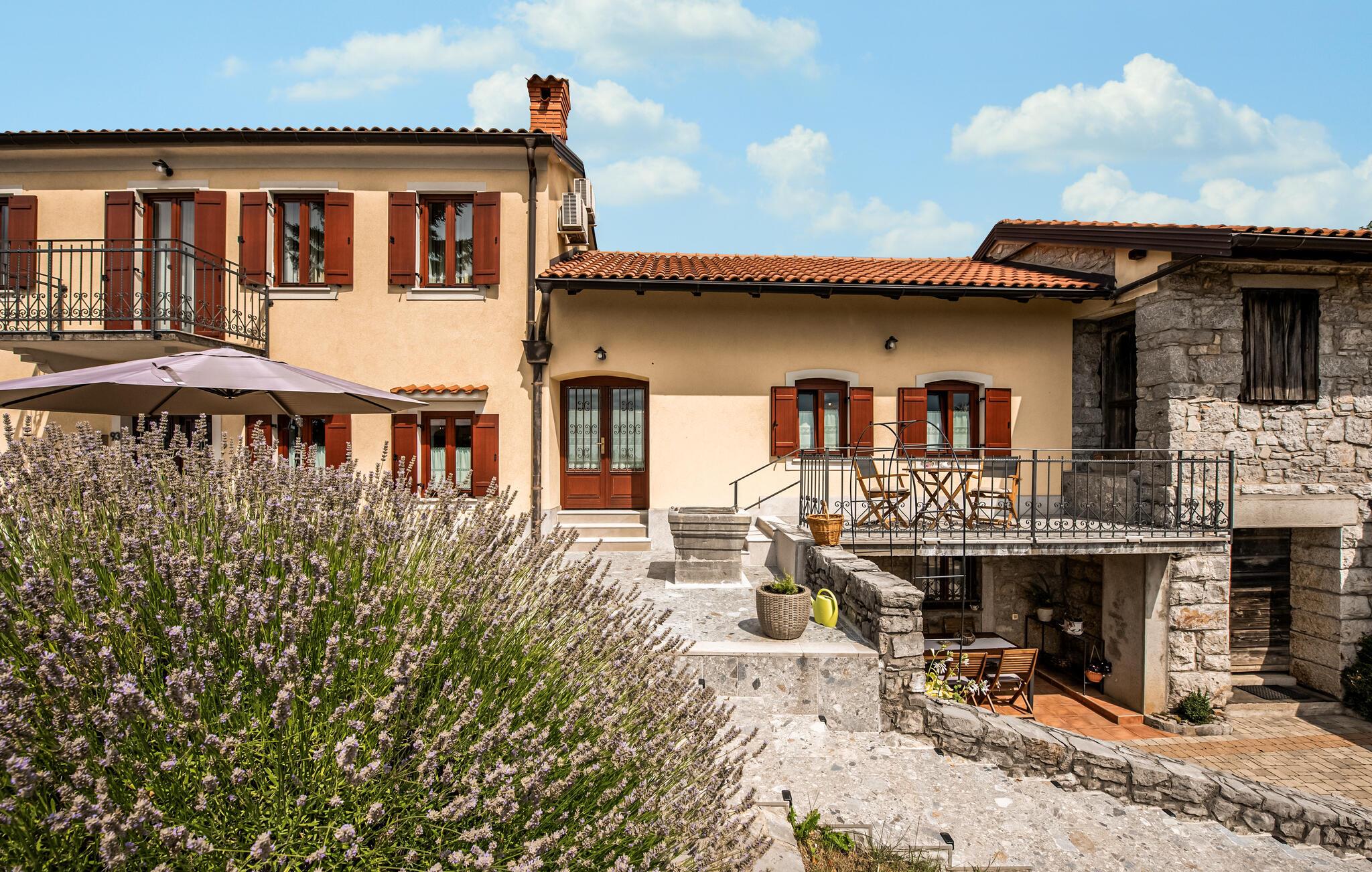 Denne charmerende ferievilla ligger i den idylliske landsby Jusici, kun nogle få kilometer fra kystbyen Opatija. På den rummelige grund kan I nyde naturens fred og ro og finde jeres egen oase. Der er plads nok til alle, uanset om I rejser med familie eller venner. Nyd muligheden for at begynde hver dag med en frisk svømmetur i den udendørs pool, som ligger lige ved siden af huset. Tilbered lækre grillretter på den store terrasse til frokost eller middag. Nyd de smukke ferieøjeblikke ved at spise sammen udendørs, mens I mærker sommerbrisen.