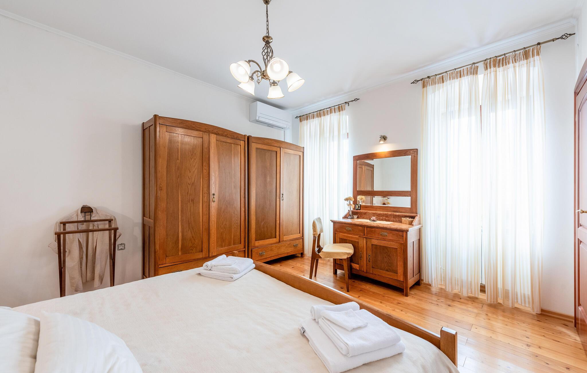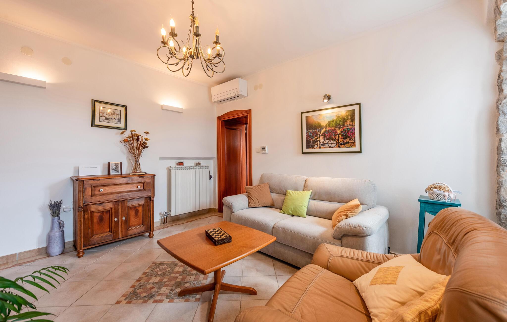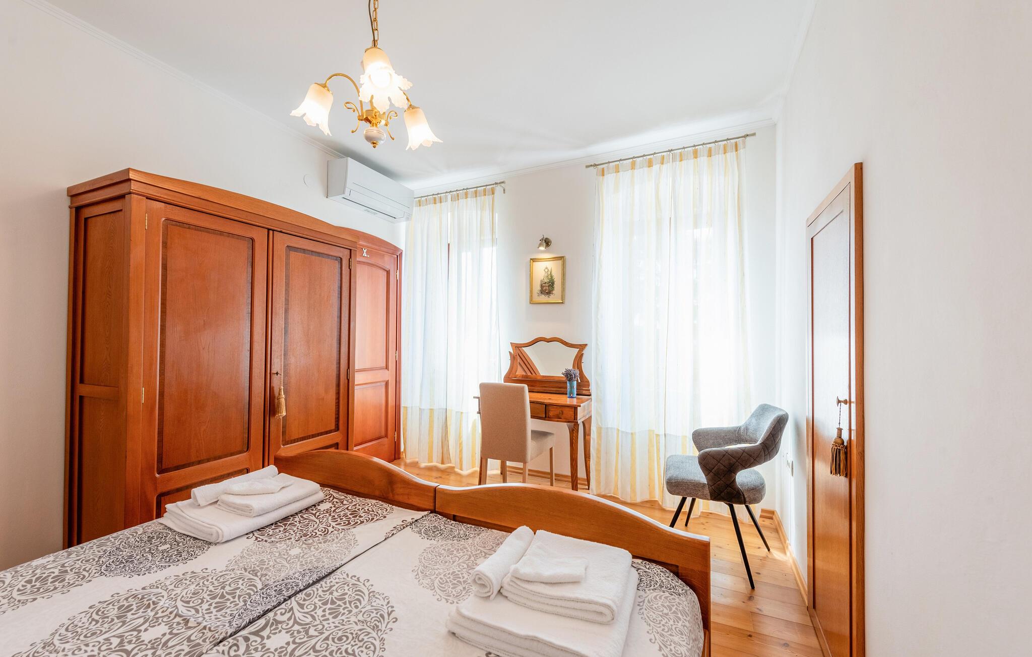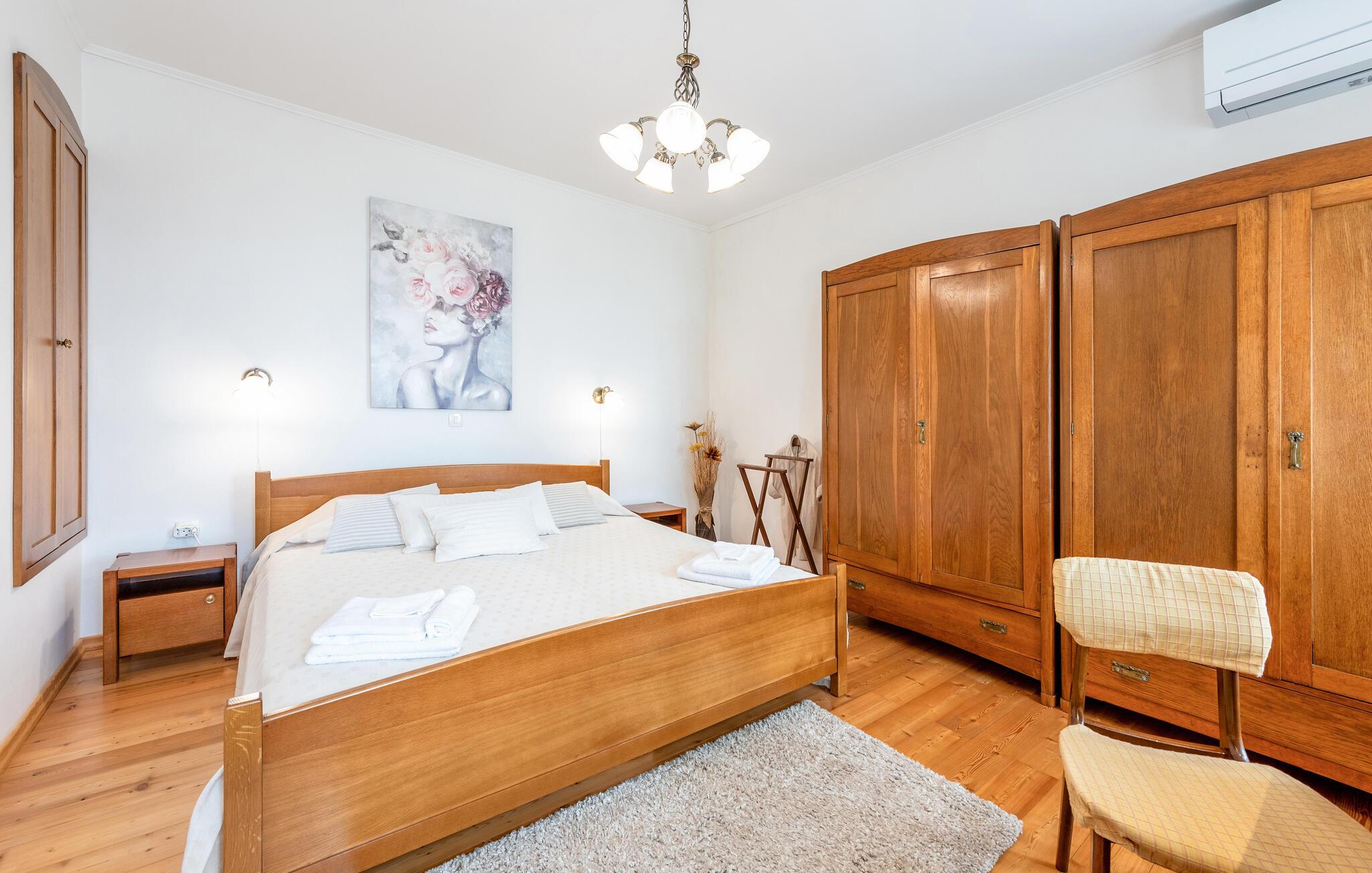 Denne charmerende ferievilla ligger i den idylliske landsby Jusici, kun nogle få kilometer fra kystbyen Opatija. På den rummelige grund kan I nyde naturens fred og ro og finde jeres egen oase. Der er plads nok til alle, uanset om I rejser med familie eller venner. Nyd muligheden for at begynde hver dag med en frisk svømmetur i den udendørs pool, som ligger lige ved siden af huset. Tilbered lækre grillretter på den store terrasse til frokost eller middag. Nyd de smukke ferieøjeblikke ved at spise sammen udendørs, mens I mærker sommerbrisen.