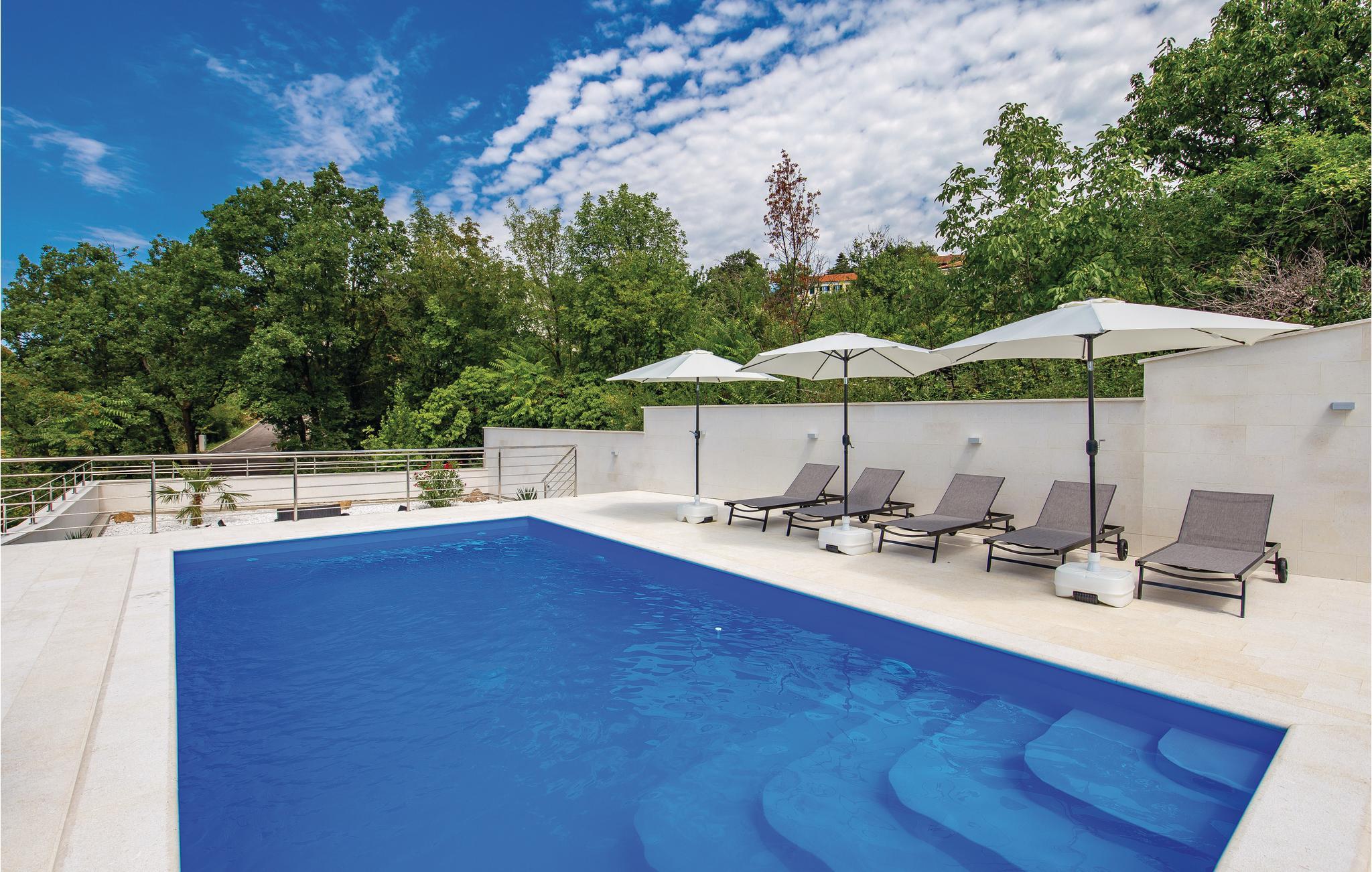 Dette moderne feriehus med have ligger i området omkring Kastav, ovenfor Opatijas riviera. Husets pool og terrasse bliver sommerens naturlige midtpunkt, hvor I kan dase i solen og tage end dukkert, og endda tilberede aftensmåltidet ved grillen. I kælderen er der dart og bordfodbold, og den høje stueetage hvor der er adgang via en trappe, rummer køkken spisestue og soeværelse. Huset byder endda på en betagende panoramaudsigt til Kvarnerbugten og byerne Rijeka og Opatija. Kastav ligger i nærheden med dets mange sportsaktiviteter.