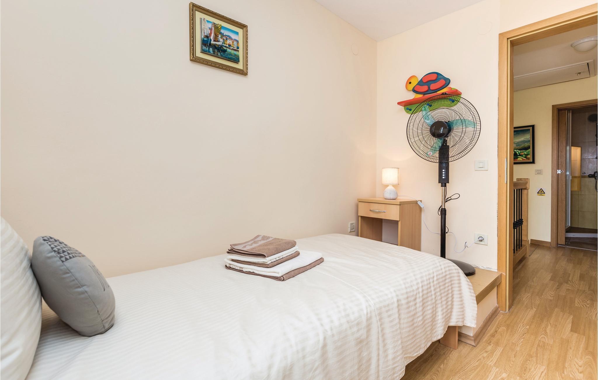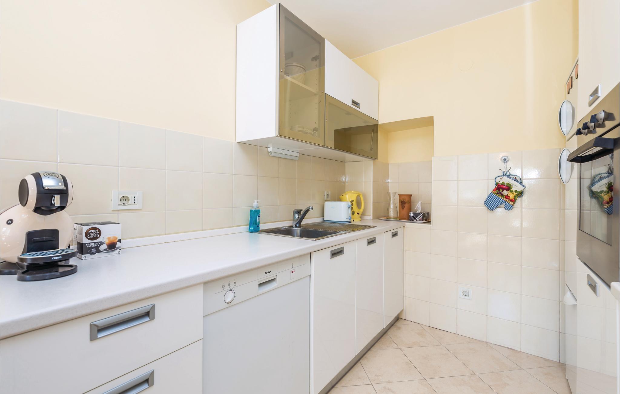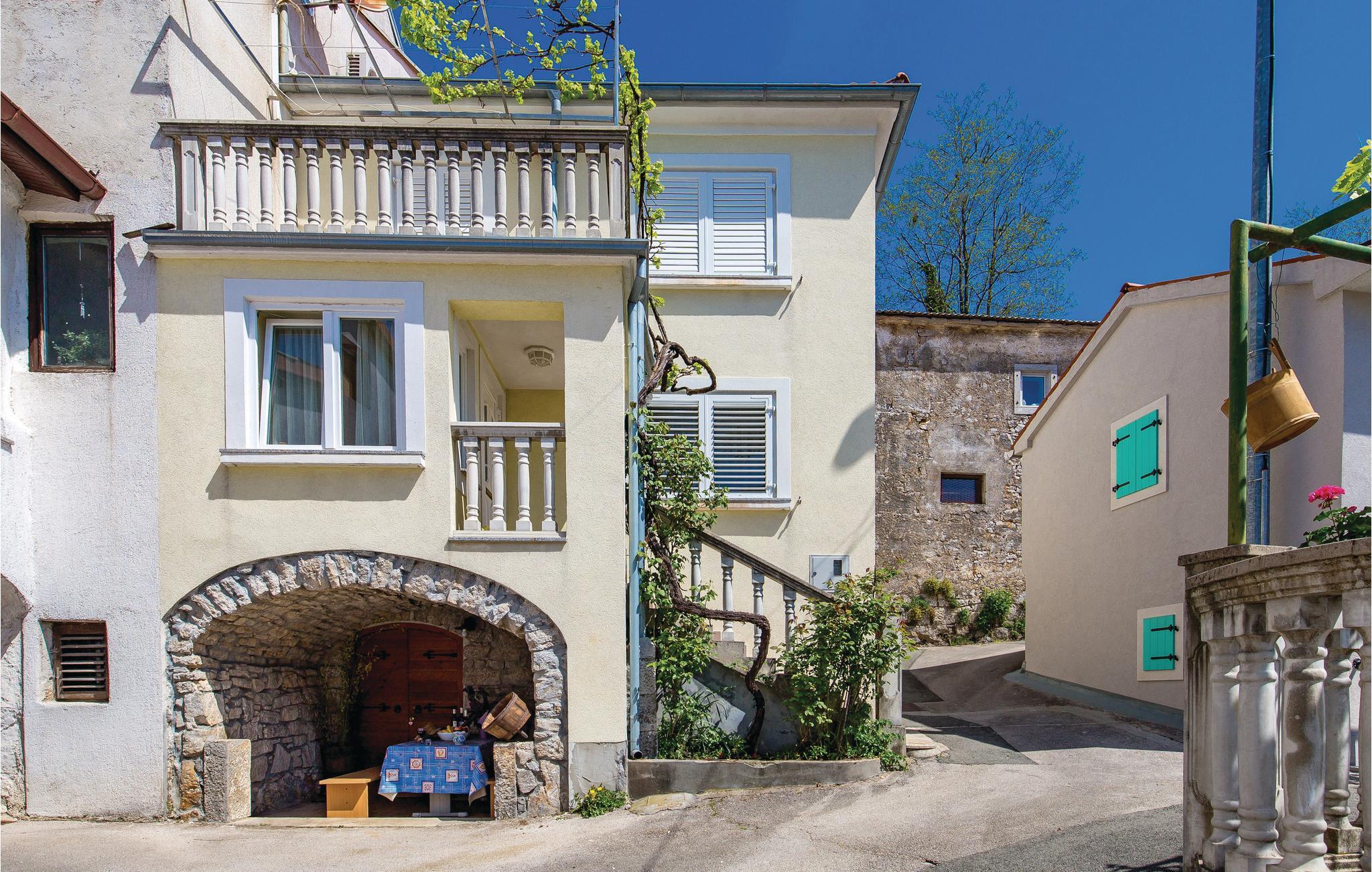Ovenover den betagende Kvarnerbugt, bagved Opatija, ligger denne smukt indrettede halvdel af et dobbelthus med 3 etager. I stueetagen er der en rustikt indrettede stentavernee med separat indgang udfra. 1. og 2. sal med indvendig trappe rummer dagligstuen med køkken, toilet, tre soveværelser og et badeværelse. Moderne, komfortable indretning, der er jeres garanti for en behagelig ferie. Der står to terrasser og en grill til rådighed. Huset er ideelt til naturelskere. Husejeren arrangerer vinsmagninger og deltagelse i vinhøsten om efteråret. I det praktiske badeværelse er der både en brusekabine og et badekar.
