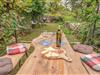 En kort gåtur fra lejligheden gennem den gamle bydel fører jer til den grønne oase. Ejendommen er omgivet af en naturlig, tør stenmur og ligger i en lille kløft, der strækker sig over ca. 100 m². Her er spisebordet og grillen, hvor I kan slappe totalt af, mens fuglene synger omkring jer.