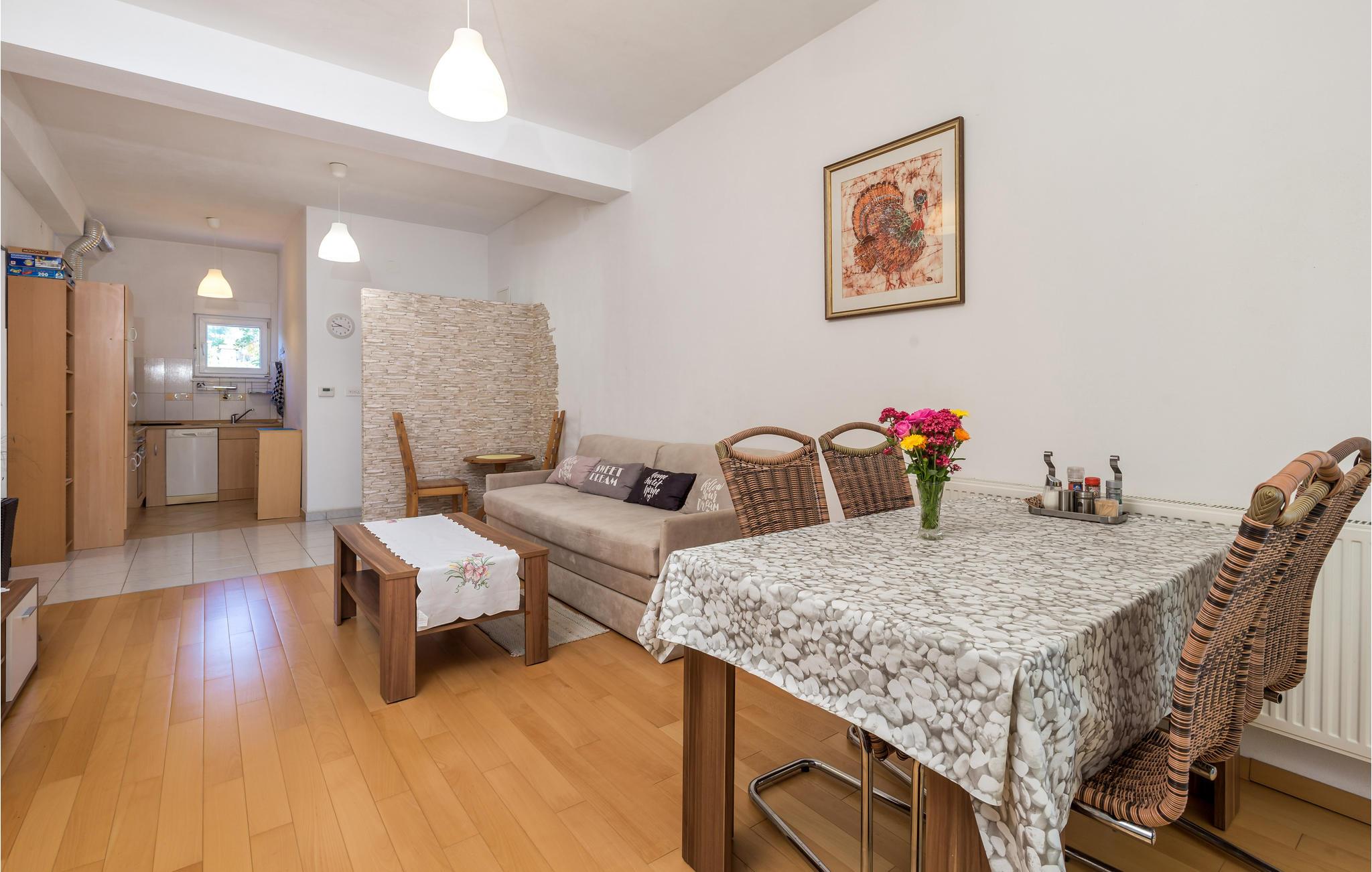 Denne hyggelige lejlighed ligger i et roligt område og danner en ideel base for en lille børnefamilie eller en mindre vennegruppe.