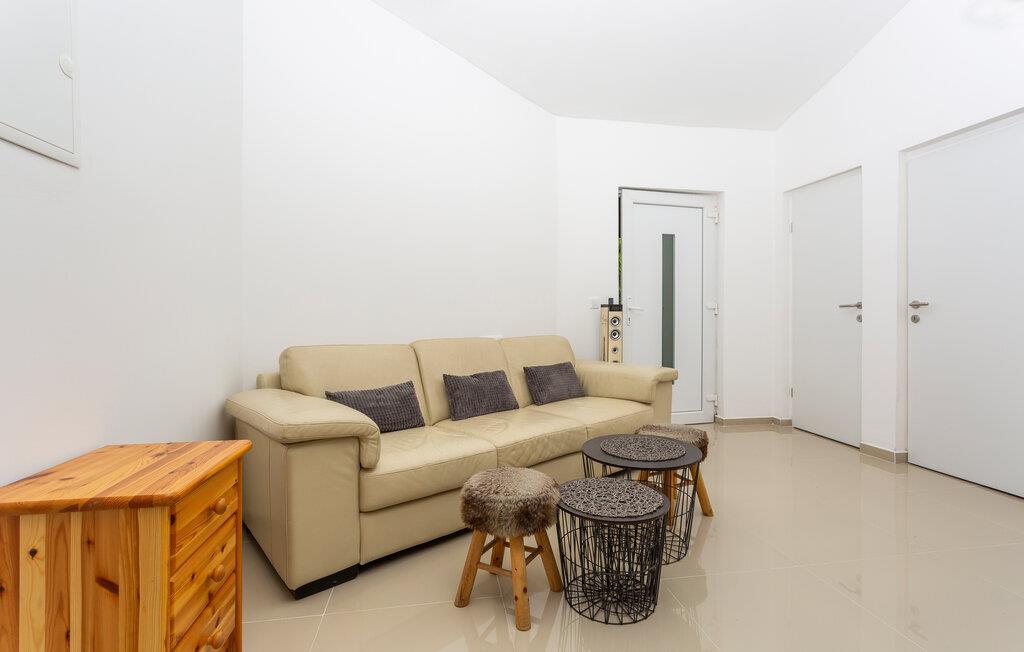 Træd ind i den lyse opholdsstue og bliv budt velkommen af ??de moderne, rene møbler. Find jer til rette i den behagelige sofa eller nyd middagen sammen ved det runde spisebord. Tilbered jeres måltider i det elegante køkken med træbordplader og moderne apparater.