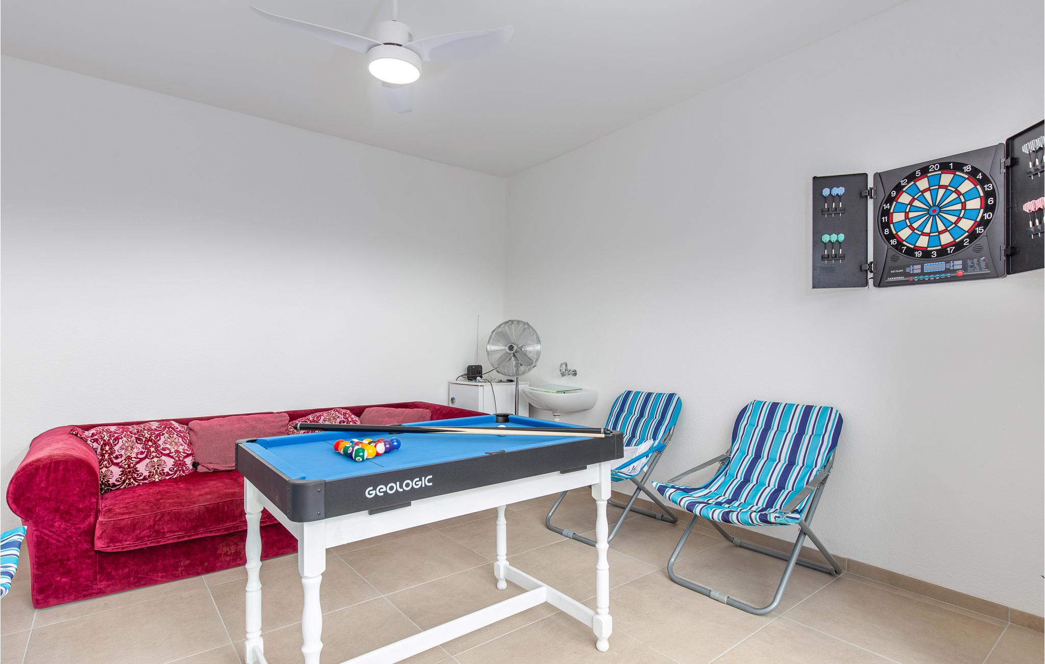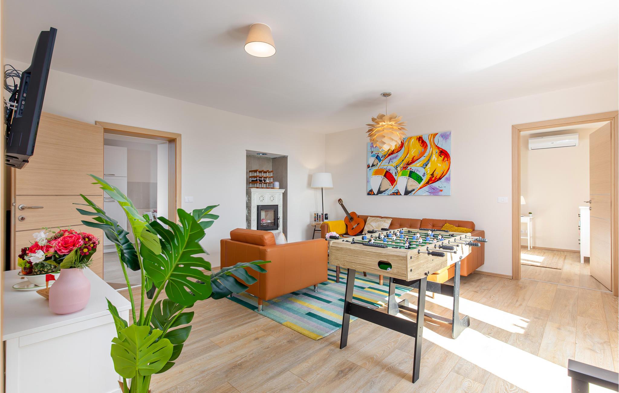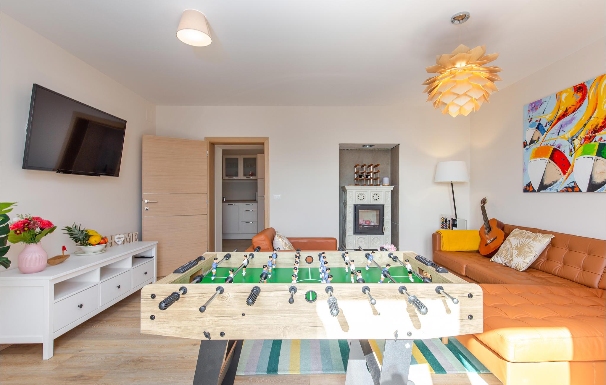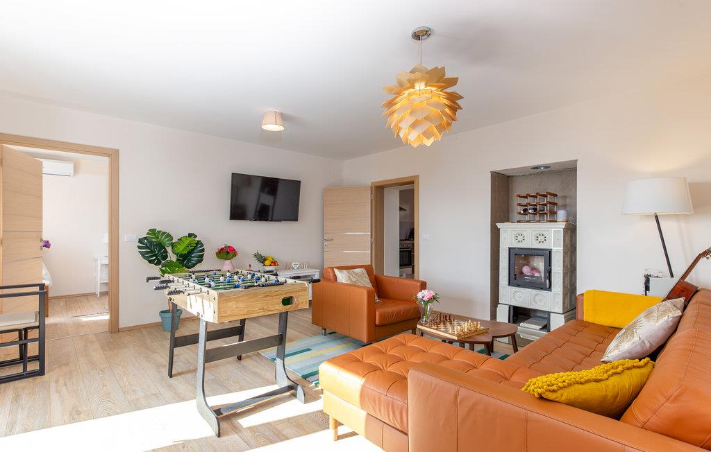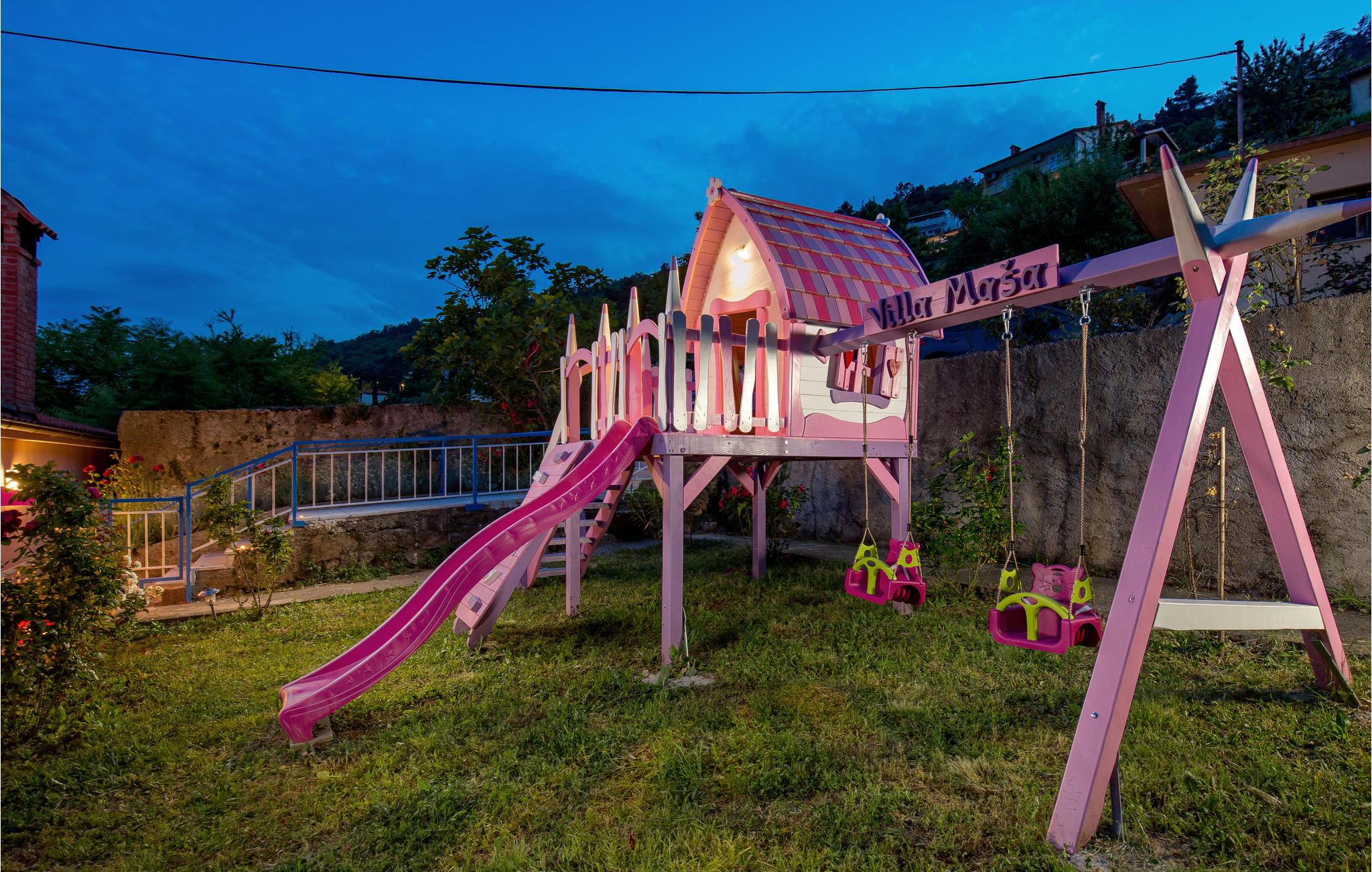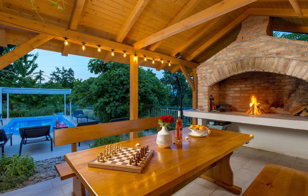 Tilbring en uforglemmelig ferie i dette renoverede feriehus med pool i den charmerende kystby Lovran ved Opatijas riviera. Det ligger på en stor grund over Lovran, med en flot panoramaudsigt over havet fra øverste etage. Huset består af to etager, som er forbundet med en udvendig trappe. På hver etage er en fuldt udstyret lejlighed, og derfor er denne feriebolig ideel til to familier, der ønsker at rejse sammen, samtidig at kunne bevare privatlivets fred. I haven er der to rummelige terrasser, en grill og en udendørs pool med solterrasse og bruser. I stueetagen er der et aktivitetsrum med billard, bordfodbold og dart. Her er også tænkt på legetøj til de yngste gæster. Et basketballnet og bueskydningssæt er også tilgængelige. Huset er møbleret med stor omhu og indrettet med moderne og praktiske møbler. Langs ejendommen fører en gågade direkte til centrum i Lovran og fører også til havet og stranden.