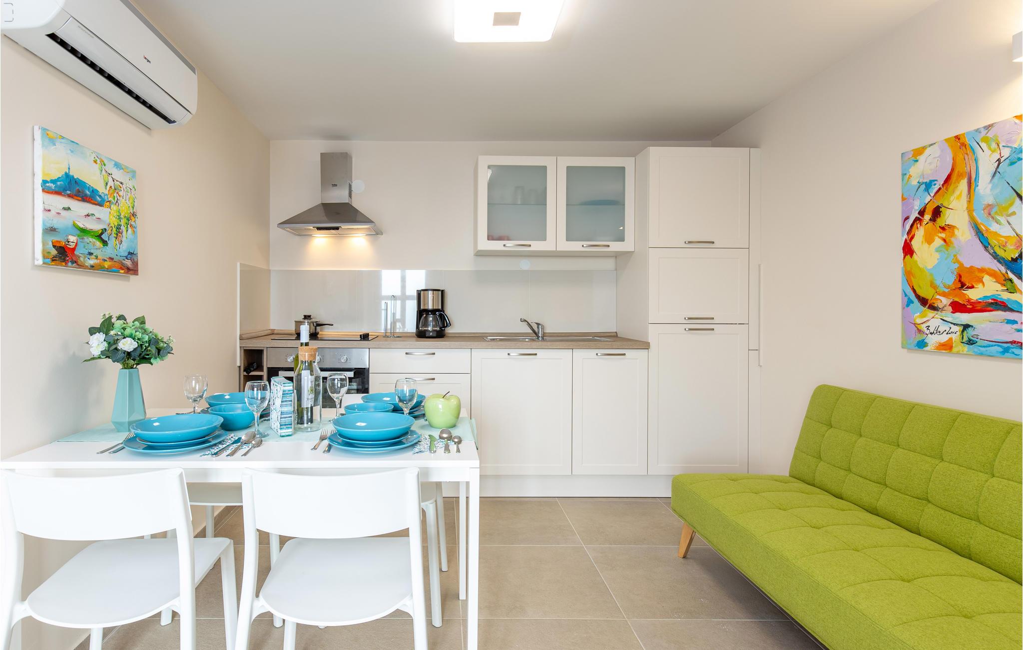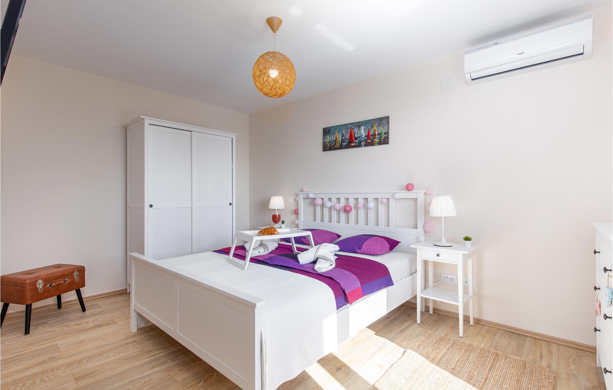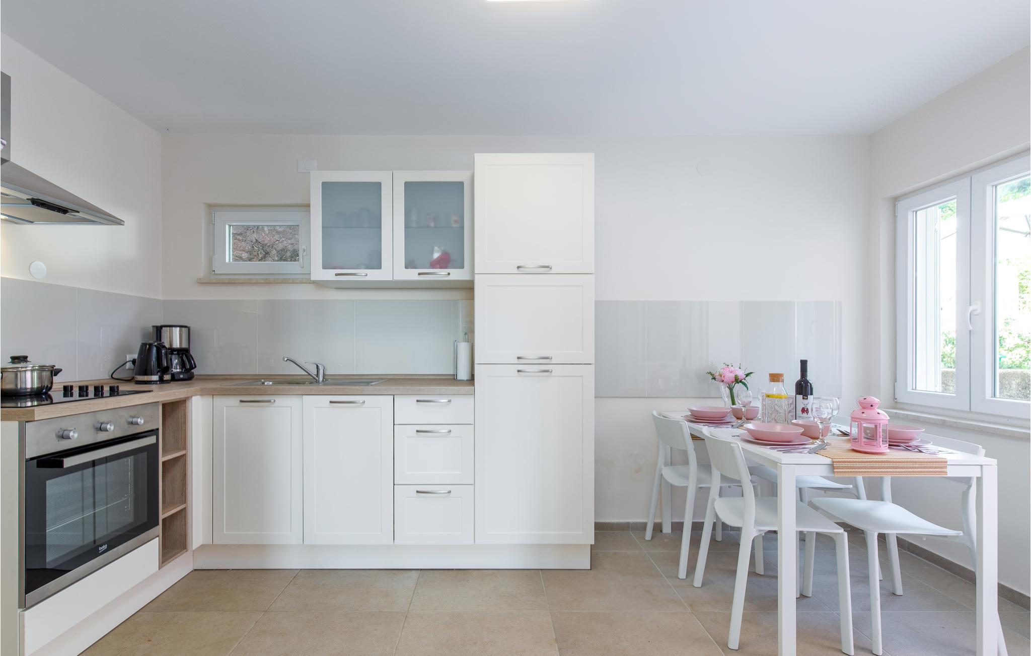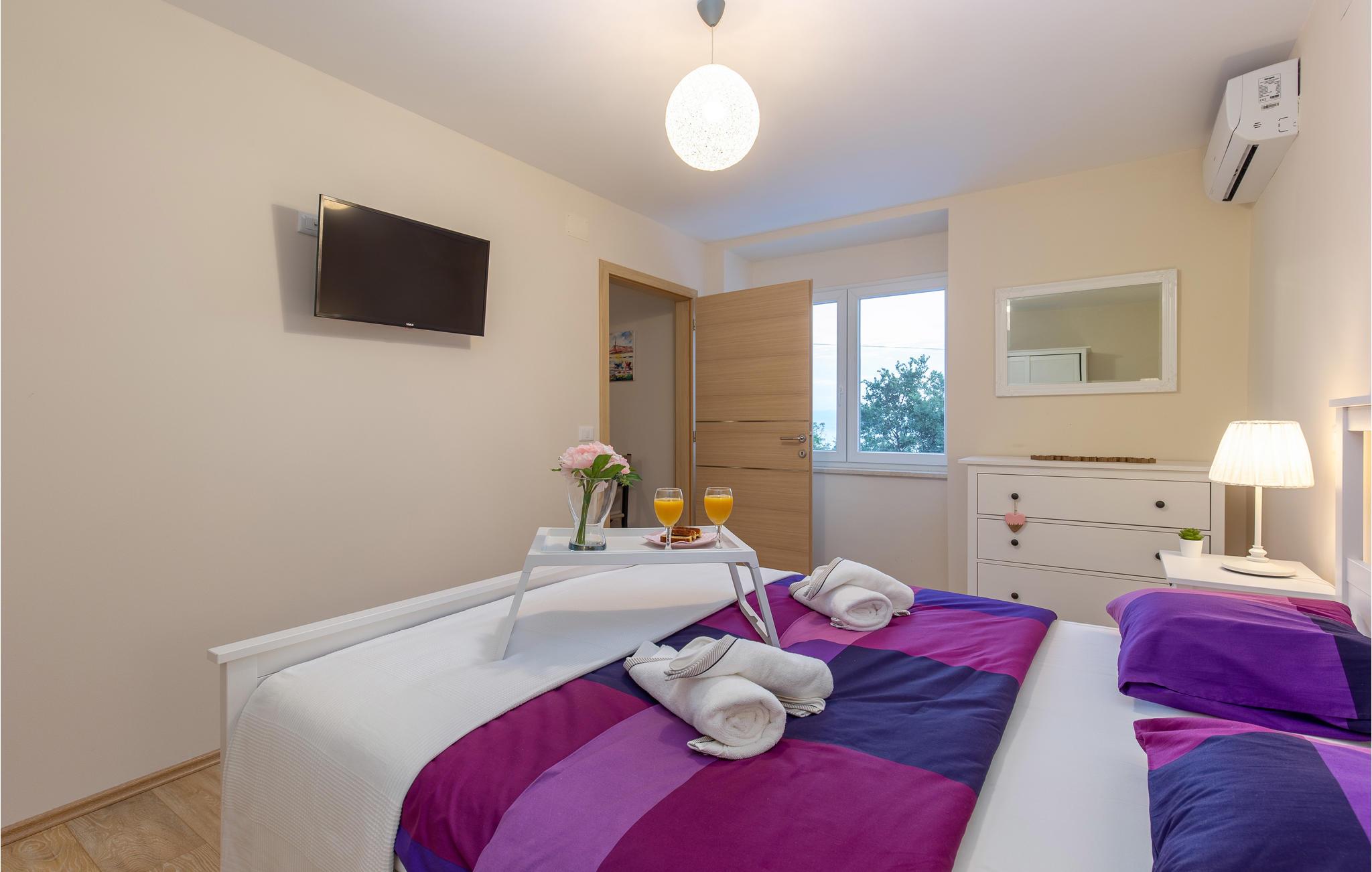 Tilbring en uforglemmelig ferie i dette renoverede feriehus med pool i den charmerende kystby Lovran ved Opatijas riviera. Det ligger på en stor grund over Lovran, med en flot panoramaudsigt over havet fra øverste etage. Huset består af to etager, som er forbundet med en udvendig trappe. På hver etage er en fuldt udstyret lejlighed, og derfor er denne feriebolig ideel til to familier, der ønsker at rejse sammen, samtidig at kunne bevare privatlivets fred. I haven er der to rummelige terrasser, en grill og en udendørs pool med solterrasse og bruser. I stueetagen er der et aktivitetsrum med billard, bordfodbold og dart. Her er også tænkt på legetøj til de yngste gæster. Et basketballnet og bueskydningssæt er også tilgængelige. Huset er møbleret med stor omhu og indrettet med moderne og praktiske møbler. Langs ejendommen fører en gågade direkte til centrum i Lovran og fører også til havet og stranden.