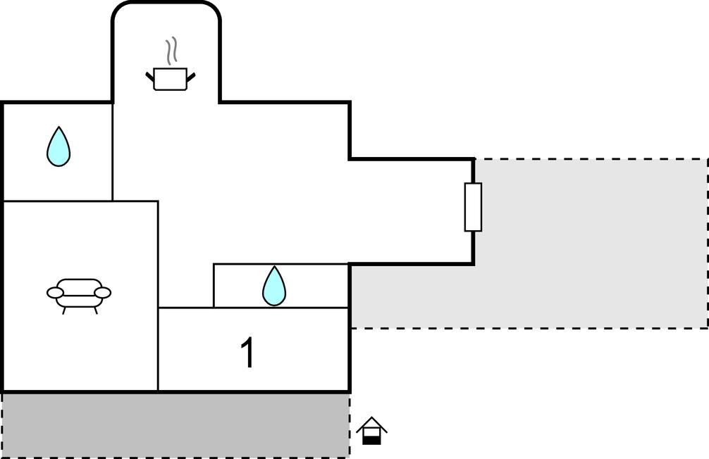 Opholdsstue 17m2 - 1 Soveplads. (Sofa, madras eller lignende).