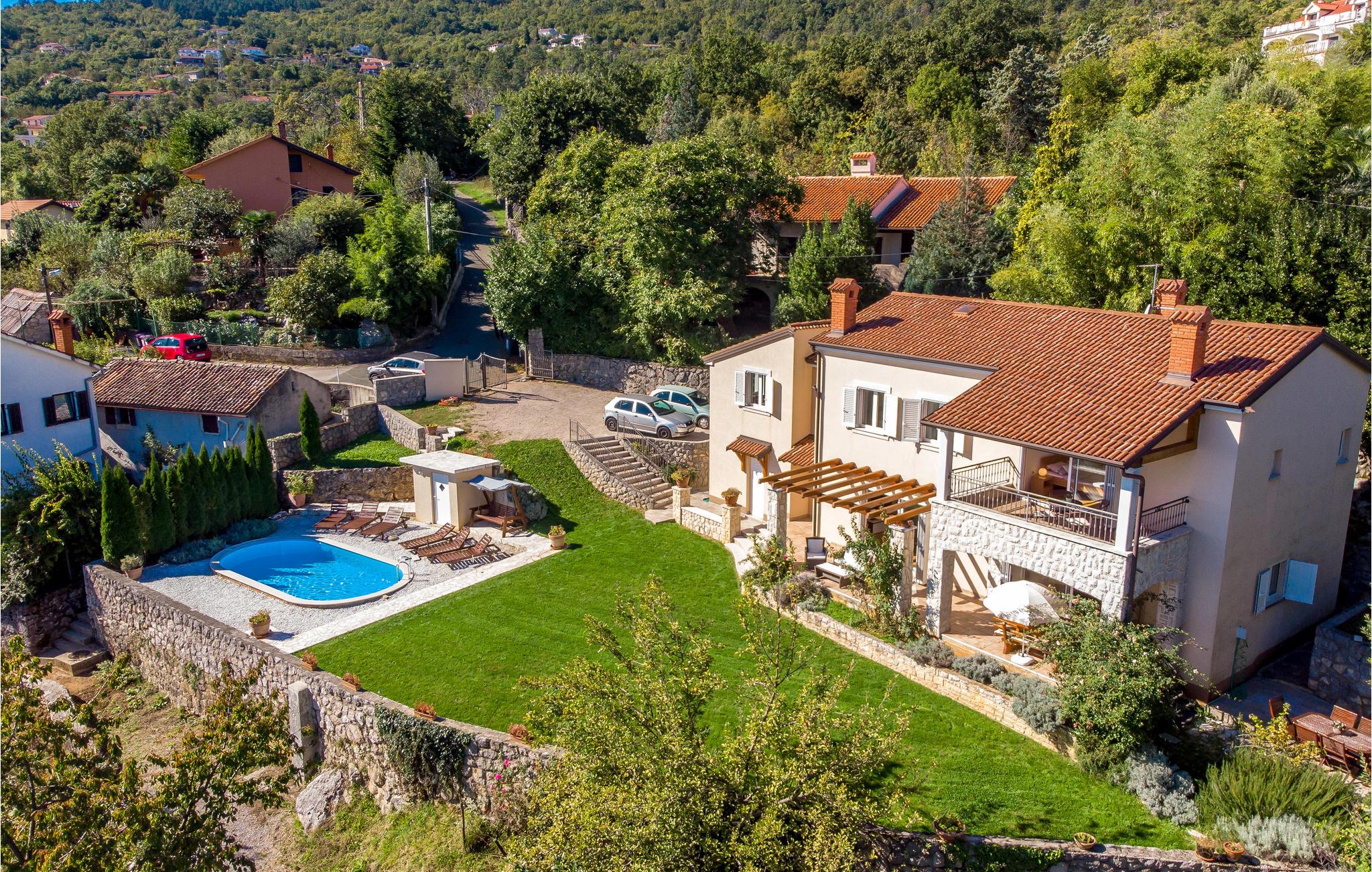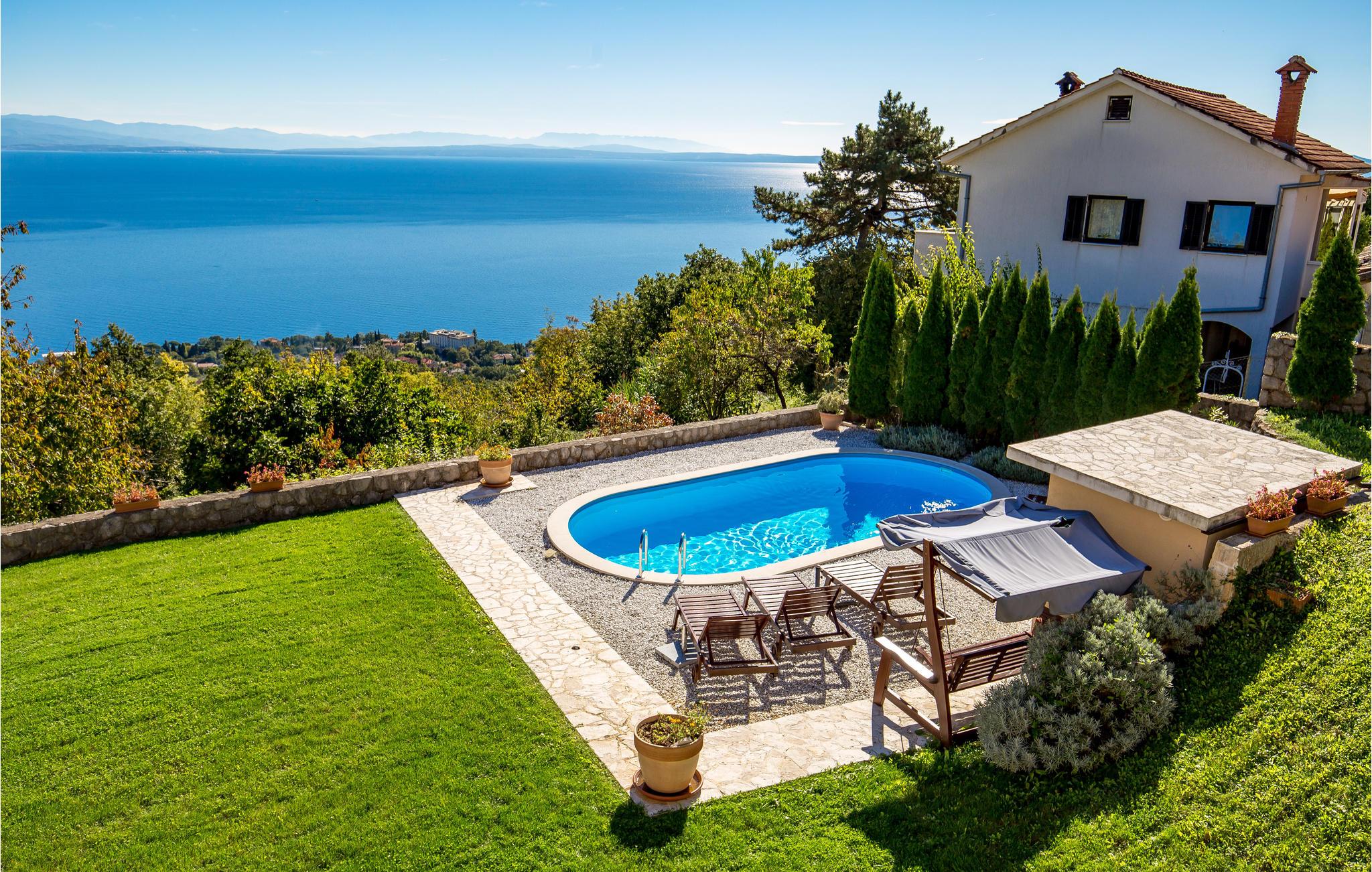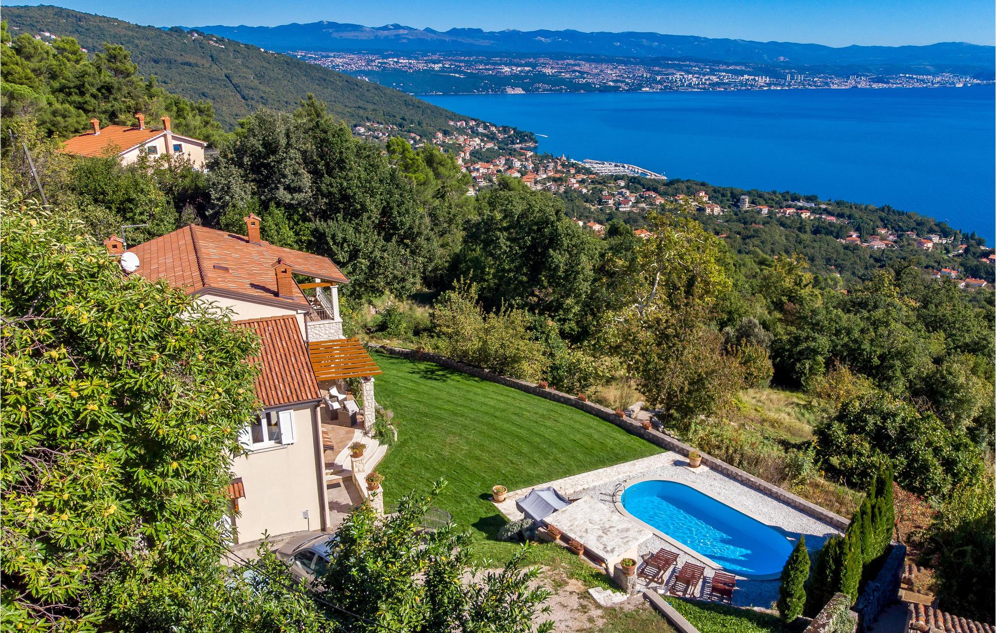Denne dejlige, komfortable villa har en rolig beliggenhed over byen Crikvenica, hvor I kan nyde en fantastisk udsigt over havet og de ??omkringliggende landskaber. Værelserne er rummelige og meget komfortable og ideelle til en behagelig ferie. Der er sauna og fitness-udstyr i huset. Den charmerende villa tilbyder også en stor indhegnet have med en udendørs swimmingpool og behagelige udemøbler, hvor I kan tilbringe kvalitetstid sammen med familie og venner. I kan også bruge grillen i haven til at tilberede lækre måltider og nyde dem på den overdækkede terrasse. Badebyen Opatija, Kvarners perle, ligger lige i nærheden. Her er forretninger med lokal brugskunst, dejlige restauranter og hyggelige cafeer, hvor I kan få jeres yndlingskaffe. Besøg naturparken Ucka, som ligger på Opatijas riviera, her er meget at se og opleve.
