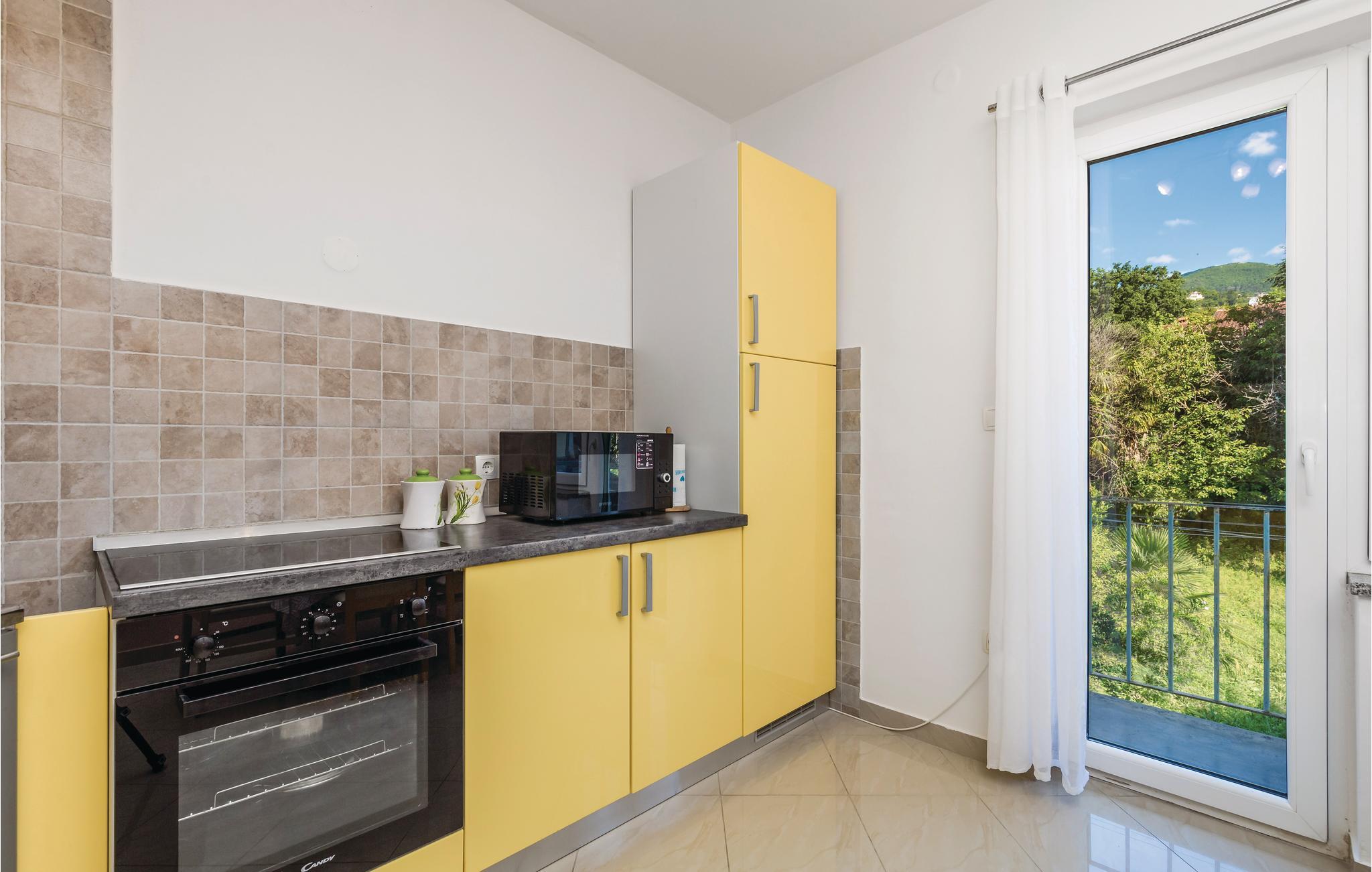 I en lille ferielandsby, meget tæt på havet og stranden, ligger en beboelsesejendom, hvor denne ferielejlighed til 5 personer ligger på anden sal. Den er ideel til en familie eller en gruppe venner. Denne komfortable lejlighed har en stue, et køkken med spiseplads, to soveværelser og et badeværelse. Lejligheden er funktionelt indrettet og tilbyder alle de bekvemmeligheder, I har brug for under jeres ophold.