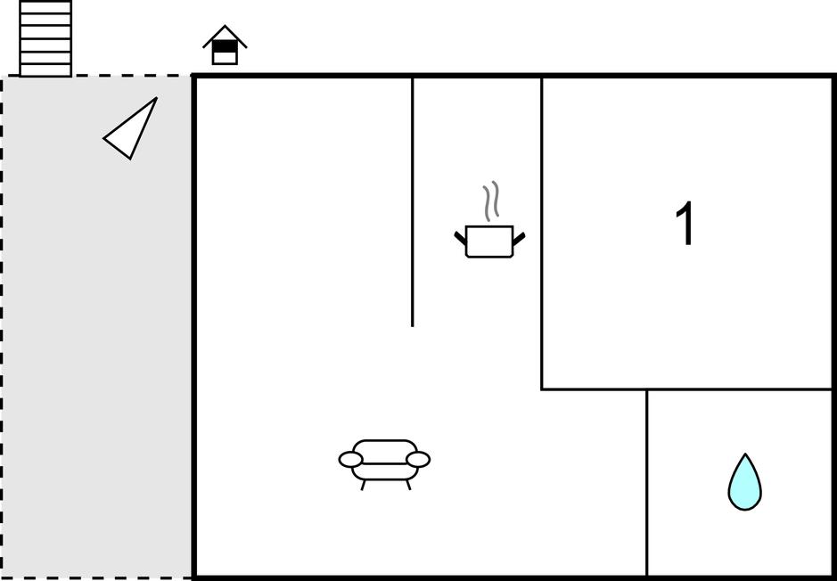 Opholdsstue/køkken 26m2 - 2 Sovepladser. (Sofa, madras eller lignende).