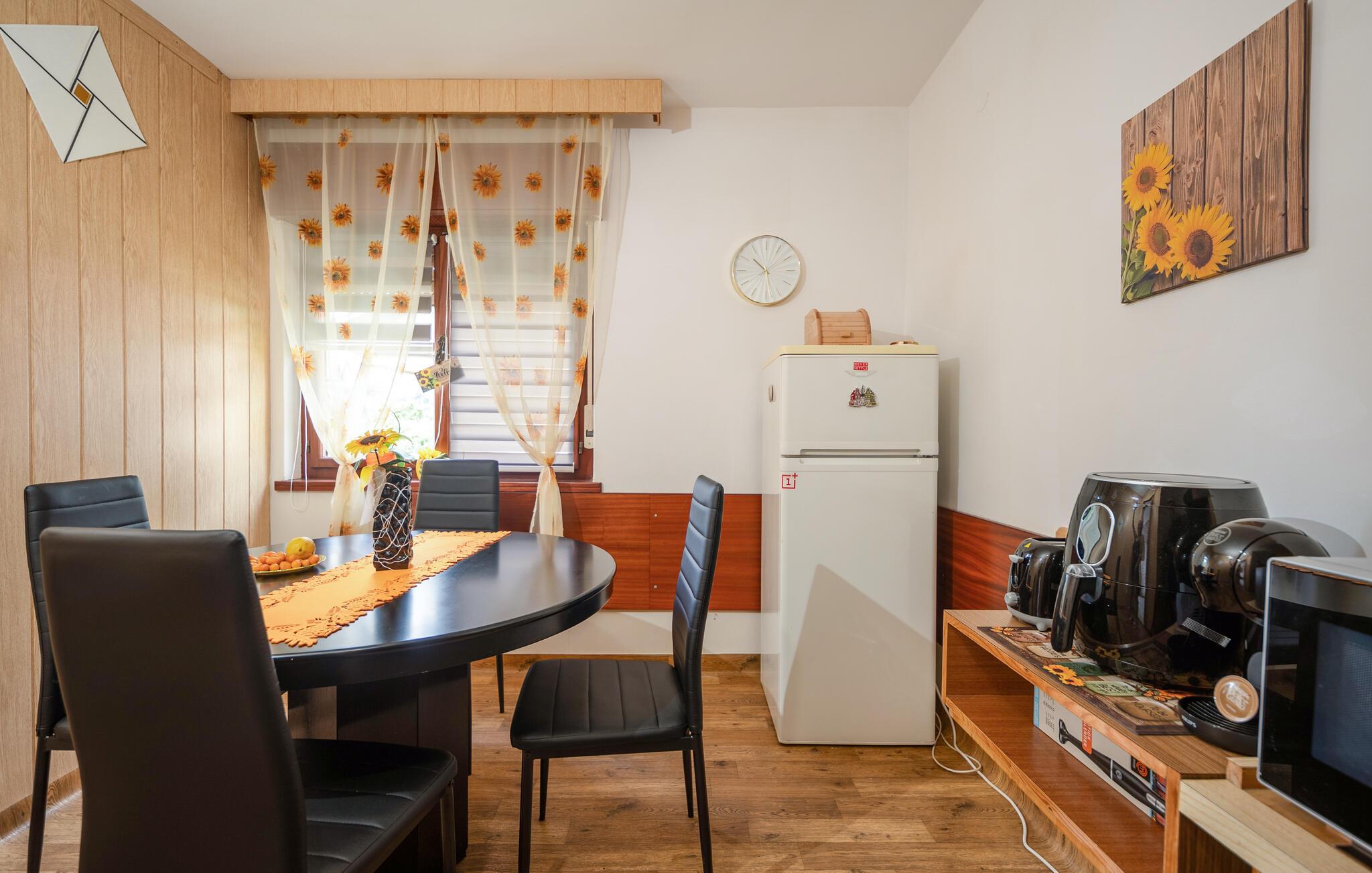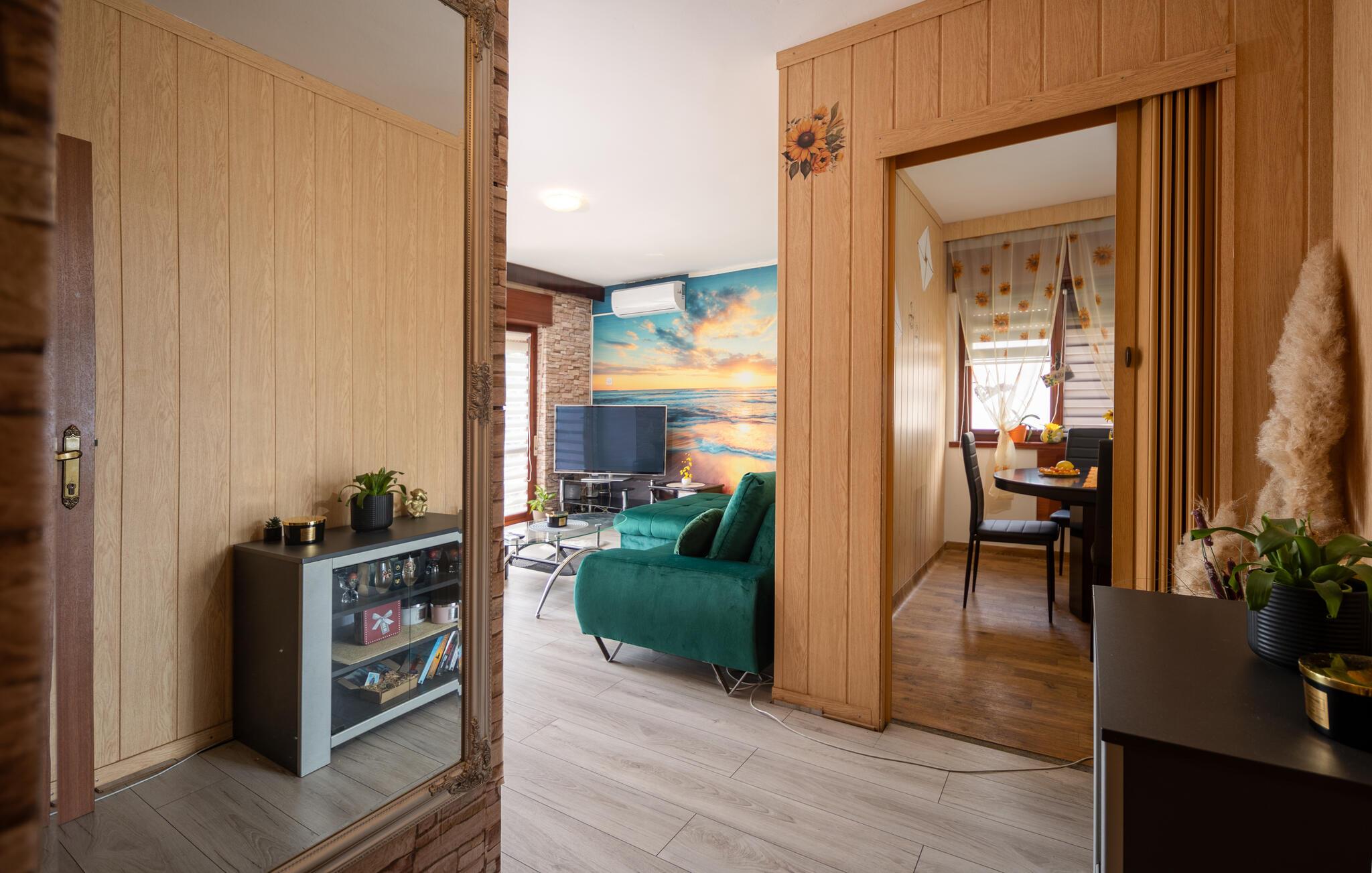 Velkommen til denne indbydende lejlighed, der ligger i skønne omgivelser tæt på havet i en hyggelig forstad til Lovran. Indretningen fremtræder yderst charmerende med rustikke og gode møbler, farverige tapeter og de faciliteter, I behøver for at kunne slappe af før og efter dagens udflugter. Efter dagens muntre leg kan I slappe af på terrassen med havudsigt, nyde den smukke udsigt og de varme sommeraftener med kolde drinks, mens I lægger planer for de kommende dage.