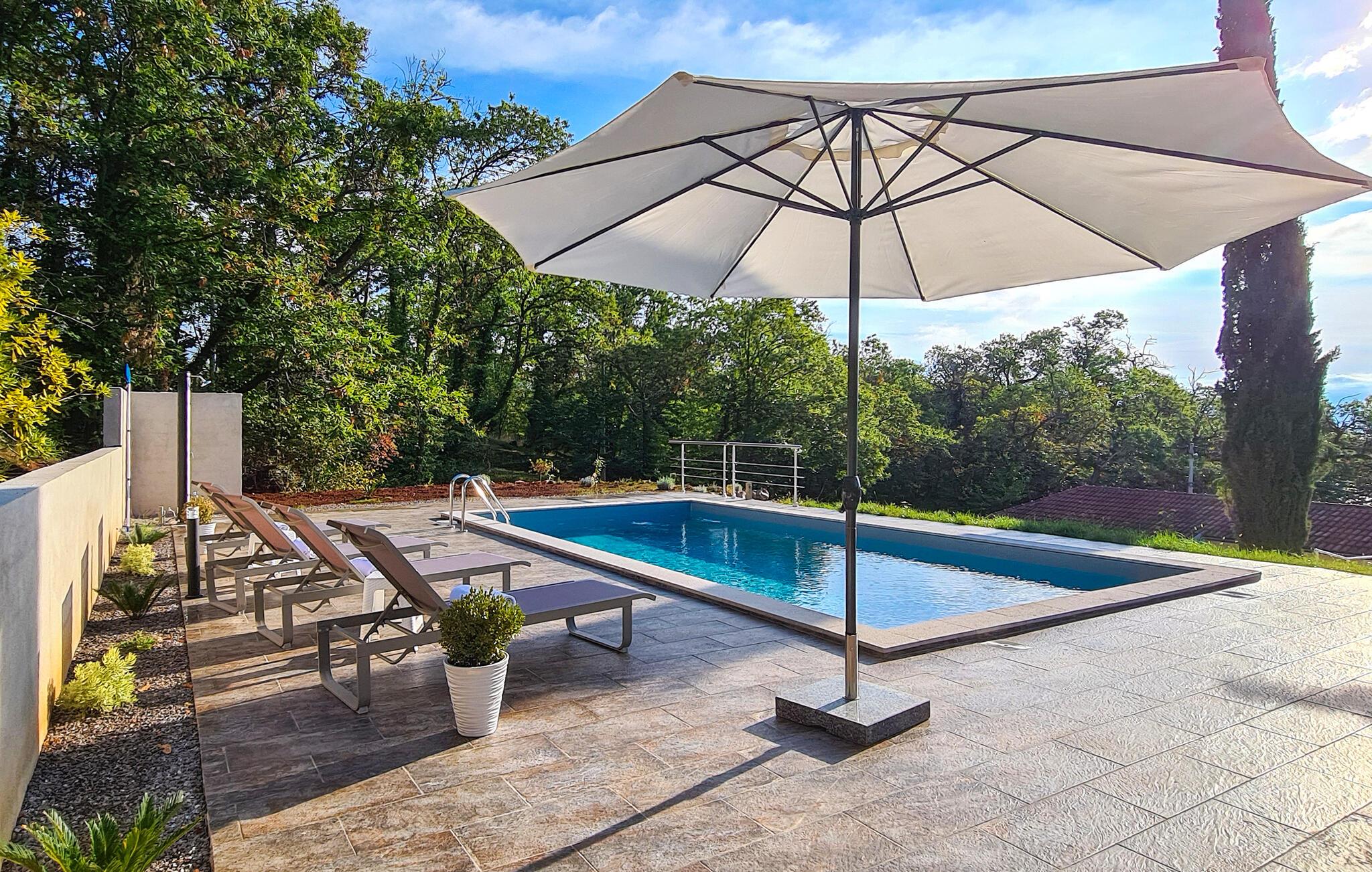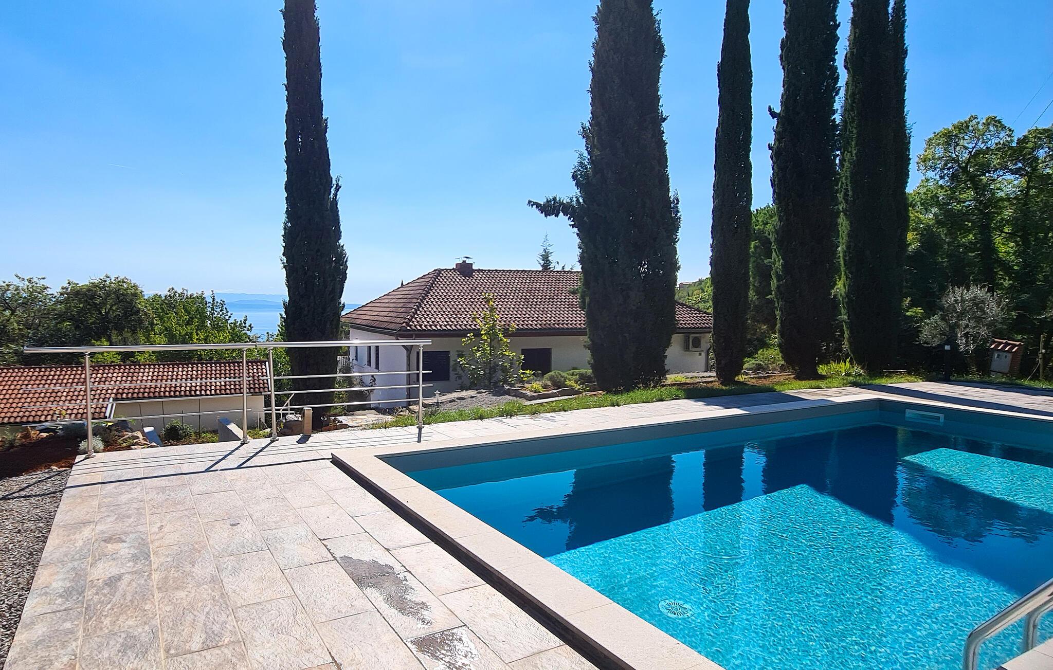 Oplev en solrig ferie under palmetræerne i dette rummelige feriehus med pool og panoramaudsigt.