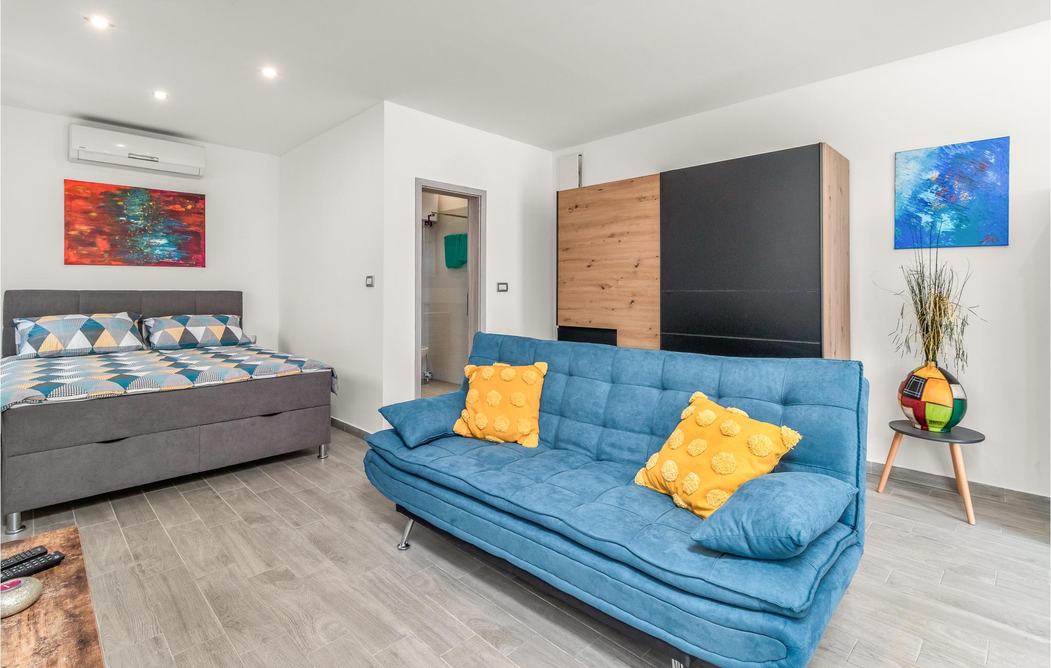 Denne skønne og hyggelige lejlighed byder velkommen med et spabad og en fantastisk panoramaudsigt over landskabet. Nyd den romantiske og afslappende atmosfære i lejligheden med en smuk have med masser af grønt. Ved indretning af boligen blev der lagt stor vægt på komfort, design og et harmonisk image. Studielejligheden tilbyder jer alt, hvad I kan ønske jer som par eller med jeres lille familie. Nyd spabadet på terrassen, som du kan bruge i sommermånederne. Udforsk området og få adgang til faciliteter såsom butikker, restauranter og apoteker fra din rolige beliggenhed. Besøg også byen Rijeka og hele Opatija Riviera, hvor kilometervis af promenader ved havet indbyder til at svømme og solbade. Oplev vand- og havsport, ridning i Kastav, mountainbiking og afmærkede vandre- og vandrestier i nærheden i Kastav. De mere eventyrlystne kan tage på paragliding og beundre Ucka Naturpark fra oven fra paragliding-flyvepladsen på Ucka!