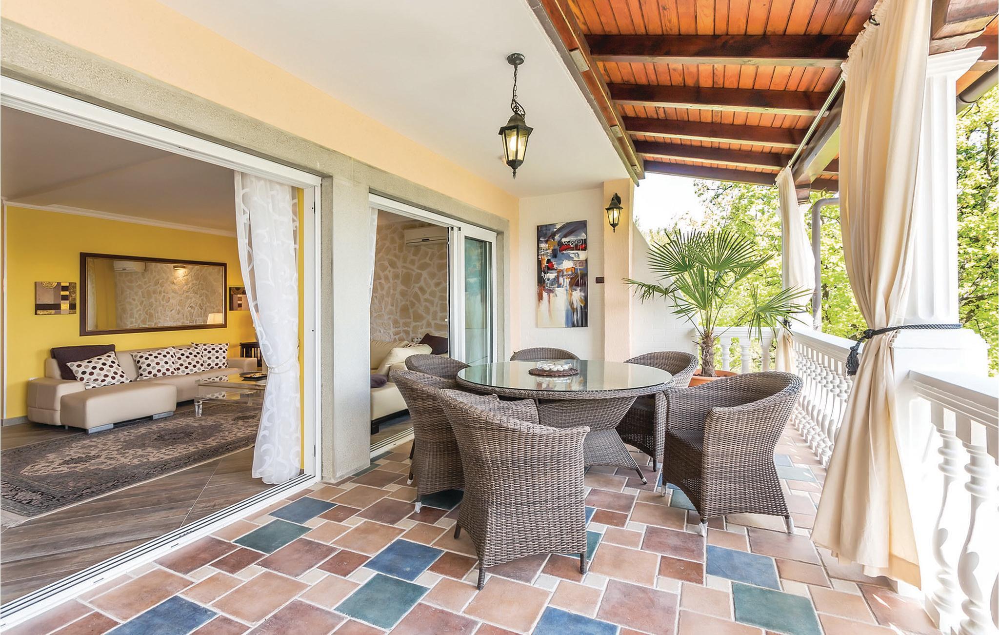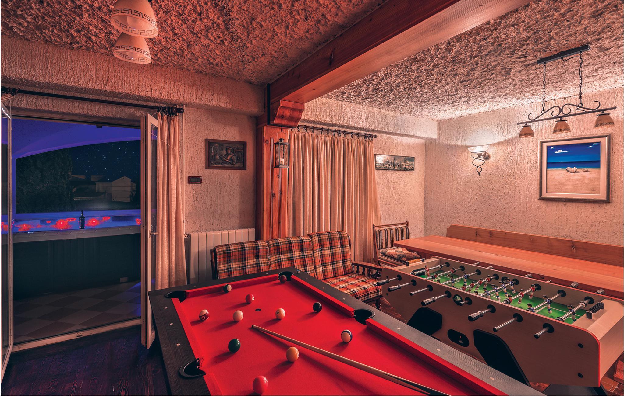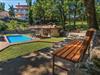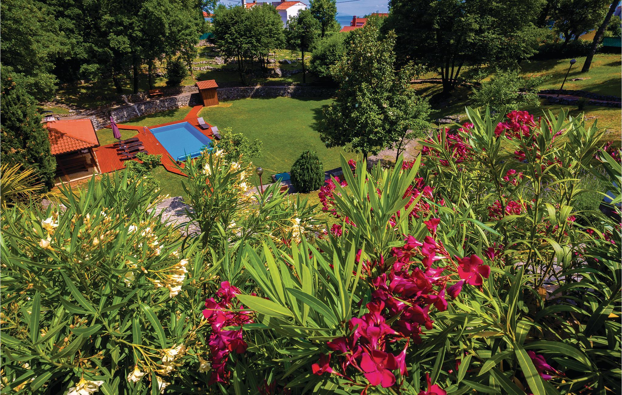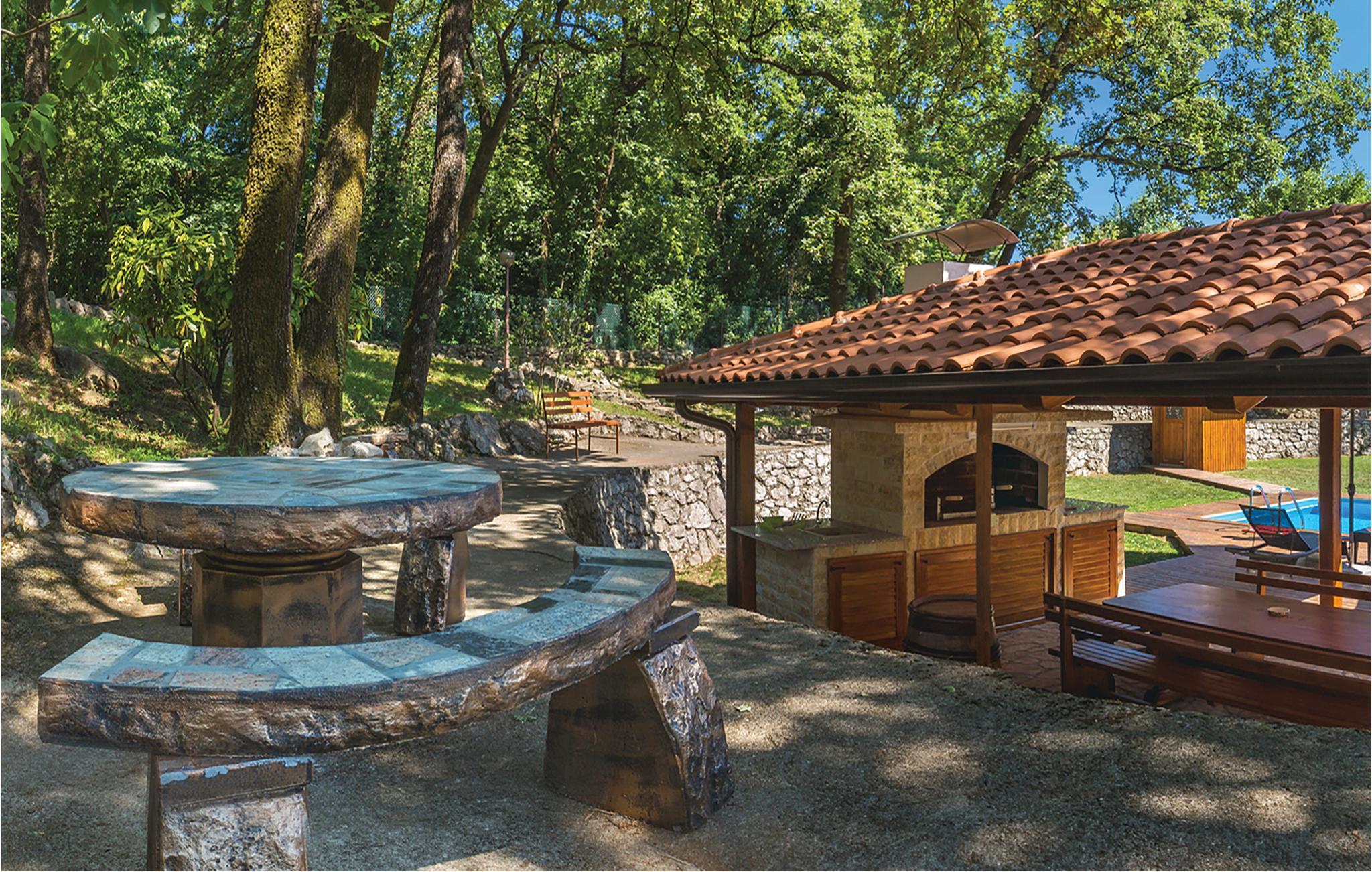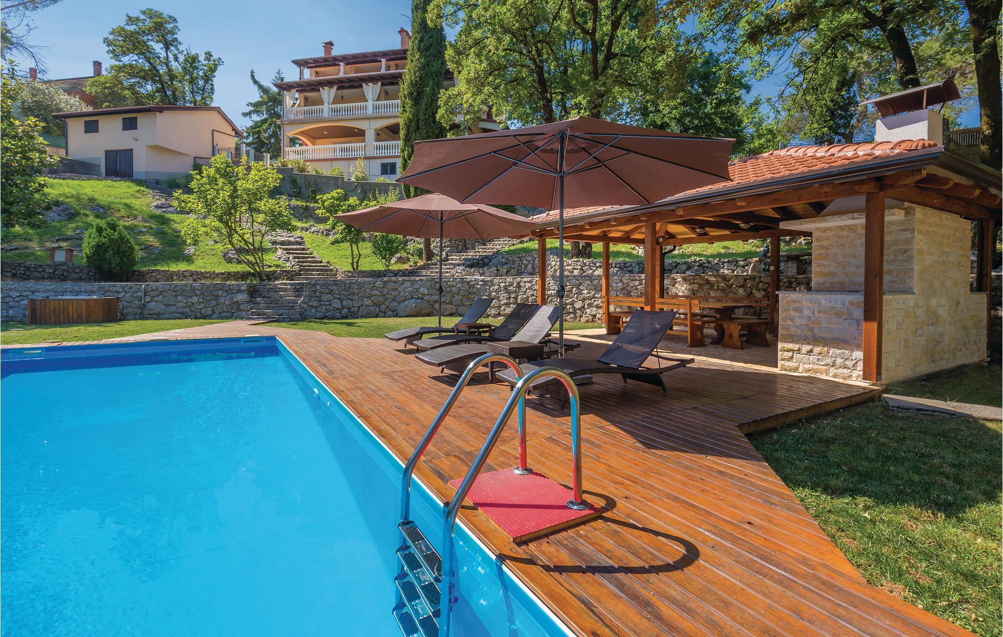 På en stor, indhegnet grund ligger dette komfortable feriehus. Det består af stueetage, første og anden sal og har indendørs trapper. På hver etage er der store terrasser med liggestole og havemøbler, hvor I kan nyde jeres morgenkaffe og den herlige udsigt. Centralt udenfor, omgivet af grønt, ligger også poolen, der vil sørge for afkøling på de varme sommerdage. I stueetagen kan I more jer i spillerummet med billard og bordfodbold. På kun få minutter kan I køre til Opatija og de første badestrande; skønne kiselstrande er der også ved Icici og Medveja.