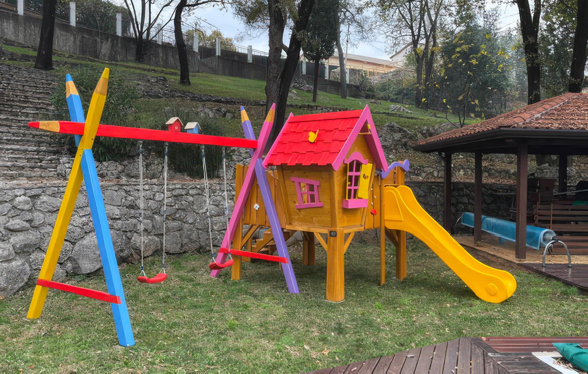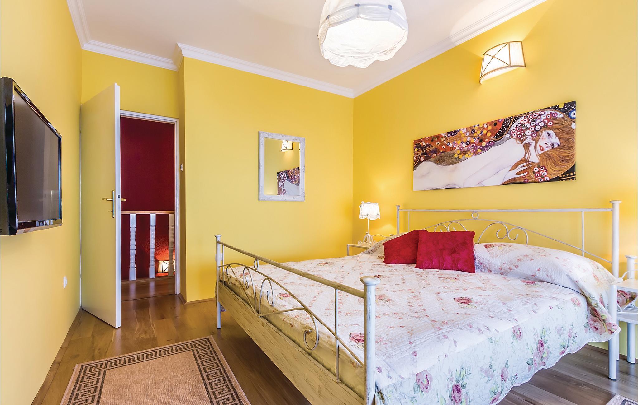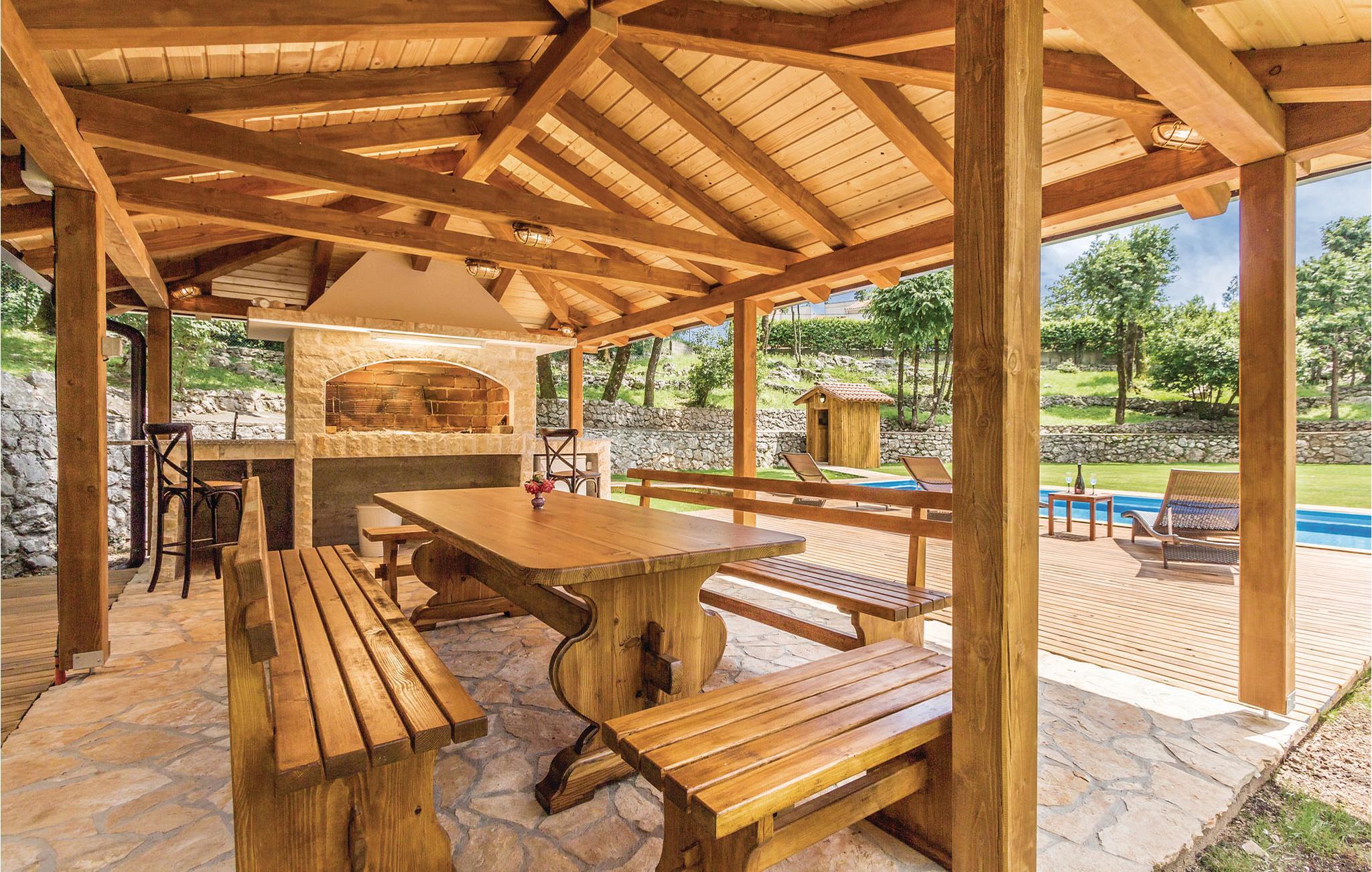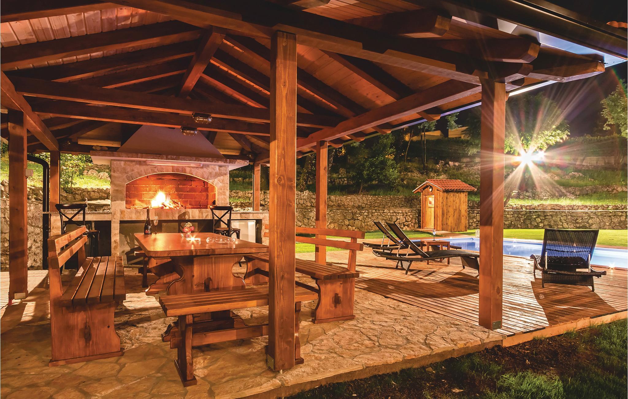 På en stor, indhegnet grund ligger dette komfortable feriehus. Det består af stueetage, første og anden sal og har indendørs trapper. På hver etage er der store terrasser med liggestole og havemøbler, hvor I kan nyde jeres morgenkaffe og den herlige udsigt. Centralt udenfor, omgivet af grønt, ligger også poolen, der vil sørge for afkøling på de varme sommerdage. I stueetagen kan I more jer i spillerummet med billard og bordfodbold. På kun få minutter kan I køre til Opatija og de første badestrande; skønne kiselstrande er der også ved Icici og Medveja.