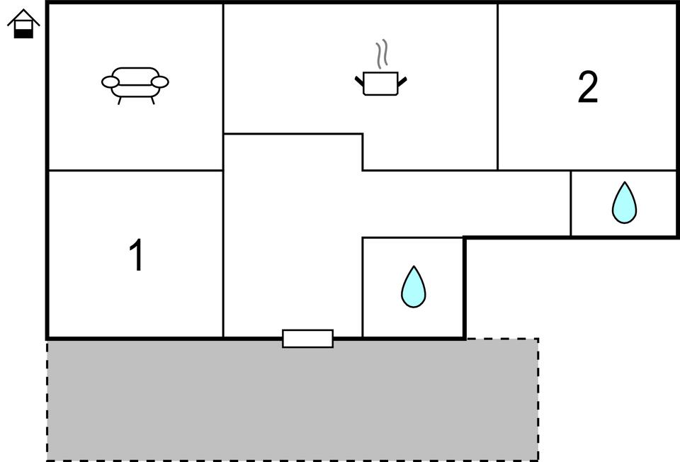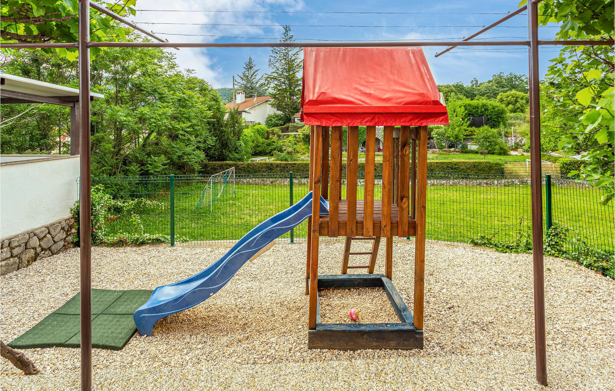 Du har en stue, to soveværelser, to badeværelser og et køkken til din rådighed. På den lukkede ejendom kan de yngste feriegæster spille fodbold på den store græsplæne, mens du tilbereder solide måltider på grillen.