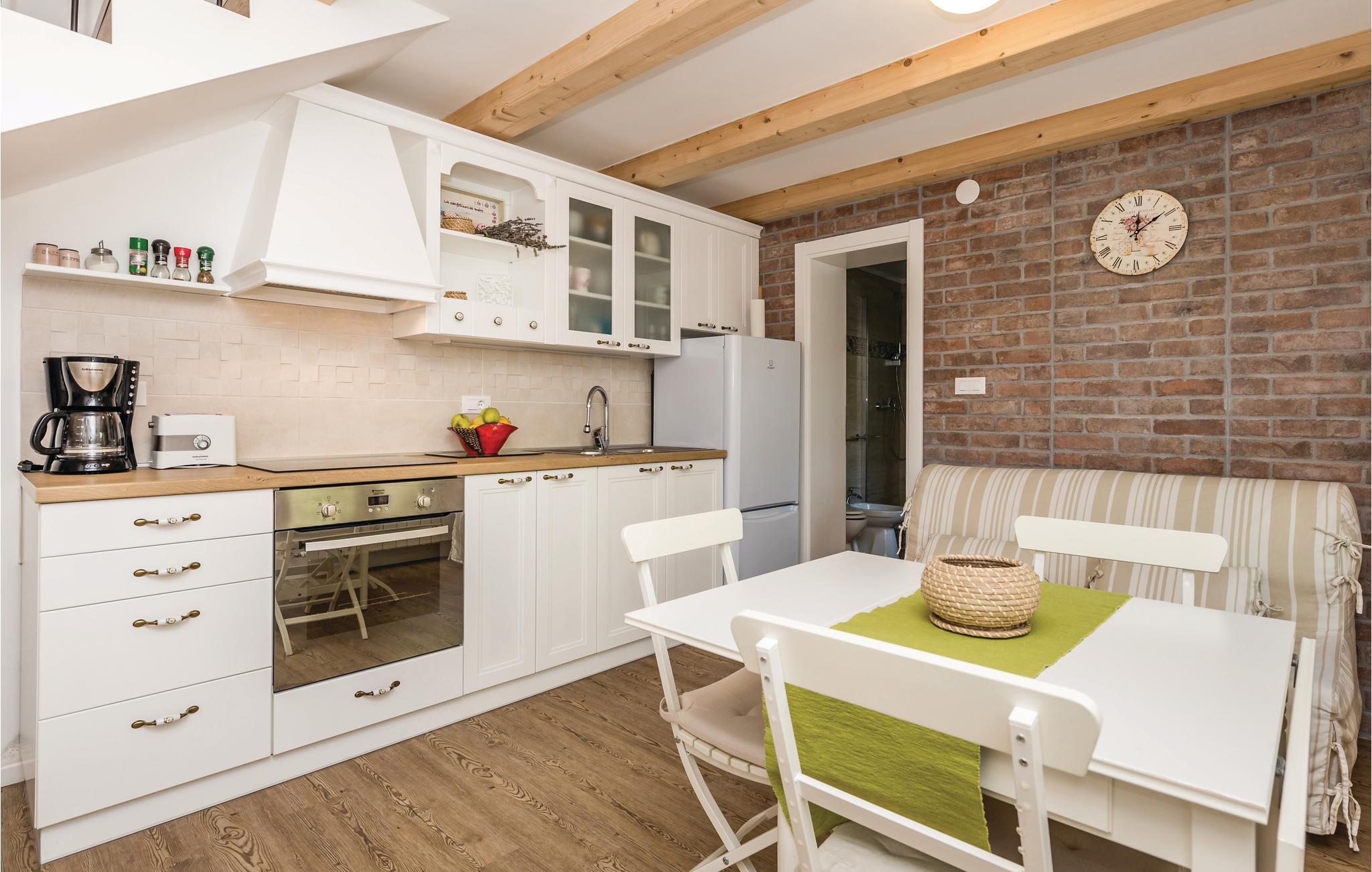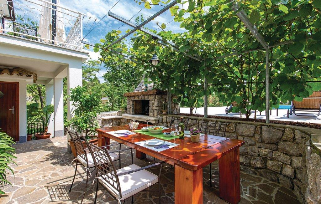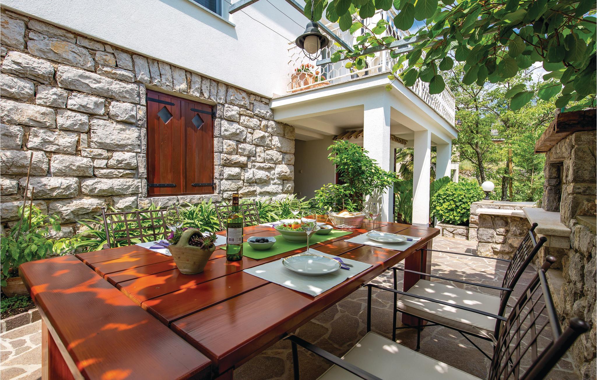 Dette lille, men hyggelige og pænt møblerede dobbelthus ligger i byen Rukavac over Kvarnerbugten.