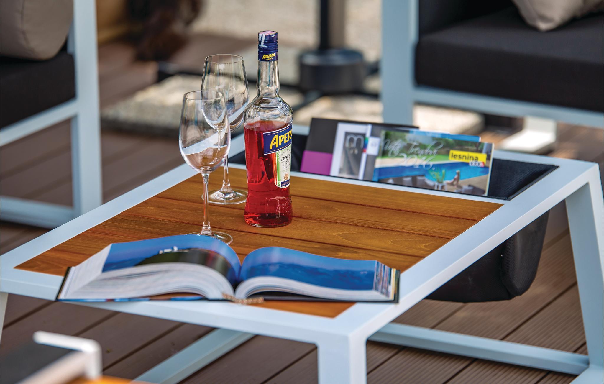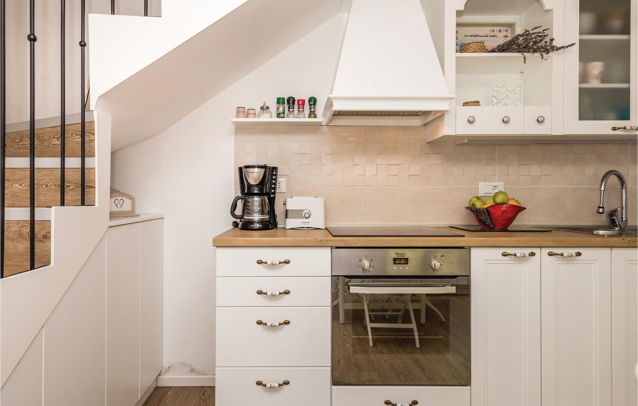 Fra stueetagen med stue, køkken og badeværelse fører en trappe til det åbne soveværelse. Fra soveværelse nr. 1 kommer du til soveværelse nr. 2, hvor der er en køjeseng. Netflix er tilgængelig for filmelskere her, så der er ingen, der kommer til at kede sig, selv hvis vejret svihter en enkelt dag. Den fælles ejendom er indhegnet, og dine børn kan lege ubekymret, mens du læser en god bog, drikker et glas vin, soler dig ved poolen eller tilbereder grillretter.