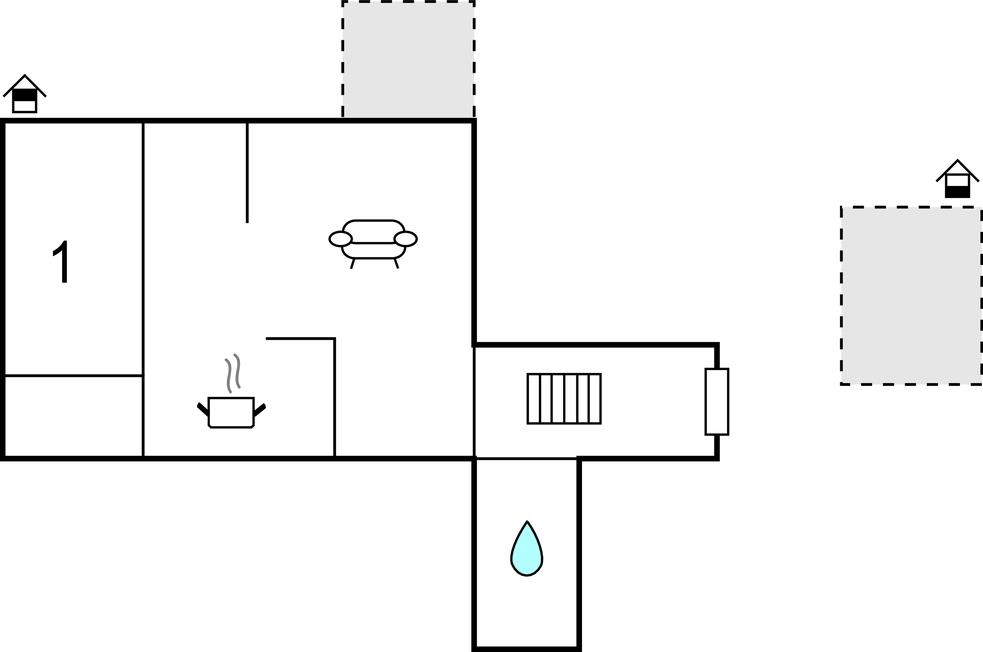 Komb. spisestue/køkken 20m2 - 2 Sovepladser. (Sofa, madras eller lignende).