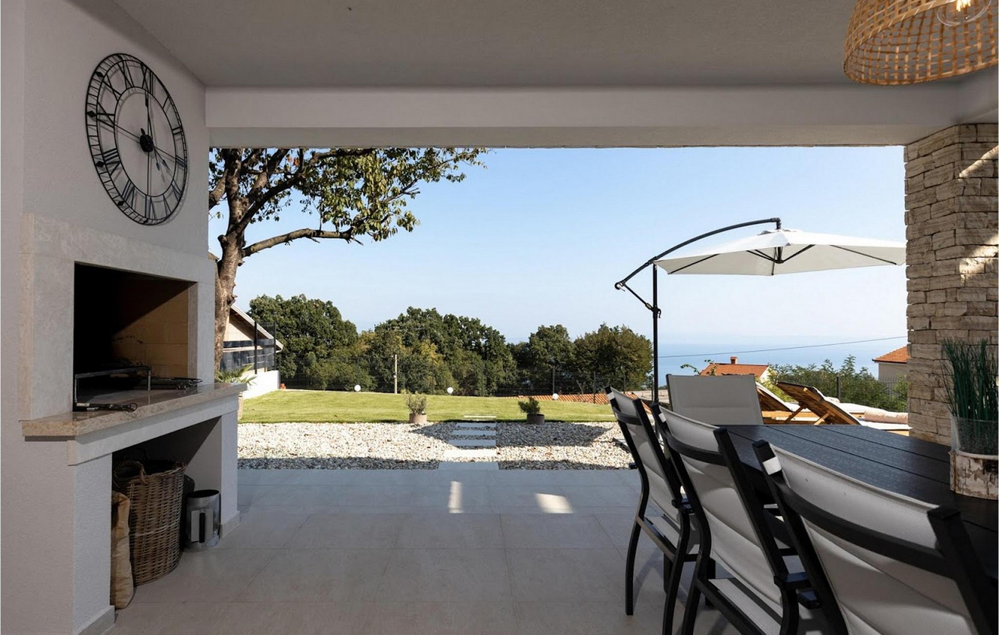 Den smukke moderne villa Askim Prestige ligger i Kvarner, i den lille by Matulji, som er tre kilometer væk fra Opatija. I Matulji vil du opleve den fredelige Kvarner-atmosfære, som er ideel til familieferier. I nærheden ligger smukke Opatija, som har et stort gastronomisk og turisttilbud, og smukke Riva, rig på arkitektur og historiske seværdigheder. På første sal i Villa Askim Prestige er der tre soveværelser (dobbeltsenge) med private badeværelser med bruser, to af dem har balkon med en smuk udsigt over det blå Adriaterhav. Stueetagen har et separat toilet, et soveværelse med en-suite badeværelse, et moderne funktionelt køkken med en spisestue med plads til 8 og en bar med plads til 3 og en hyggelig stue. Alle værelser i villaen har aircondition. I gården er der en opvarmet swimmingpool (4 x 8 x 1,55m) rundt om, som er 6 liggestole og 2 LayZ-tasker, ideel til at slappe af og nyde solen. Der er en udendørs kulgrill, hvor du kan tilberede forskellige specialiteter og servere dem i den udendørs spisestue. Gården er indhegnet (hegn fra 1,10 m til 1,70 m), og du har fuldstændig privatliv. Der er 3 parkeringspladser i gården. Villaen har en finsk og en integreret infrarød sauna med udsigt over havet. I nærheden af Villa Askim Prestige er der en stenstrand Tomaševac og en betonstrand Lido, som er en af de smukkeste strande på Opatija-kysten. Du kan også nyde naturen omkring villaen ved at cykle på cykelstierne eller gå gennem de smukke skove. Ankomst til Villa Askim Prestige vil garantere din familie en ideel ferie! Kæledyr er tilladt på denne ejendom efter ejerens skøn eller mod et gebyr. Bemærk venligst, at denne ejendom ikke accepterer ungdomsgrupper eller polterabends. En ungdomsgruppe i denne ejendom består af personer under 30 år. Book ikke denne ejendom, hvis du er en ungdomsgruppe eller polterabend, da din reservation vil blive afvist efter reservationen, hvilket også kan være tilfældet ved ankomst til overnatningsstedet eller under dit ophold, og du vil ikke modtage en refusion.