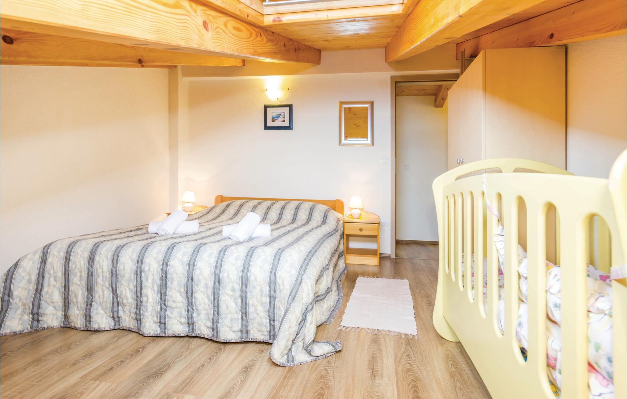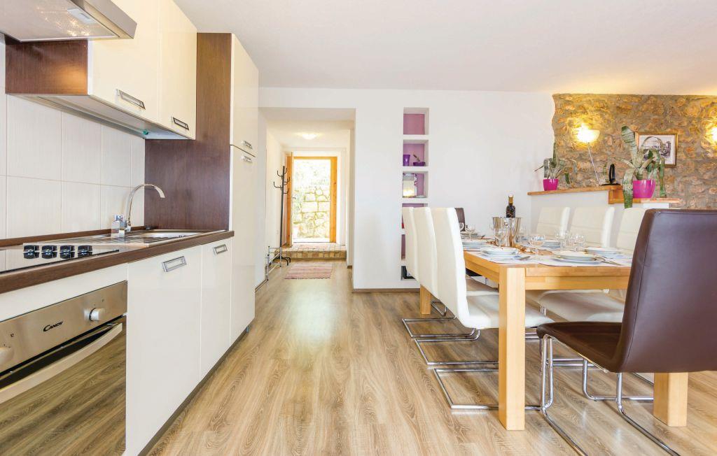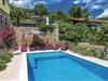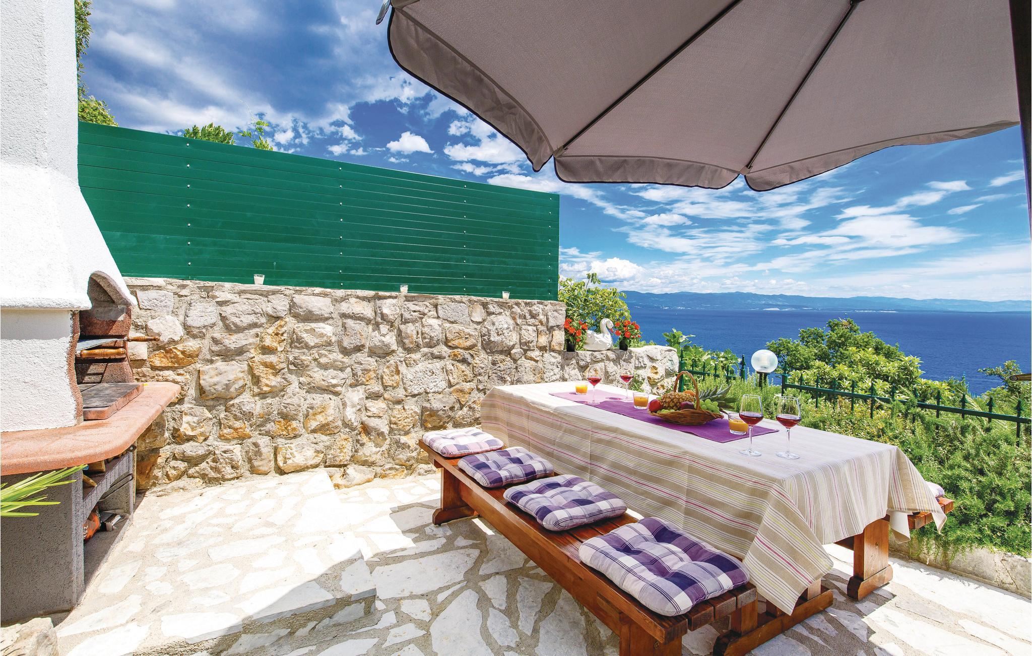 Dette autentiske halve dobbelthus er bygget i 1856, men komplet restaureret og nyindrettet i 2012. Det ligger i rolige omgivelser, omgivet af meget grønt, med en vidunderlig udsigt til havet og Kvarner-Bugten. Førstesalen har en stor dagligstue og køkkenet, mens soveværelserne er på tagetagen, laveste loftshøjde 30 cm. I stueetagen venter der jer et fitness- og fritidsrum, der er forbundet med første sal via en udendørs trappe. Afkøling byder poolen på, hvis særlige træk er, at den har både et dybt bassin (25 m²) og et børnebassin (5 m²). I behøver kun at køre til den nærmeste strand, Medveja, da der er mange fritidstilbud dér, der giver underholdning og sjov foruden et forfriskende bad. Stranden er ideel til alle aldersgrupper. Om aftenen kan I gå gennem gaderne i Opatija. Vi anbefaler jer også, at I smager fiskespecialiteter på en af de mange restauranter, der har et rigt gastronomisk tilbud. Huset er ideelt til fælles ferie for flere familier eller venner. Husets ejer bor ikke langt væk.