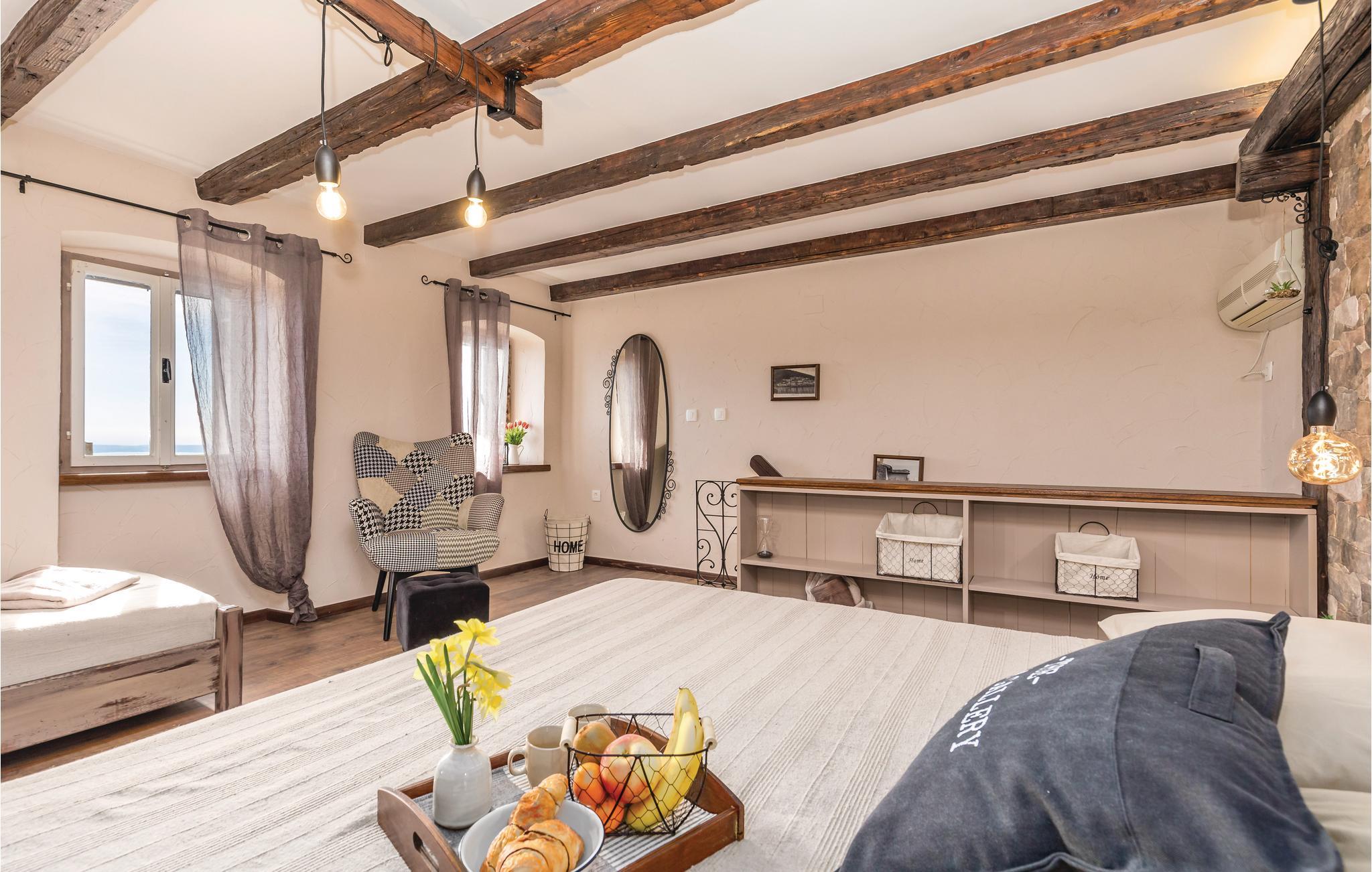 På en bjergside i Ucka bjergene, over Moscenicka Draga, en fiskerby med en dejlig kiesstrand, ligger den lille landsby Obrs. Dette lille rækkehus ligger hjertet af byen, ud til pittoreske små stræder. Huset er enkelt og funktionelt indrettet. I stueplan er der køkken og opholdsrum, mens soveværelset ligger på første sal. I nærheden er der en sti, der fører op til klipper, der er oplagt til udfordrende klatreture. Når det er varmest er der behageligt at opholde sig på terrassen i den rene bjergluft. Nyd roen og den uberørte natur. CKO221 har samme ejer, ideelt til en fælles ferie med flere familier.