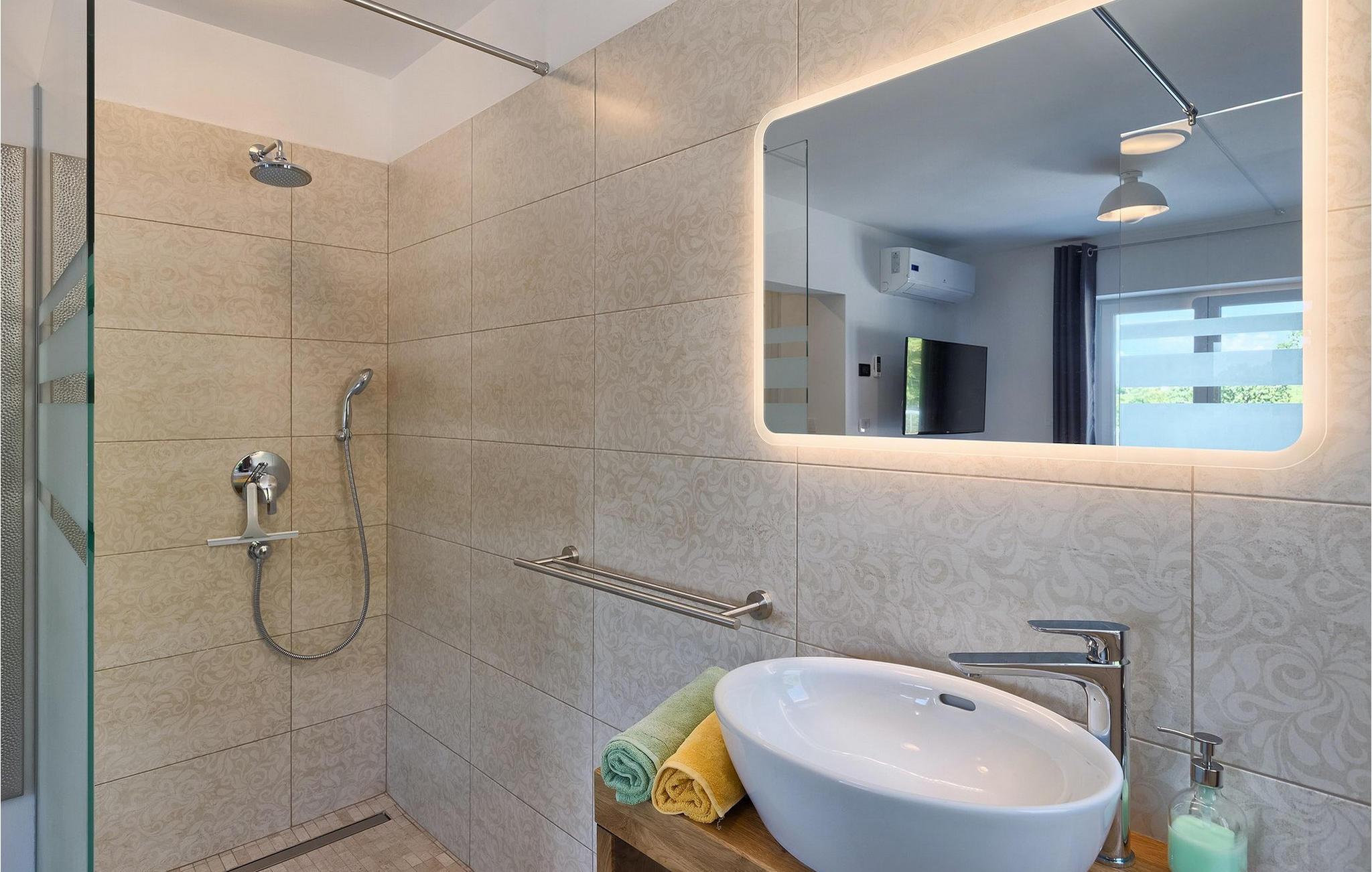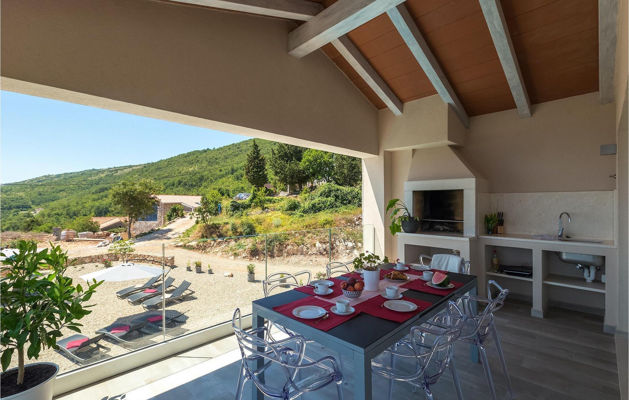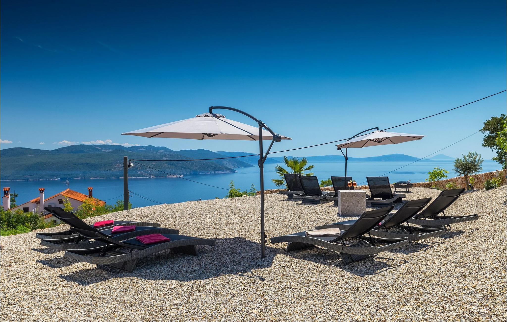 Fantastisk Villa Istra Panorama ligger i en lille landsby nær Moscenicka Draga, kun 2,5 km fra den første strand. Villaen var indrettet med stor opmærksomhed og kærlighed til detaljer. Interiøret består af 3 åbent koncept opholdsrum, 3 spisepladser, 3 fuldt udstyrede køkkener, 6 soveværelser og 6 badeværelser. I hele villaen finder du en masse balkondøre og vinduer med en fantastisk havudsigt. Villaen kan rumme op til 10+6 gæster og er ideel til en familieferie eller en ferie med venner. Et underholdningsområde med kicker, dart og tv kan også findes i villaen samt et bord til bordtennis og en legeplads. Loungeområder over hele udendørsområdet byder på masser af muligheder for at slappe af og finde lidt alenetid i den enorme villa. Den 11 m lange infinity-pool med liggestole tilbyder også en fantastisk havudsigt, hvorfra du kan nyde din tid i denne smukke villa.Villa Istria Panorama ligger i Brsec - en lille middelalderby, hvis smalle gader og stræder er bevaret den dag i dag . De fleste af husene er bygget i det 17. århundrede, og indtil i dag kan man finde glagolitiske inskriptioner på deres facader. En uforglemmelig udsigt strækker sig fra klipperne, hvor St. Magdalene-kirken blev bygget. Brsec ligger omkring 25 km syd for Opatija - Adriaterhavets perle. Opatija er det ældste turistcenter i Kroatien, hvis historie går tilbage til det 19. århundrede, hvor det habsburgske dynasti gjorde byen til en populær destination for adelsmænd. Der er talrige restauranter, barer og caféer i byen samt Lungomare - en 12 km lang promenade, der løber langs kysten. Ikke at forglemme er, selvfølgelig, de mange strande.