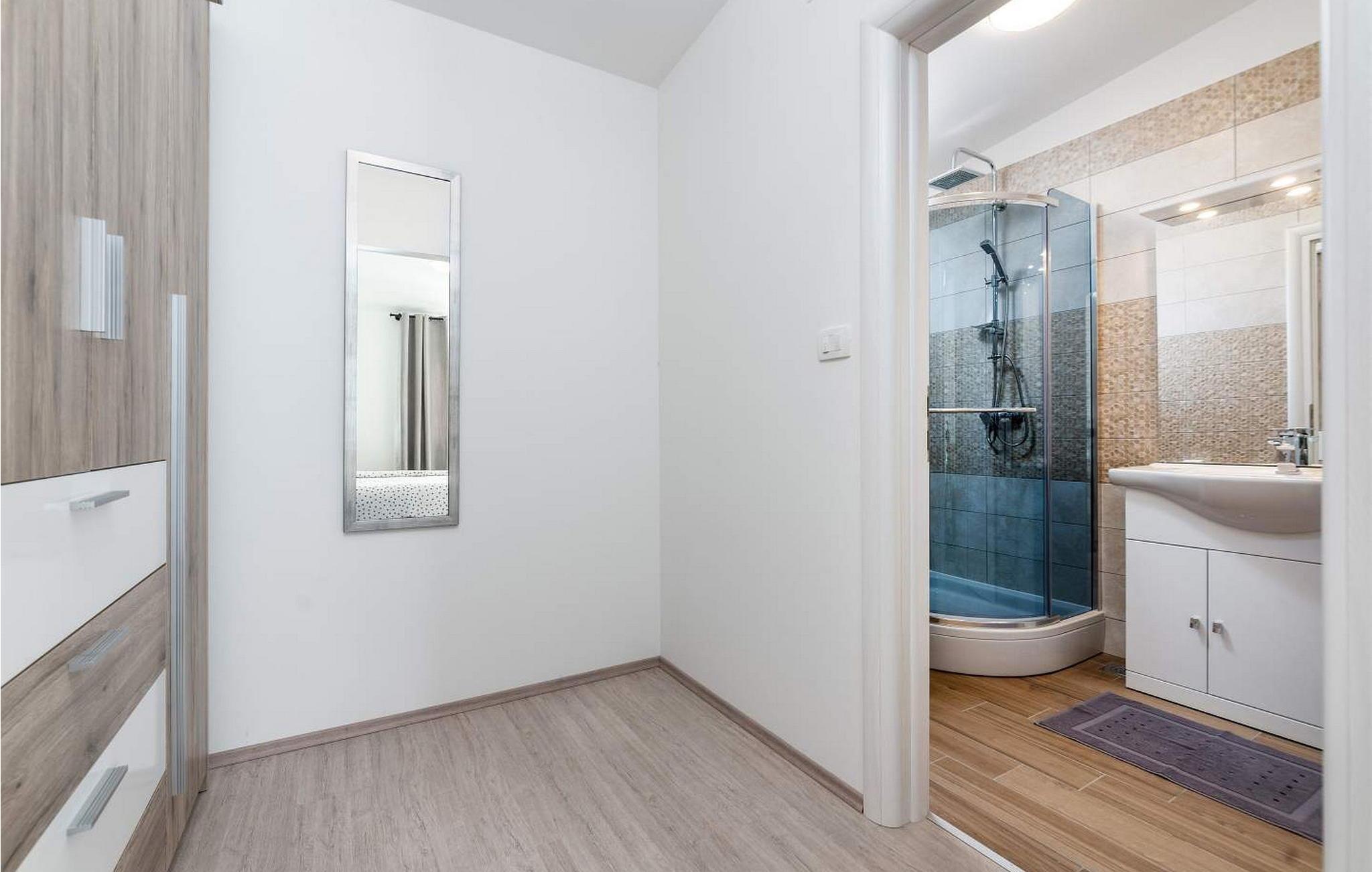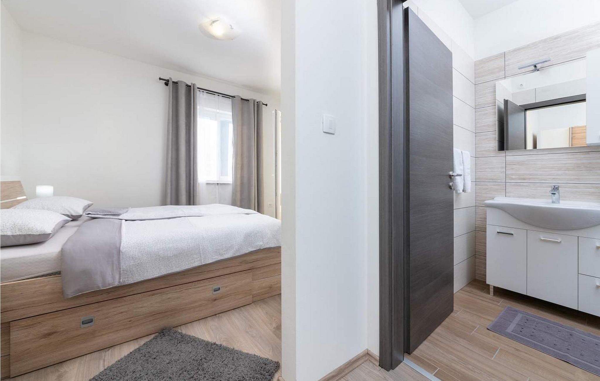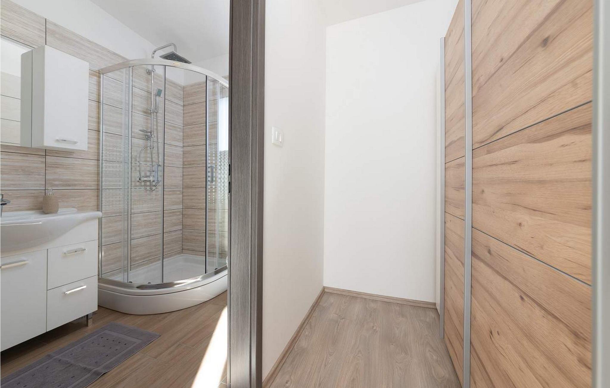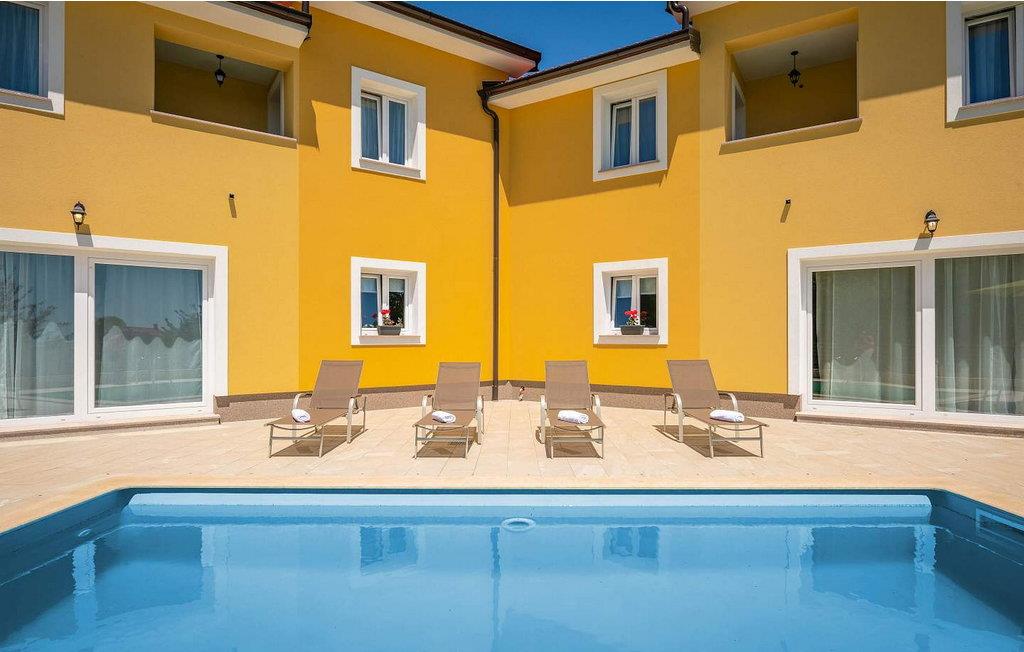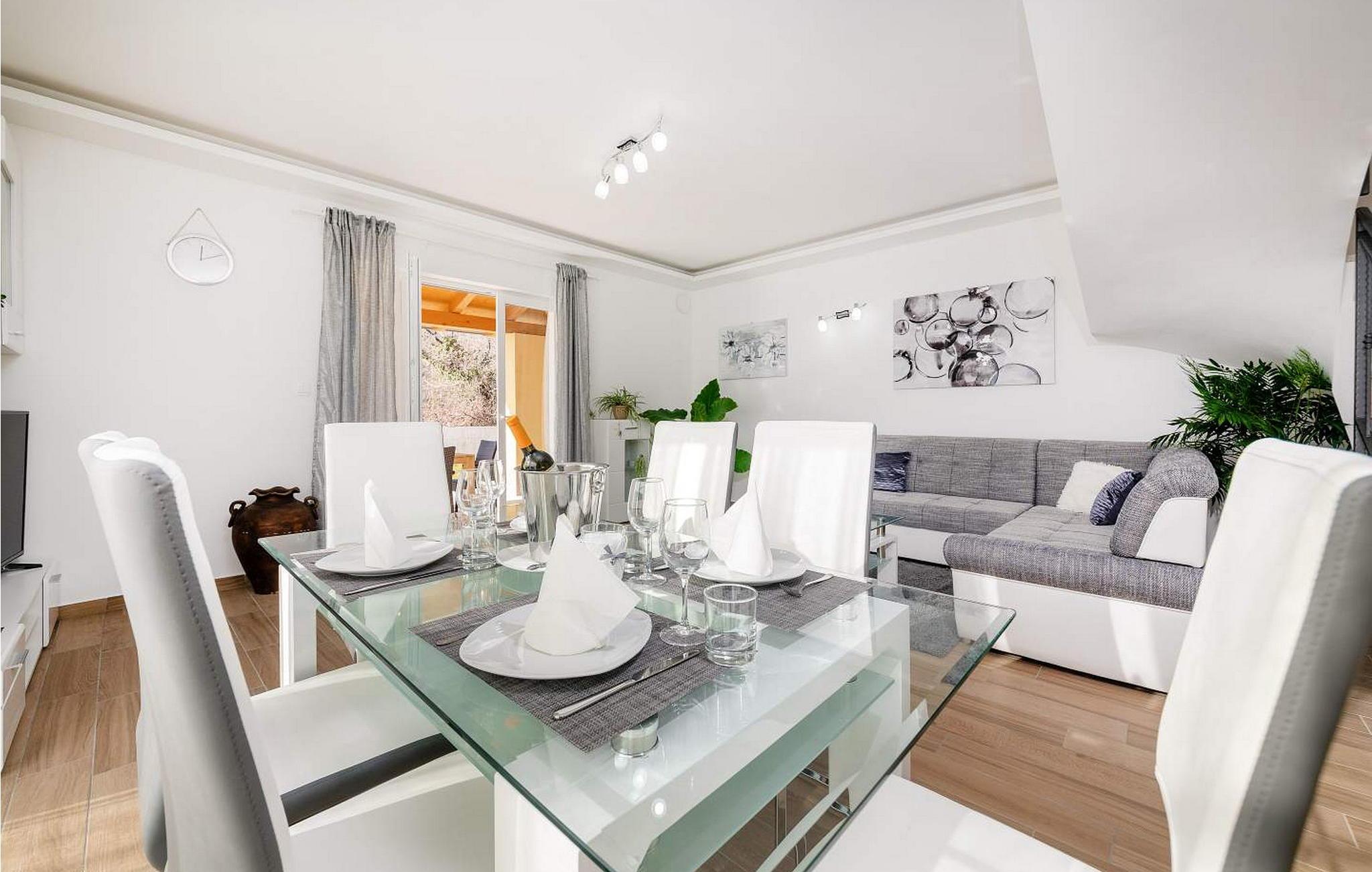 Villa Terra er et nybygget og rummeligt hus beliggende i en rolig beliggenhed, over den lille landsby Moscenice, nær kystbyen Moscenicka Draga med den smukke stenstrand Sipar. Ved siden af ??huset er der en bio-grøntsagshave til gæsternes rådighed. For dem, der ønsker at besøge den berømte Adriaterhavsperle Opatija eller byen Rijeka, vil det kun tage 30 - 40 minutter i bil. Denne unikke beliggenhed giver dig muligheden for en afslappende ferie væk fra de overfyldte, larmende veje med smuk panoramaudsigt over havet i uspoleret natur ved Ucka-bjerget nedad. Villa Terra ligger på en fuldt indhegnet have på 1300 kvm og tilbyder sine gæster en udendørs pool på 32 kvm med en rummelig solterrasse og liggestole, to overdækkede terrasser udstyret med bord og stole til 6 personer, en stor overdækket terrasse på forsiden af huset med grill og faciliteter såsom bordfodbold og bordtennis, 2 parkeringspladser inde i ejendommen og 2 mere på ydersiden og en legeplads. Villa Terra med et samlet areal på 220 kvm kan rumme op til 8 gæster. Den består af to separate boligenheder, hver enhed med følgende layout: i stueetagen er der stue, spisestue og udstyret køkken og et bad/toilet; på øverste etage er der to soveværelser, et med dobbeltseng og eget bad/toilet og et med separate senge og eget bad/toilet. Soveværelserne deler balkon med flot panoramaudsigt. Huset er fuldt airconditioneret. Bemærk venligst, at denne ejendom ikke accepterer ungdomsgrupper eller polterabends. En ungdomsgruppe på denne ejendom er en gruppe bestående af personer på 26 år eller derunder. Book ikke denne ejendom, hvis du er en ungdomsgruppe eller et polterabend, da din reservation vil blive afvist efter booking, hvilket kan omfatte ved ankomst til ejendommen eller under dit ophold, og du vil ikke blive refunderet.