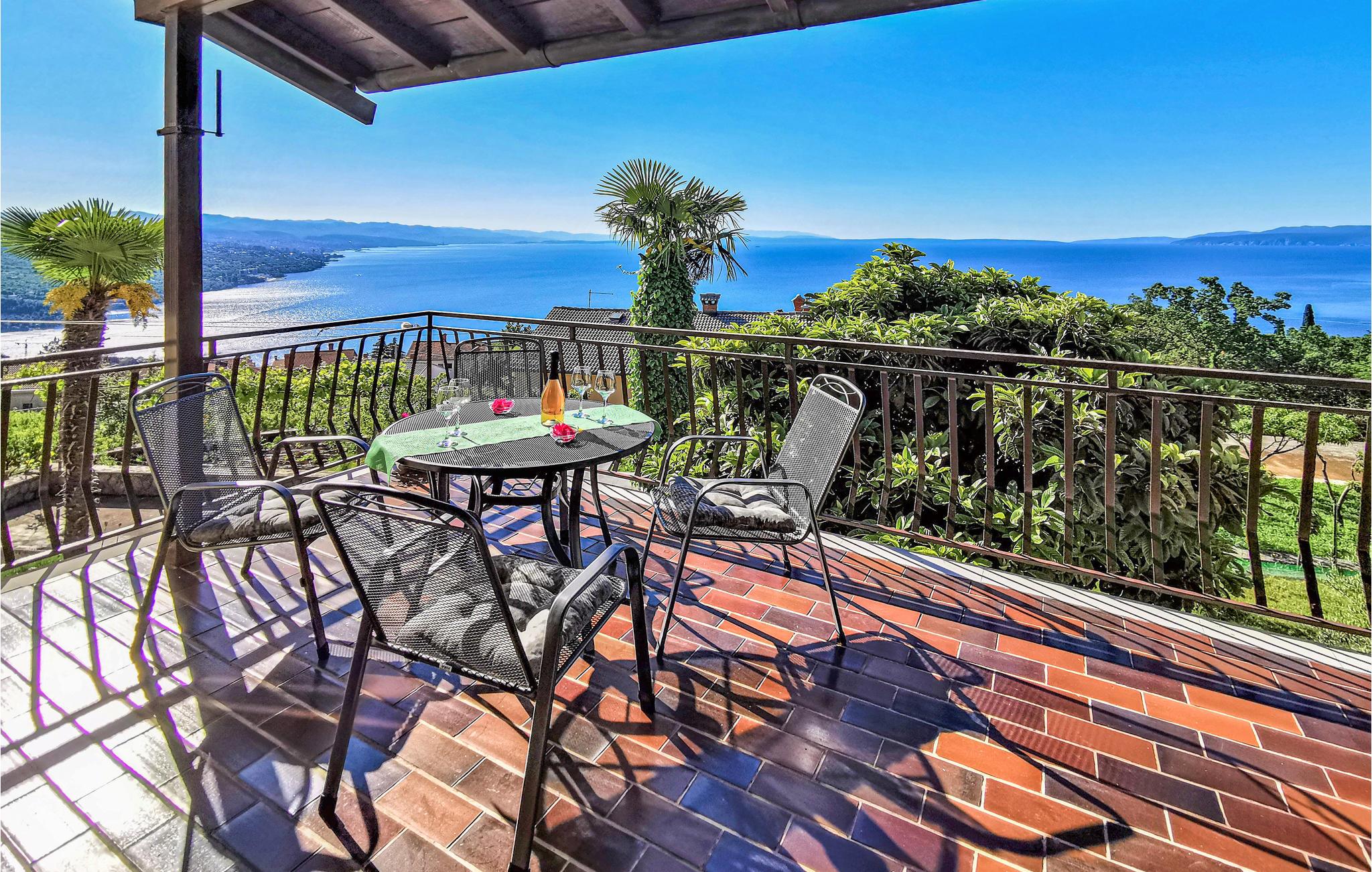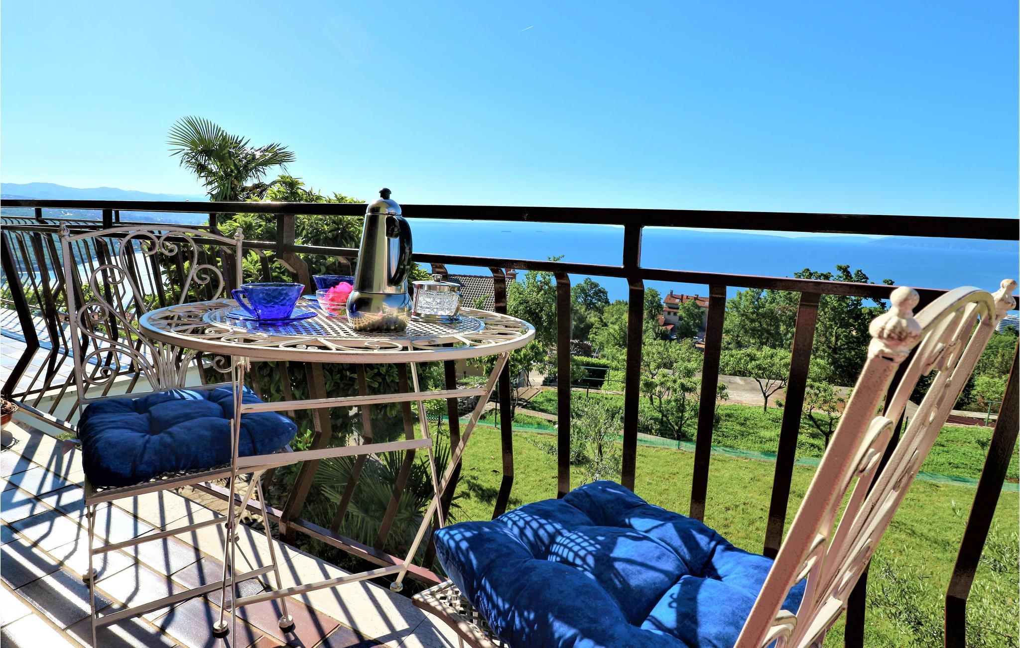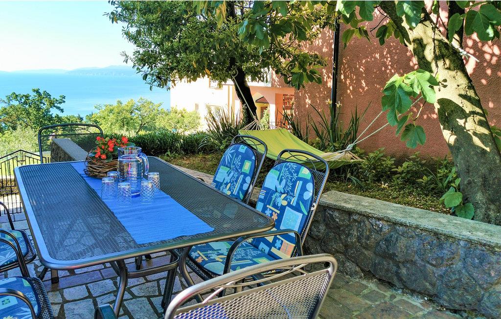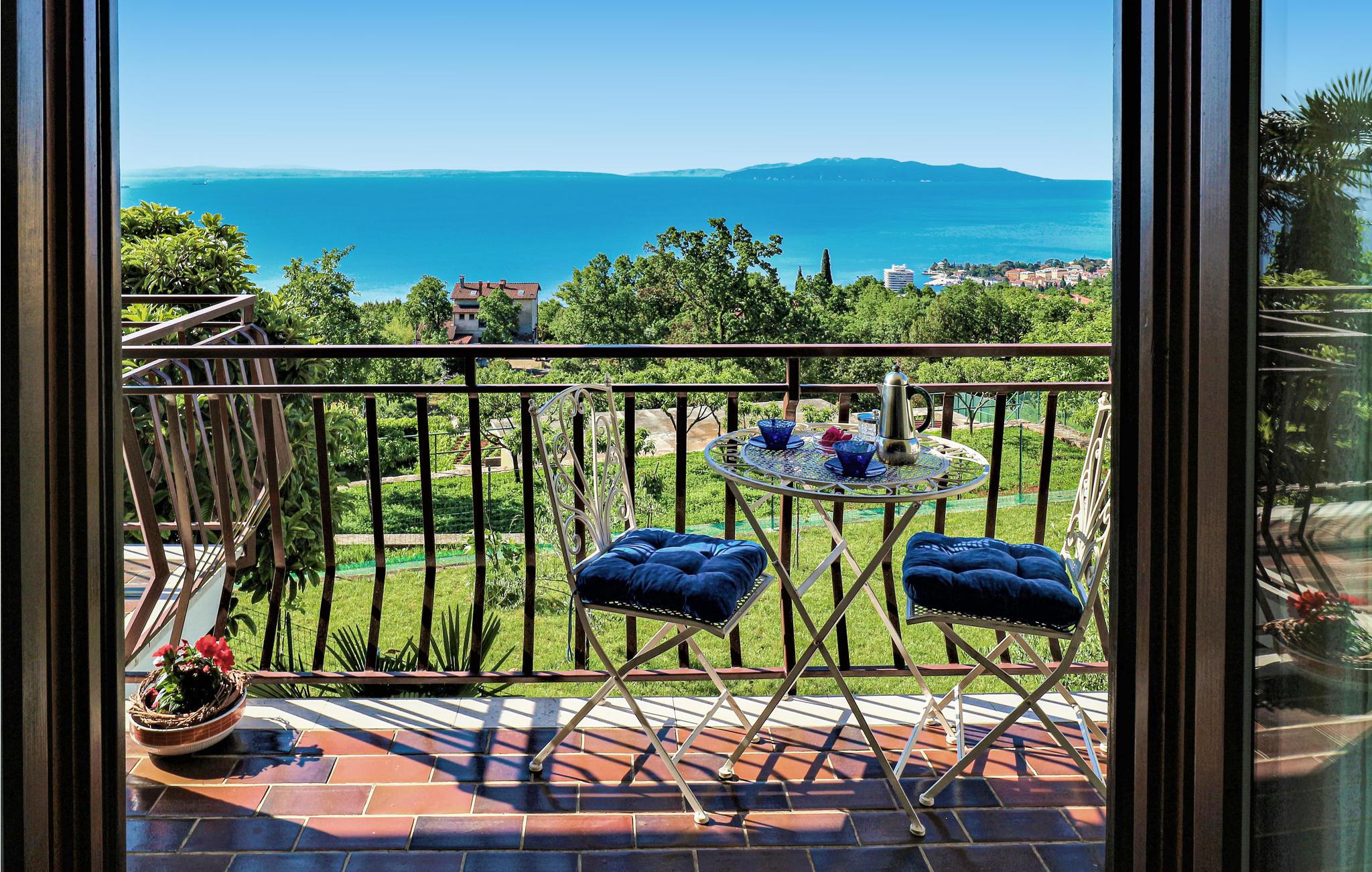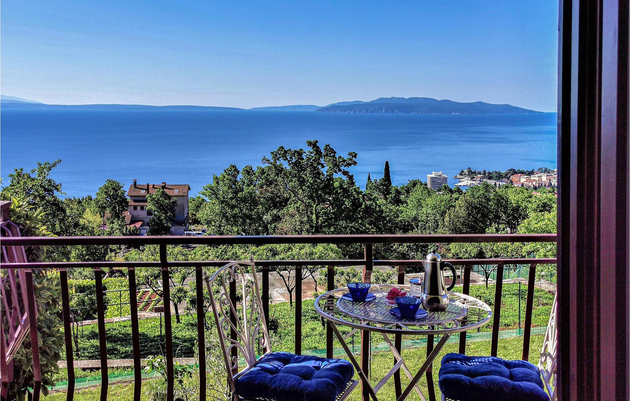 Denne venlige lejlighed ligger i rolige omgivelser i nærheden af Opatija. Den strækker sig over en etage og består af to boliger. Terrassen, dvs. altanen vender mod havet og byder på en fantastisk havudsigt. Den anden terrasse er mere skyggegivende. Herfra har udsigt over haven med mange mediterrane planter. Ejeren bor også på samme grund, men haven bliver kun brugt af jer ås I ikke skal være bange jeres privatsfære. . I nærheden er der ligeledes cykel- og vandrestier. I bil kommer I hurtigt til strandene i Vološko, Opatija, Icici med en idyllisk 12 km lang gåtur ved havet. Underholdning, fremragende restauranter og kulturelle arrangementer kan I besøge i Opatija. Besøg de nærliggende øer, naturparken Ucka og regionen Istrien.