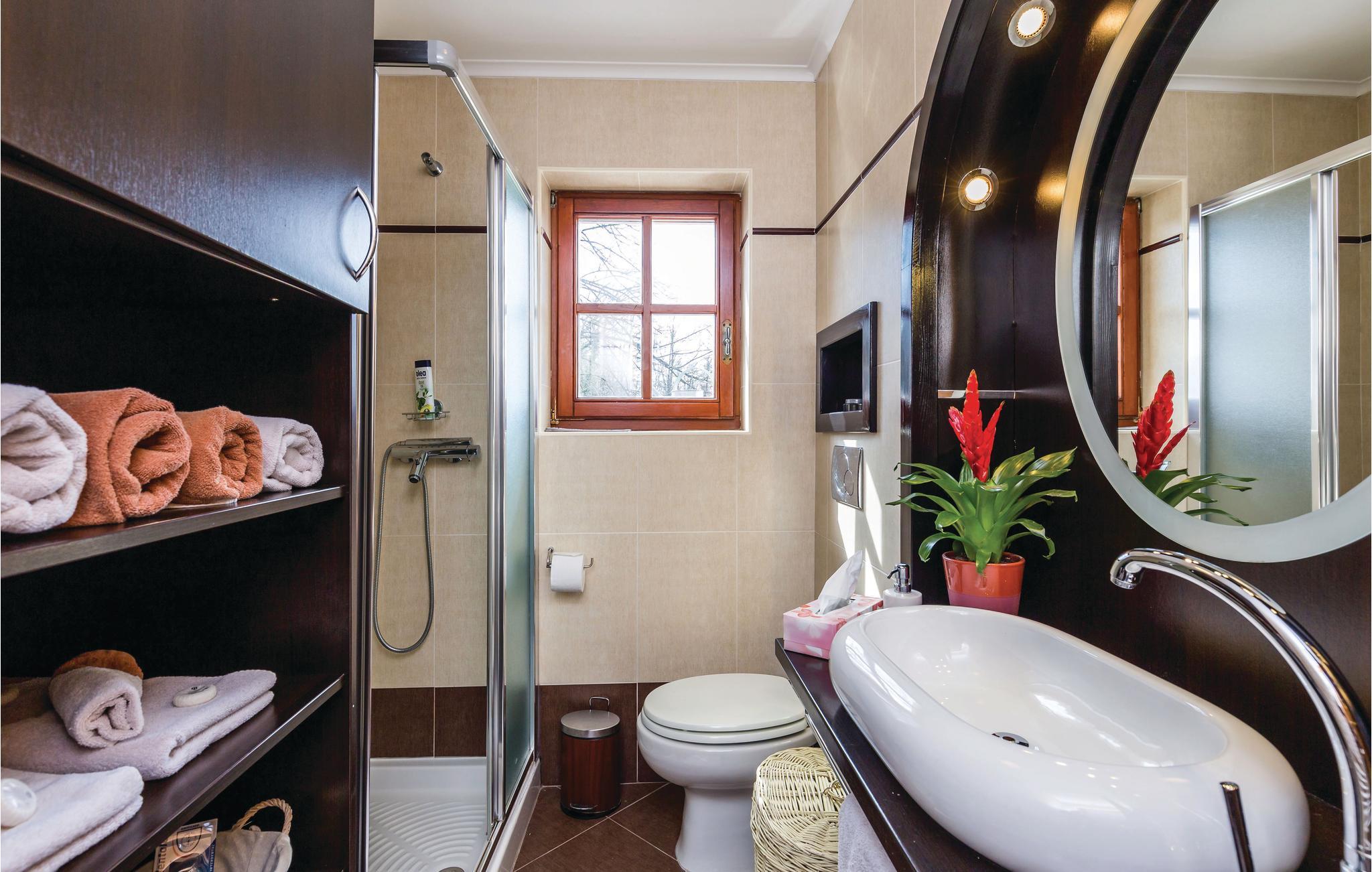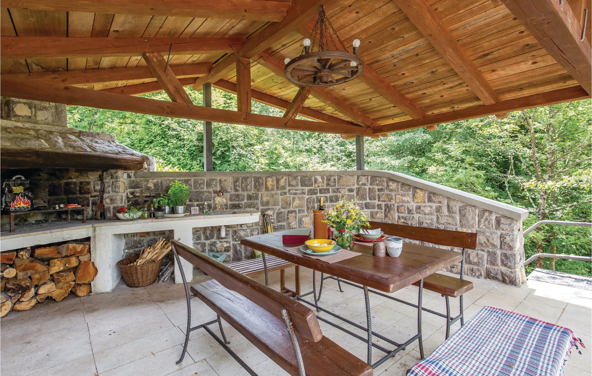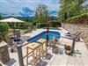 I den lille by Poljane nær byen Opatija finder I dette feriehus, som er renoveret i traditionel stil og omgivet af et særdeles idyllisk landskab. Feriedomicilet er rummeligt og smagfuldt indrettet og byder på alle de former for komfort, I kan drømme om til en afslappende og uforglemmelig ferie. I stueetagen finder I opholdsstuen med herlig kamin, som på de køligere aftener sørger for en varm og hyggelig atmosfære. Ad en stejl indendørs trappe, kommer I op til første sal med soveværelserne. I kan forkæle krop og sjæl med en tur i sauna eller lade de ømme muskler massere af spabadets tusinder af bobler.