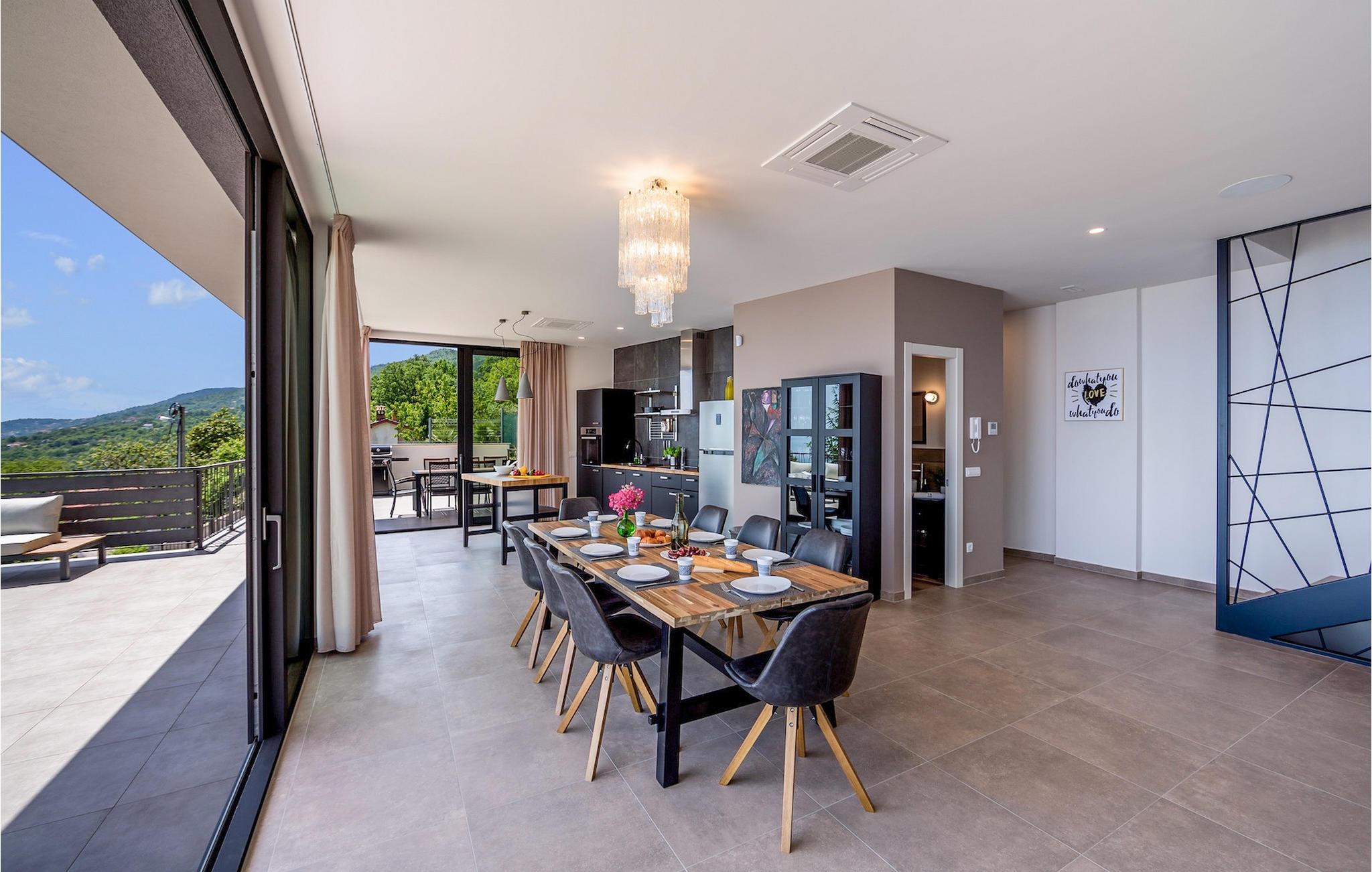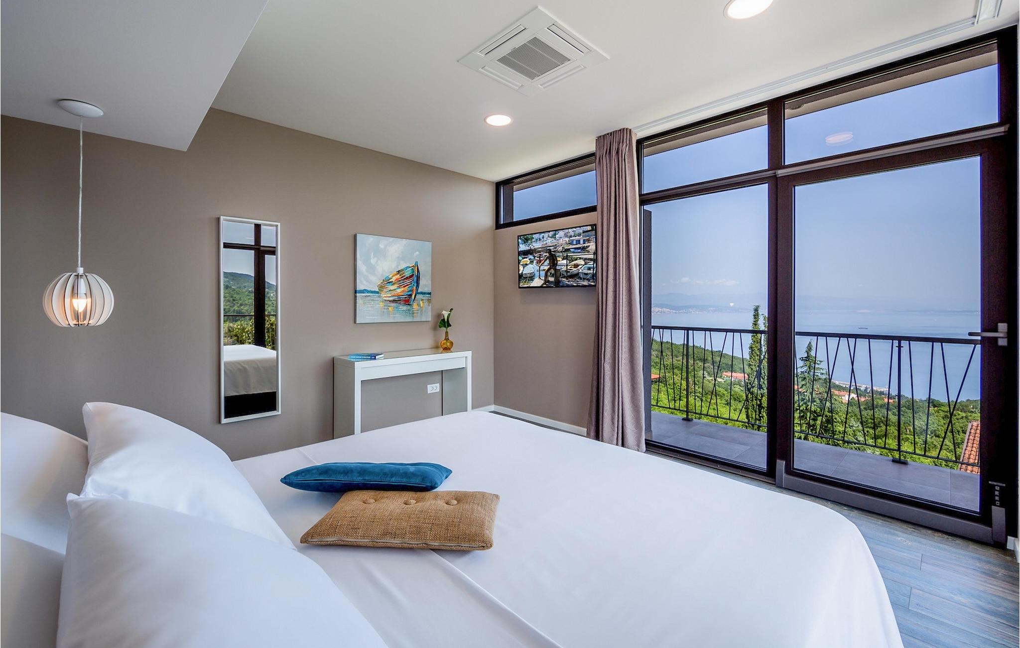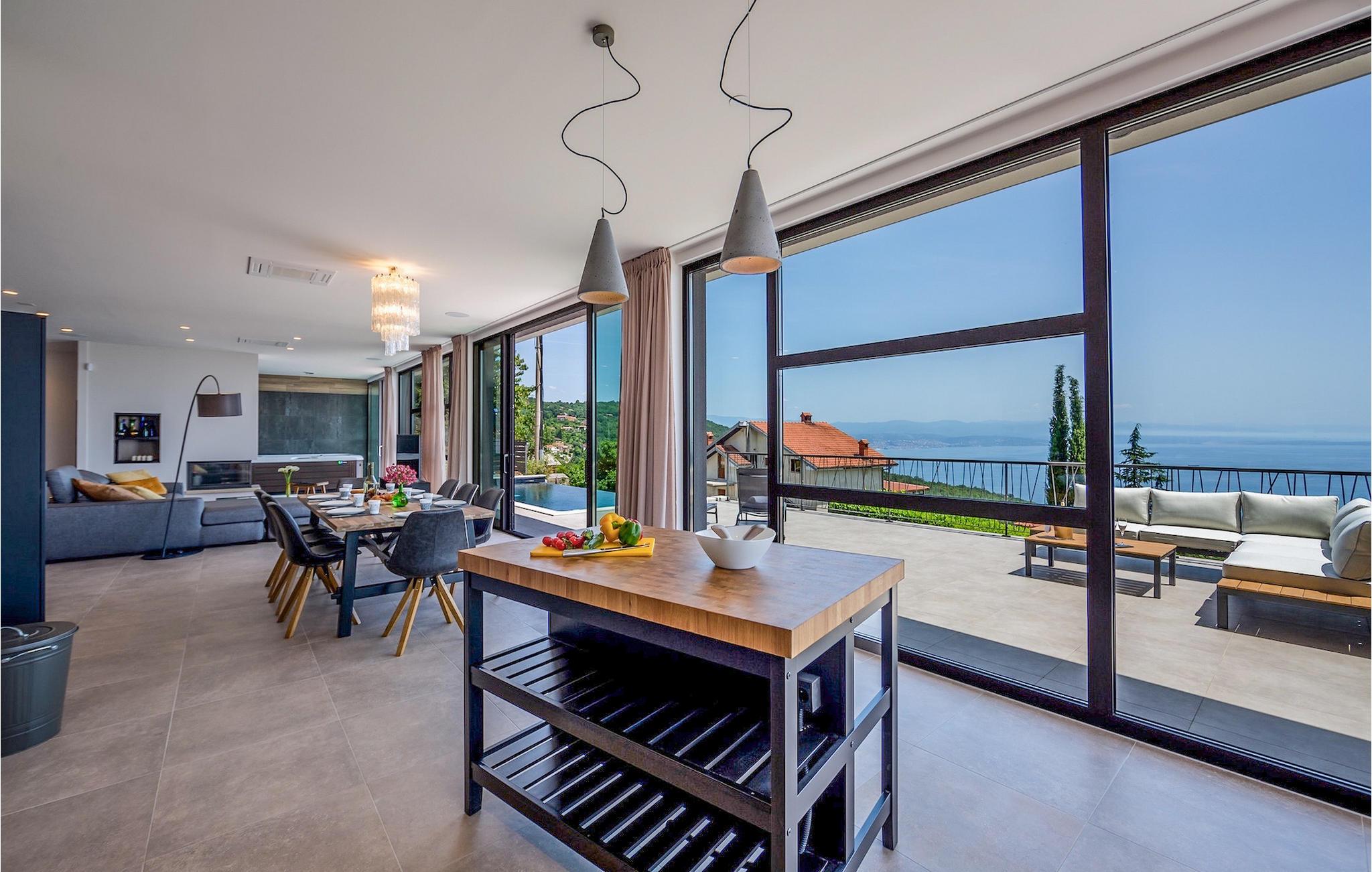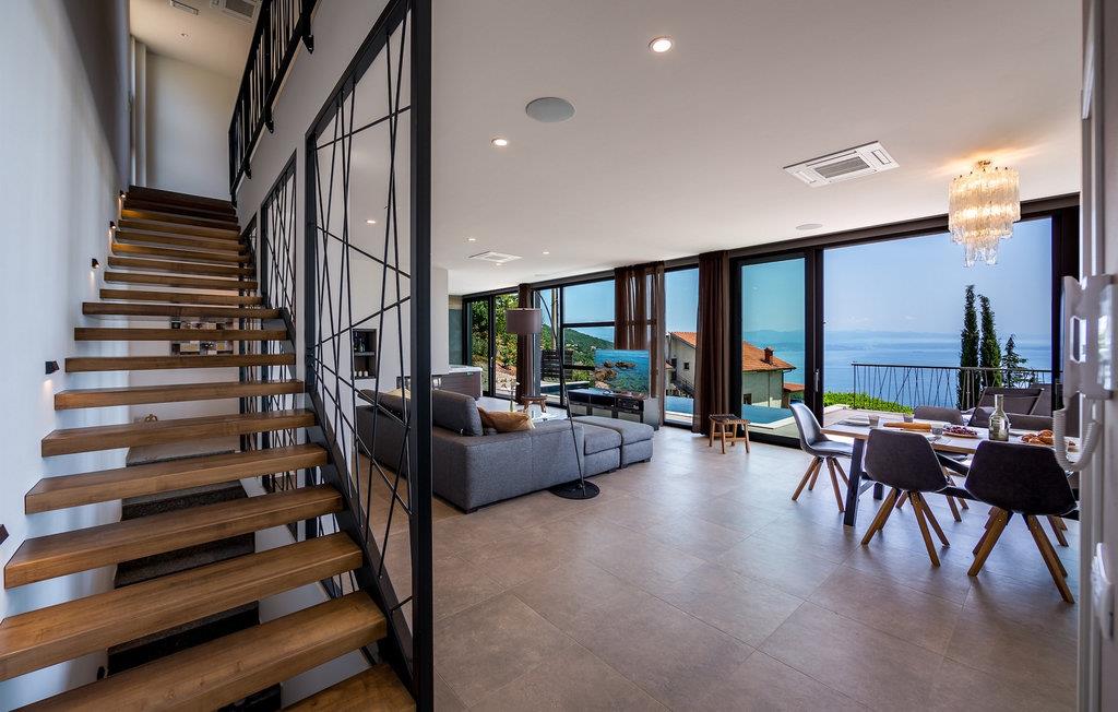 Villa View Opatija er, hvad man ville sætte i beskrivelsen af udtrykket "luksusvilla". Den fanger bare din opmærksomhed ved dens smukke og sofistikerede indretning, dens spa-område med sauna og frem for alt den betagende udsigt fra huset og fra poolområdet. Placeringen øger kun villaens værdi, da den er beliggende nær havet og nær den smukke by Opatija, kendt som Adriaens perle.