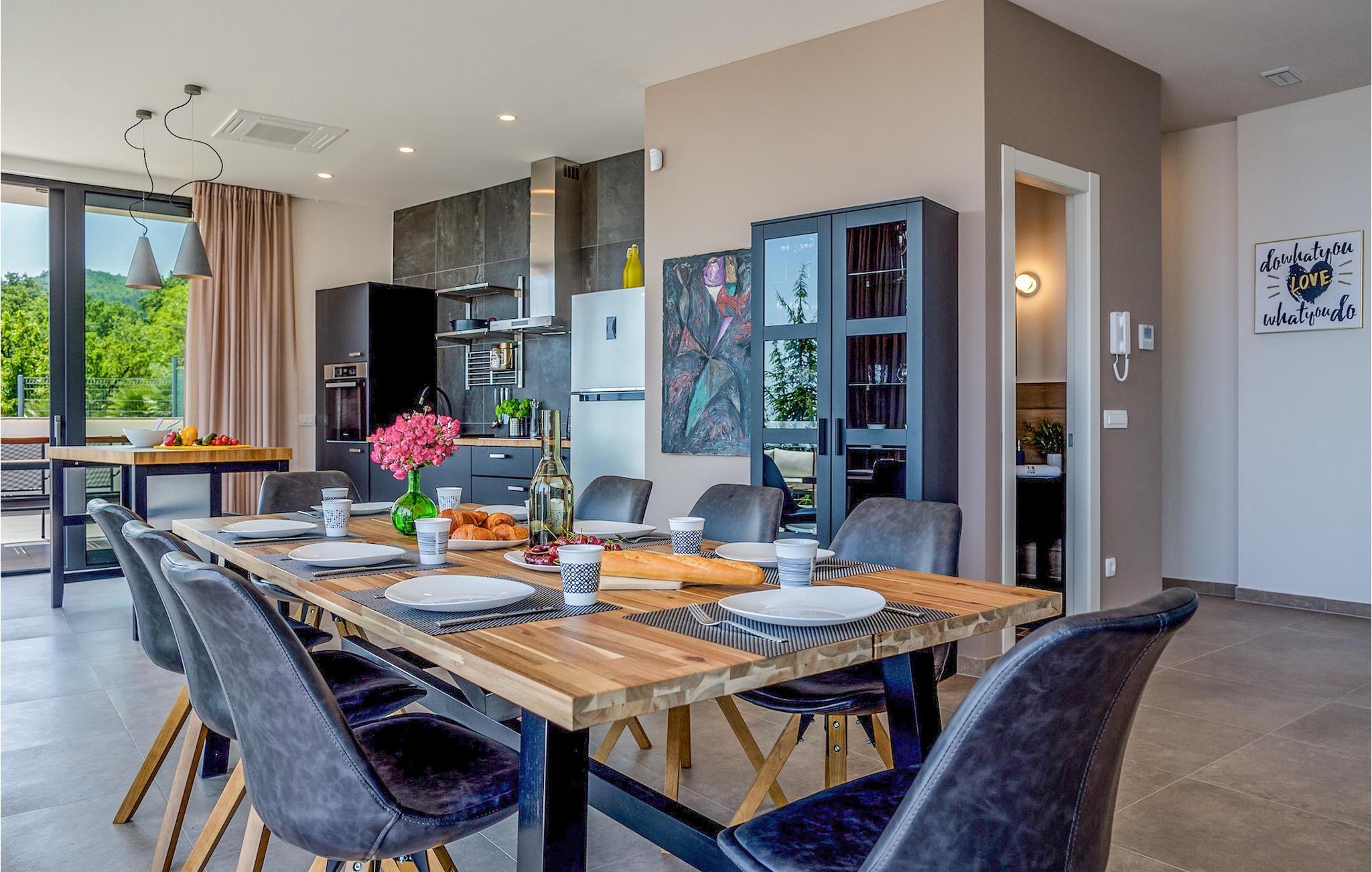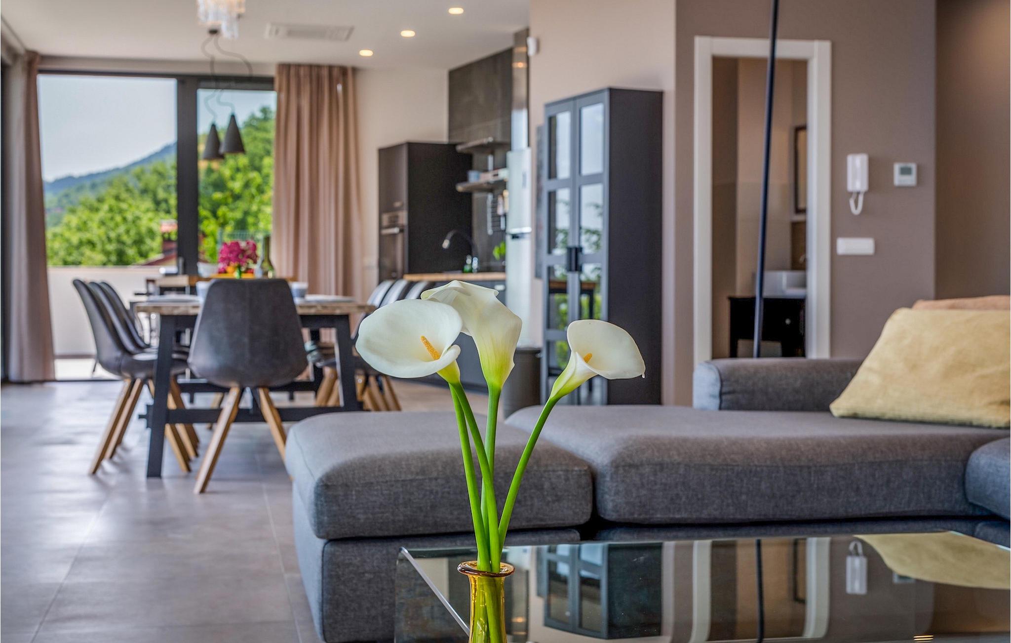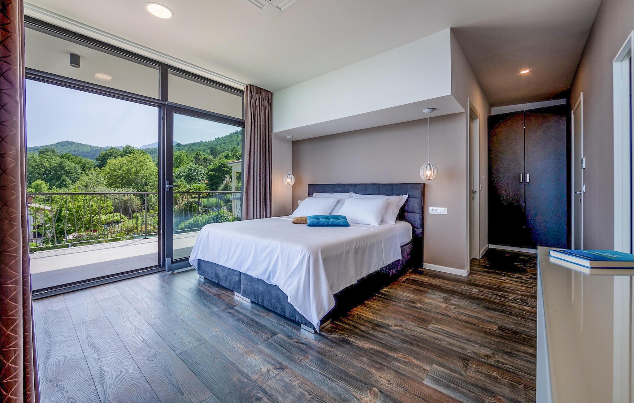Villa View Opatija er, hvad man ville sætte i beskrivelsen af udtrykket "luksusvilla". Den fanger bare din opmærksomhed ved dens smukke og sofistikerede indretning, dens spa-område med sauna og frem for alt den betagende udsigt fra huset og fra poolområdet. Placeringen øger kun villaens værdi, da den er beliggende nær havet og nær den smukke by Opatija, kendt som Adriaens perle.
