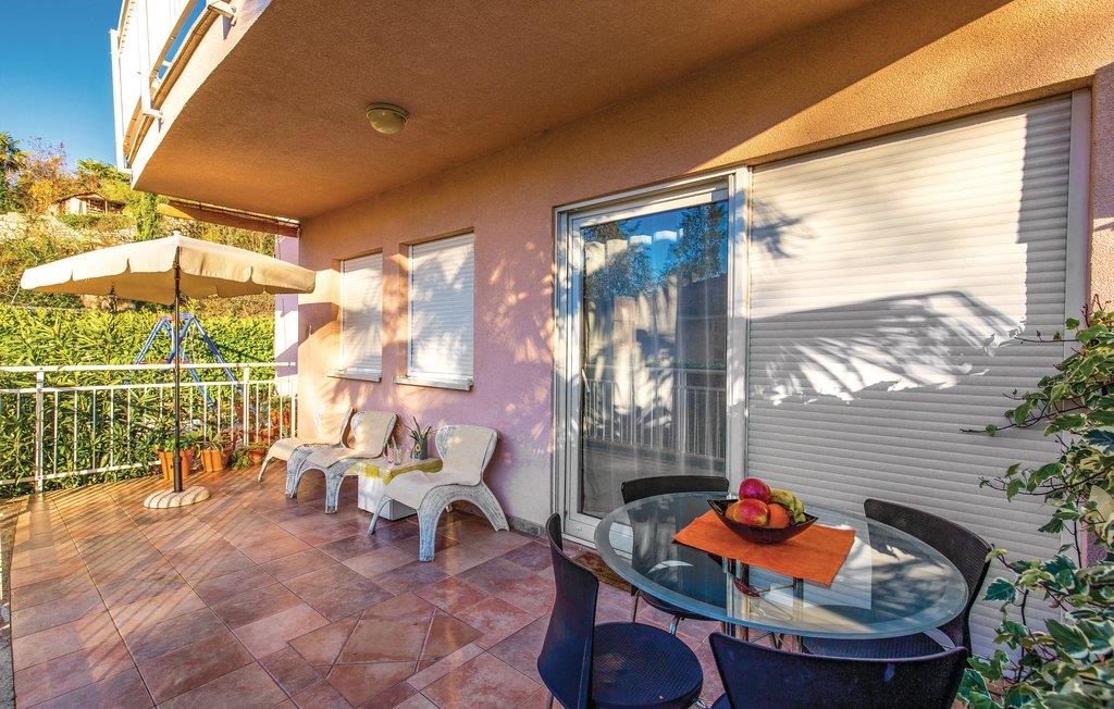 Venligt indrettet ferielejlighed på stueetagen. Indhegnet terrasse til dejlige timer i det fri, om morgenen til at spise morgenmad på og om aftenen til at grille på. Plænen foran terrassen er fælles for alle gæster. Tag solbad på kiselstranden i de nærmeste omgivelser, eller prøv tilbuddene inden for sejlads, dykning eller vandskiløb ved stranden. Se nationalparken Ucka, og udforsk dens vandreruter. Lad jer også underholde af sommerens arrangementer i de omkringliggende byer.