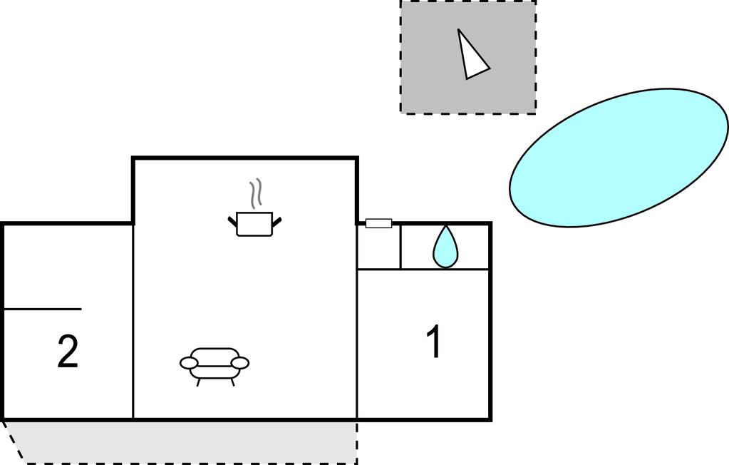Da Lejligheden ligger på en skråning, er indgangen i stueetagen, men altanen på første sal. I lejligheden er der to soveværelser, dagligstueområde med køkken og badeværelse. I et af soveværelserne står der en paravent mellem dobbeltsengen og de to enkeltsenge. Nyd dejlige øjeblikke på den overdækkede terrasse ved siden af lejligheden og slap af i poolen.