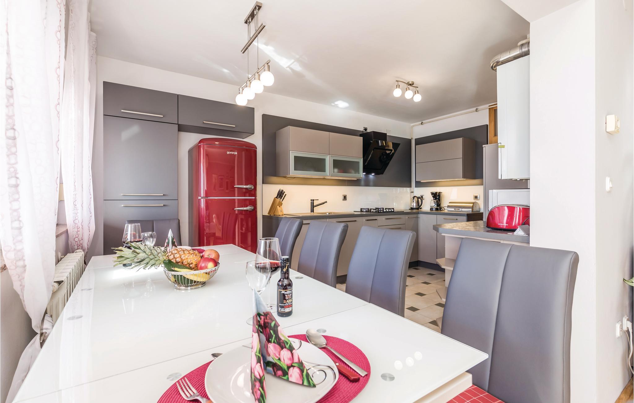 Bare 100 m fra en vidunderlig strand, ligger denne rummelige, komfortable ferielejlighed. Den rummer tre soveværelser, en stue i åben forbindelse med køkkenet, badeværelse og et ekstra wc. På den store balkon kan I nyde dagens første kop kaffe, tilberede lækker mad på grillen og bare slappe af med en god bog. Lige under lejligheden, på den anden side af vejen, ligger en svømmehal hvor der også tilbydes forskellige former for wellness. Besøg det underskønne Opatija gå afslappede ture på den charmerende promenade og se de talrige former for underholdning der tilbydes i sommersæsonen.