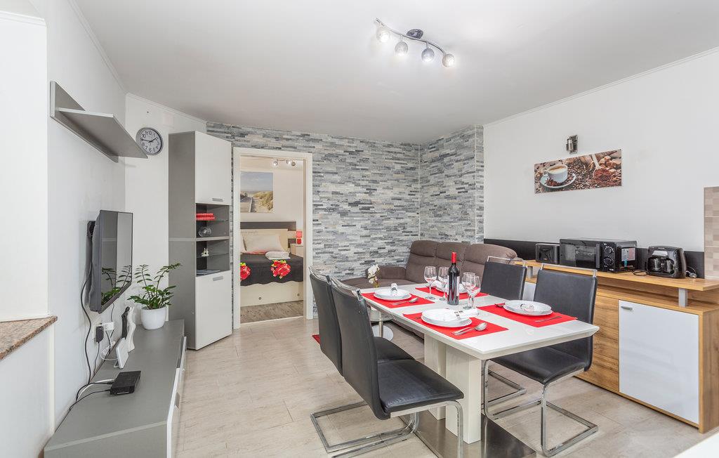 Planlæg jeres ferie i denne smukt møblerede lejlighed. I og jeres kære vil finde ro og afslapning her. Lejligheden giver jer al den komfort, I har brug for under jeres ferie. Den kompakte stue tilbyder jer ikke kun et attraktivt tekøkken, men også rummelig plads til at slappe af. Med jeres egen terrasse og fuldstændigt privatliv i en indhegnet have, kan I nyde jeres yndlingsretter i fred og ro.