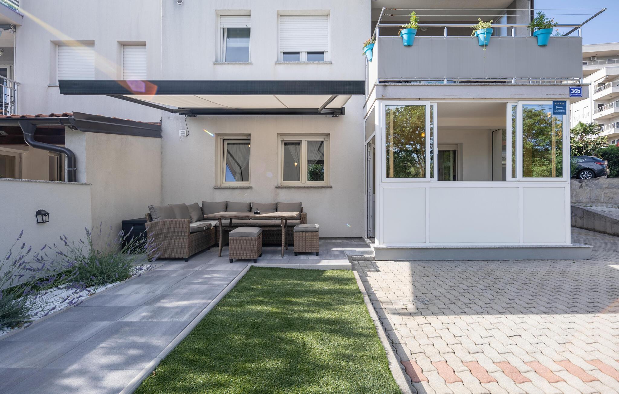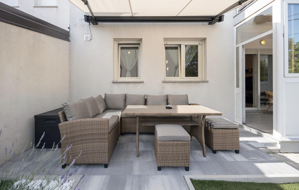 Nyd luksusen ved to terrasser - den ene solrig og åben, perfekt til morgenmaden al fresco, og en overdækket terrasse, der lægger op til hyggelige grillaftener. Her kan I mærke middelhavsletheden i alle detaljer, optimal til en afslappende ferie i en stilfuld atmosfære.