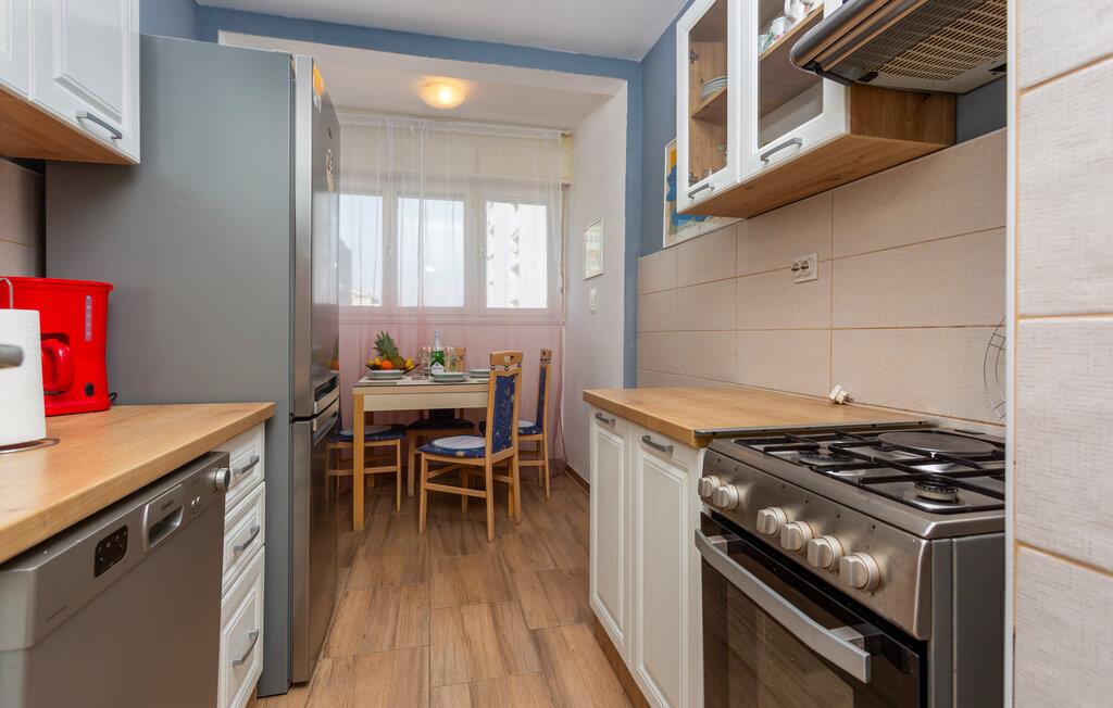 Højt over byens hustage tilbyder denne komfortable ferielejlighed jer et ideelt tilflugtssted for at udforske de mange attraktioner langs kysten. Tilbered lækre retter i det charmerende køkken og planlæg jeres aktiviteter ved det indbydende spisebord. Glæd jer til harmoniske stunder i den hyggelige stue, hvor I kan arrangere selskabelige spilleaftener eller slukke for hverdagen med en god bog.