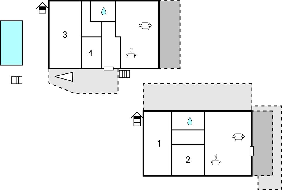 I begge etager, der forbindes via en udvendig trappe, er der en stue med køkken, to soveværelser og badeværelse. Udendørs finder du en hyggelig overdækket terrasse med grill. Poolen ligger skjult bag huset, og her finder du liggestole, så du kan nyde solen efter en forfriskende dukkert.