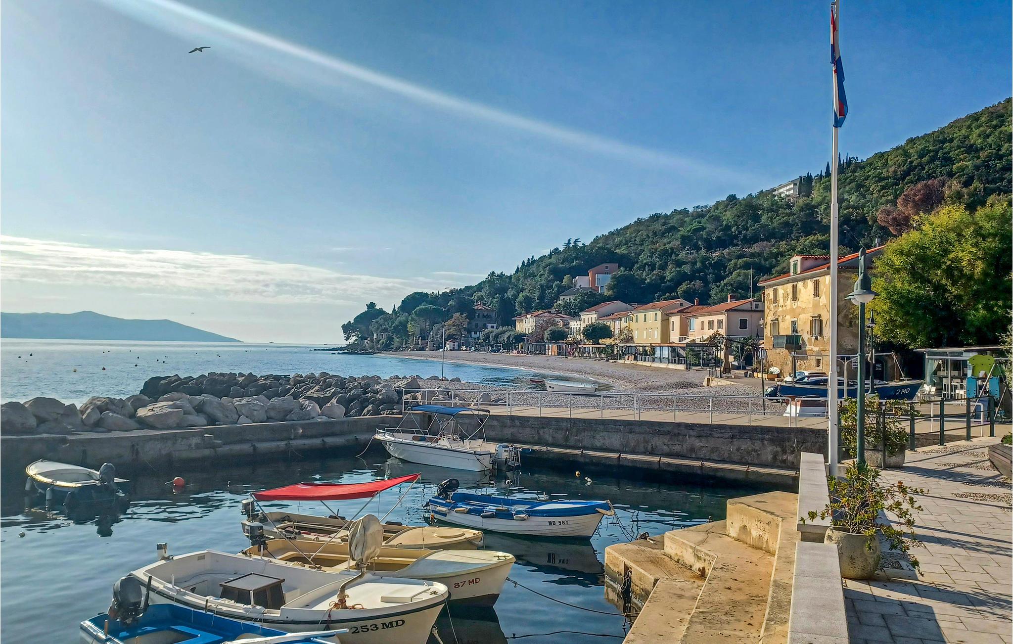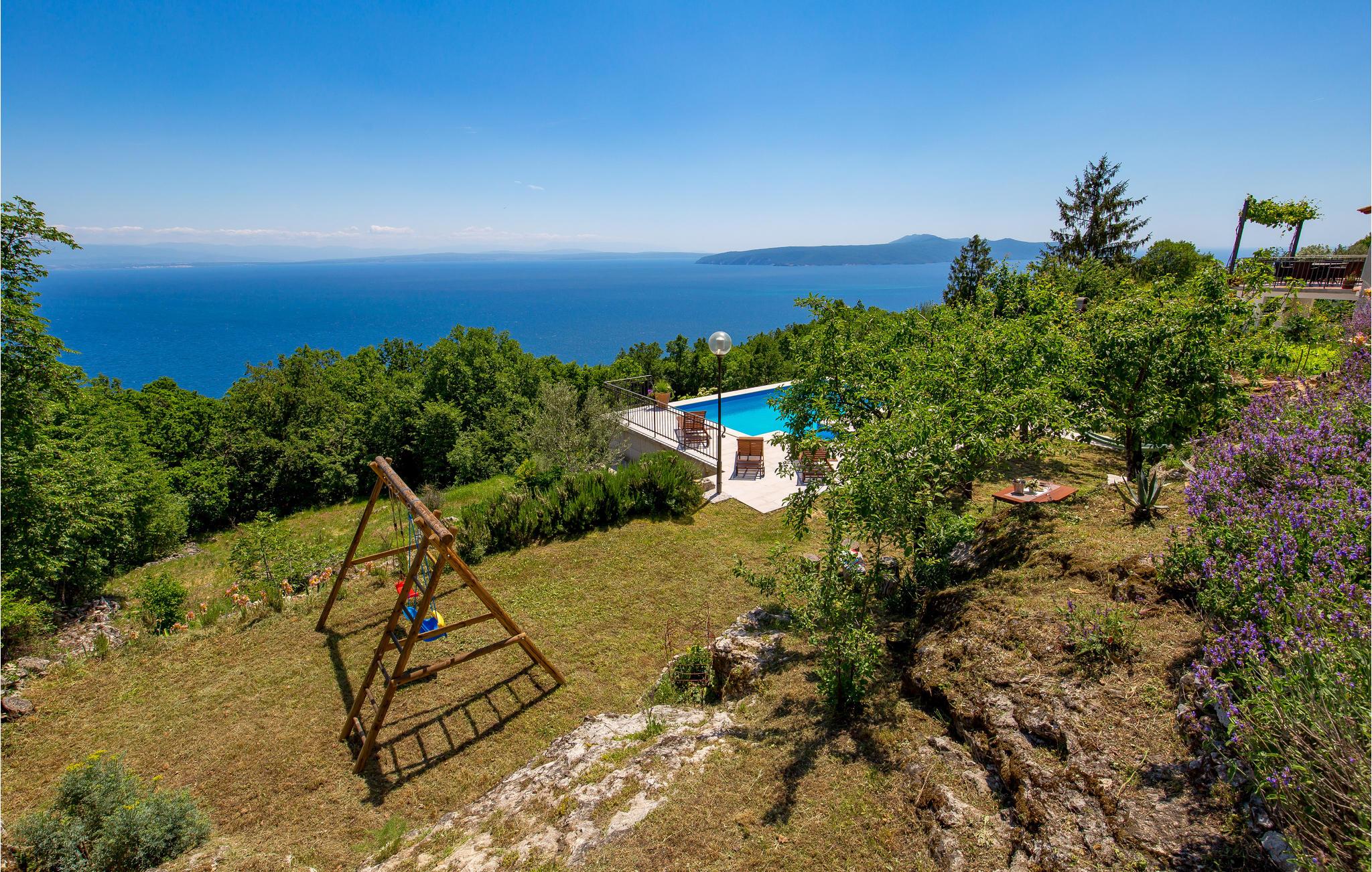 Glæd jer til det behagelige klima, som bliver suppleret af havbrisen og den friske bjergluft. Som noget helt særligt har denne ferieejendom en spektakulær panoramaudsigt over Kvarner-øerne og den turkisblå havbugt, ikke mindst om aftenen, når byens lys er i det fjerne.