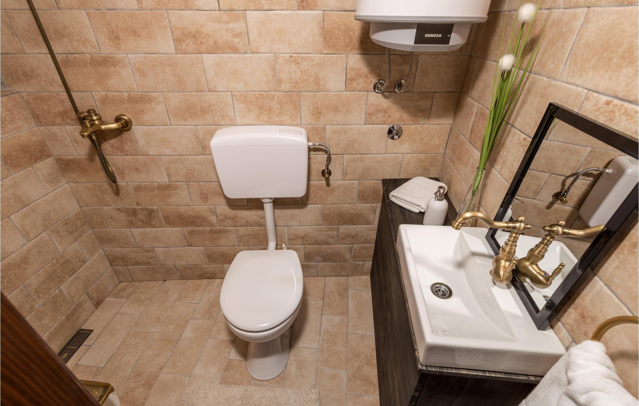 - WC. Varmt og koldt vand, Bruser