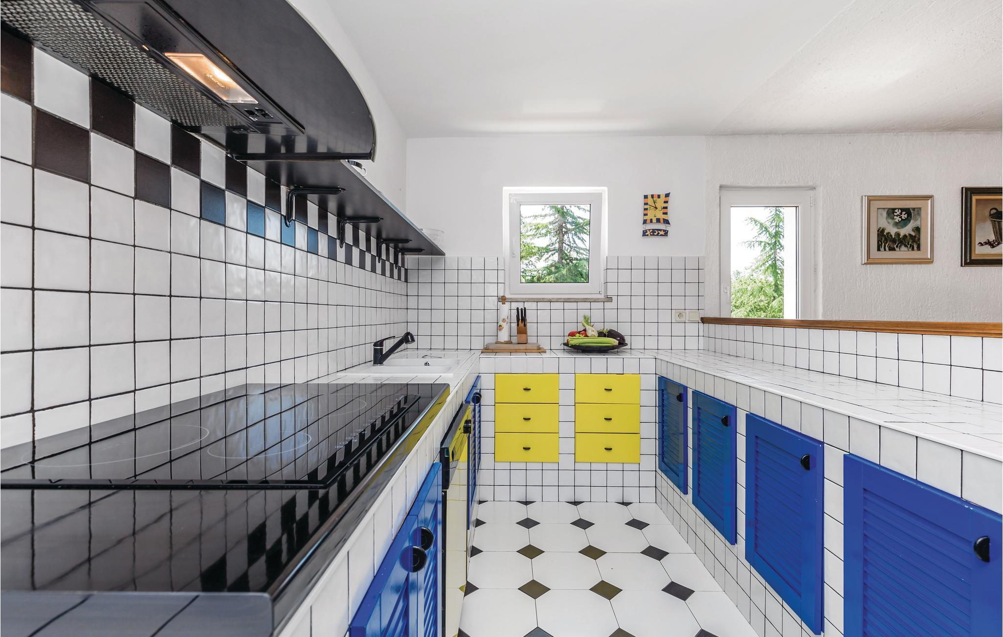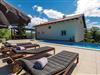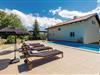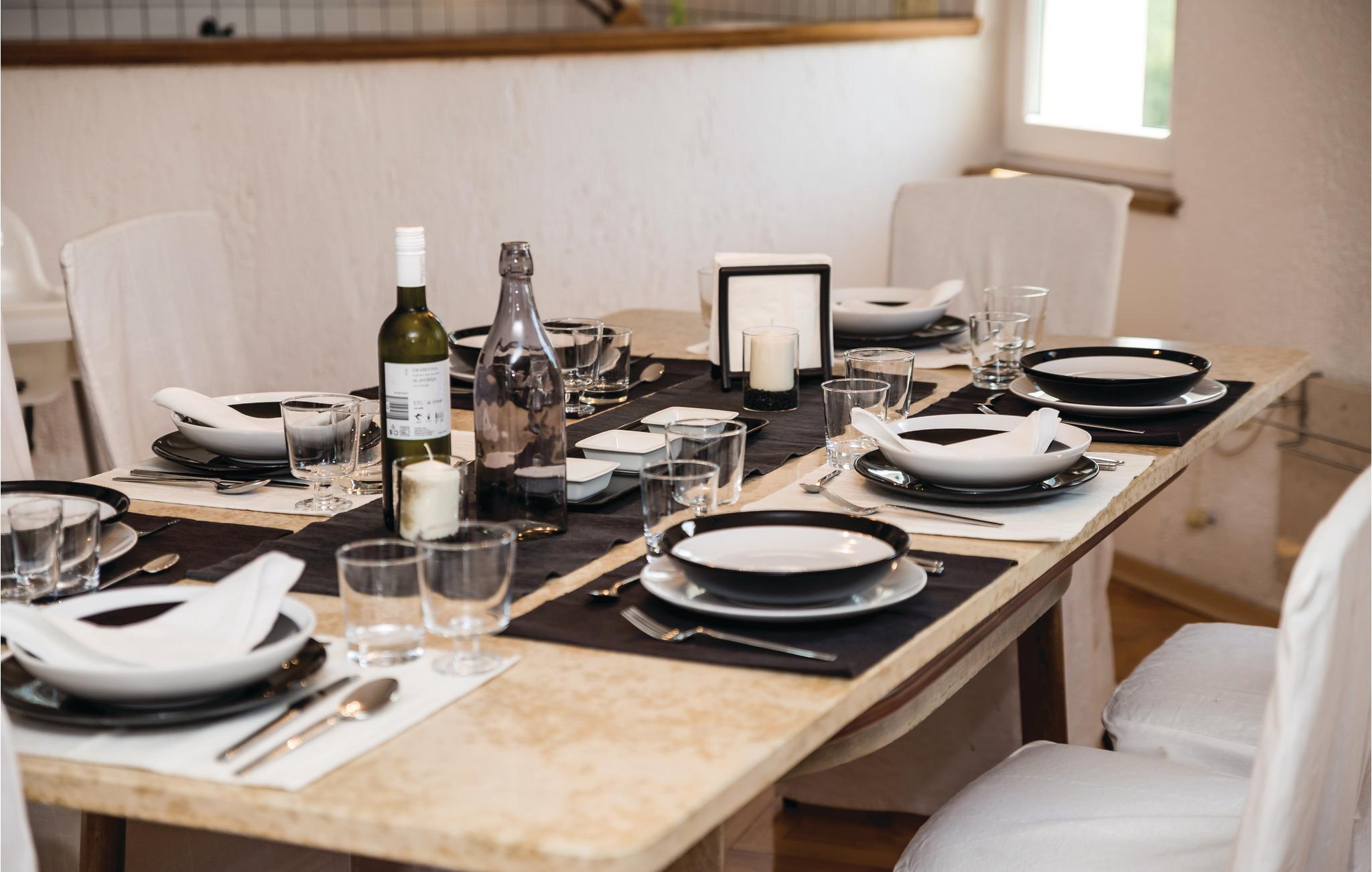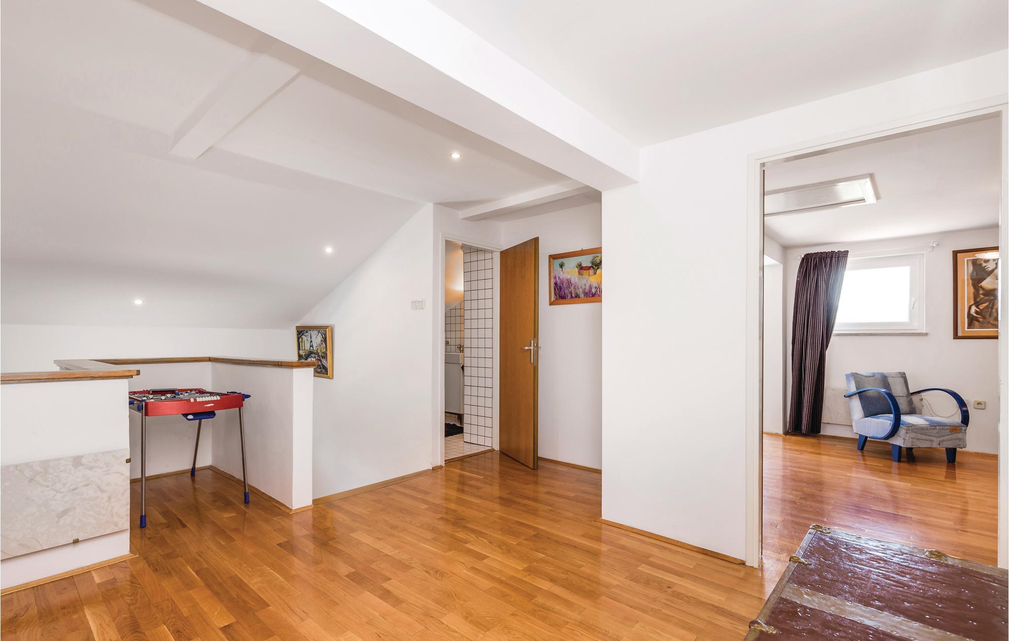 Den er ideelt egnet til en ferie for flere familier. Huset fordeler sig på 1. sal og loftsetagen, som er forbundet med en ydre trappe. Den øverste etages laveste loftshøjde er 120 cm. Huset har et stort køkken, hvor I kan være mange i gang samtidigt om at tilberede lækre feriemåltider. Bag huset er der en udendørspool, hvor I tilbringe timevis med masser af badesjov, samt en havepavillon, hvor I kan sidde hyggeligt sammen og nyde et glas lokal vin. Desuden kan I konkurrere i bordtennis og bordfodbold.