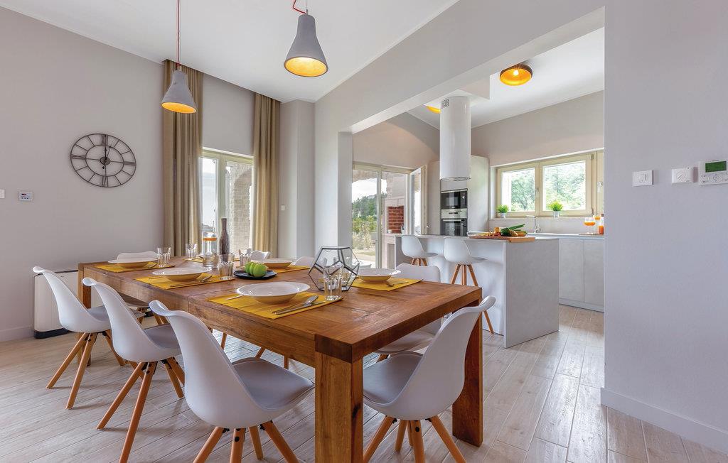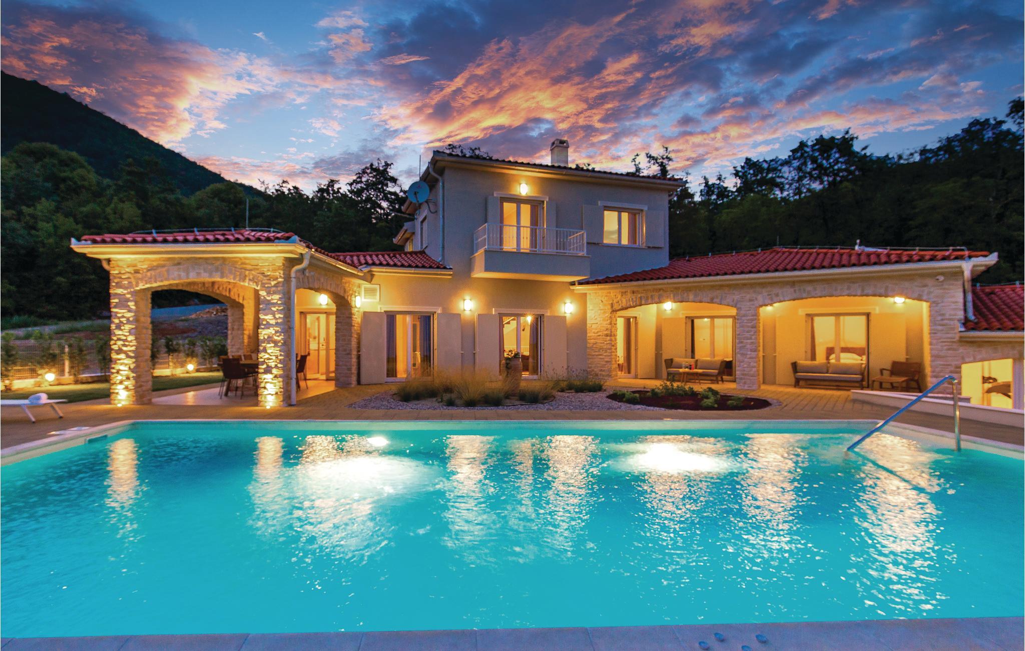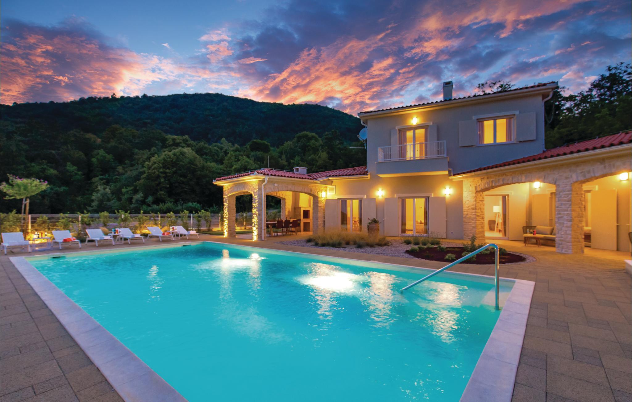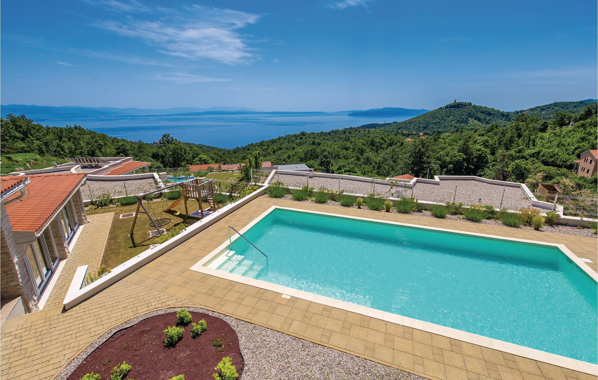 Oven for den smukke riviera ved Opatija, i et kompleks bestående af fem moderne villaer, befinder også denne eksklusive villa med pool. I kommer til at forelske jer i beliggenheden på grund af den behagelige ro, de dejlige stjerneklare sommeraftener tæt på skoven og udsigten til Kvarner bugten. Hver villa råder over en egen pool og indhegnet have - så I har jeres for jer selv. Indvendigt er ganske rummelige og komfortable. Hvert soveværelse har eget badeværelse, og der er også fitnesrum og whirlpool område. Endda en vinkælder. Villaen er perfekt til en tid med afslapning, langt fra hverdagens støj og stress. Alligevel er det oplagt med nogle udflugter til de nærtliggende populære turistdestinationer omkring Opatija. kun 10 minutter i bil. I den modsatte retning liugger naturparken Ucka med de talrige vandrestier og cykelstier.