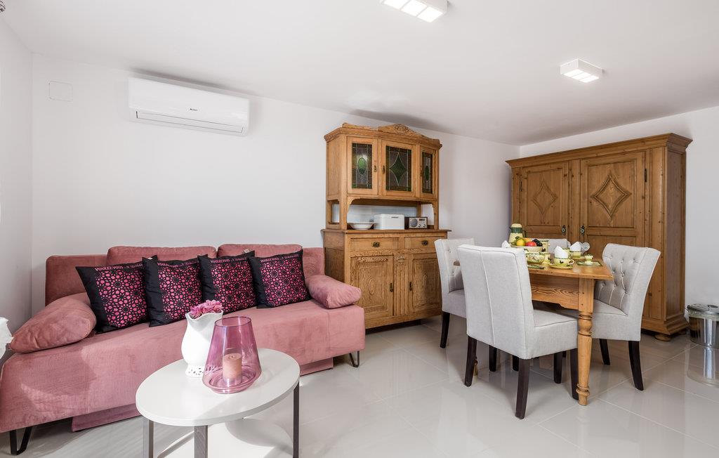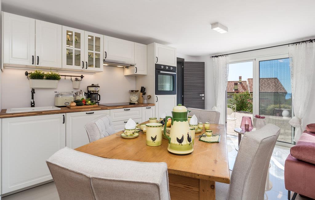 Denne dejlige lejlighed lægger op til et behageligt ophold i landsbyen Veprinac nær Opatija Riviera. Lejligheden ligger i et roligt villakvarter og byder på alt, hvad I behøver til en fuld ferie. Fra køkken-alrummet er der udgang til terrassen med udsigt til havet og Kvarnerbugten. Lige foran døren kan I spise morgenmad og drikke en kop kaffe, mens I nyder havudsigten. På terrassen er der en fælles udendørspool med liggestole.