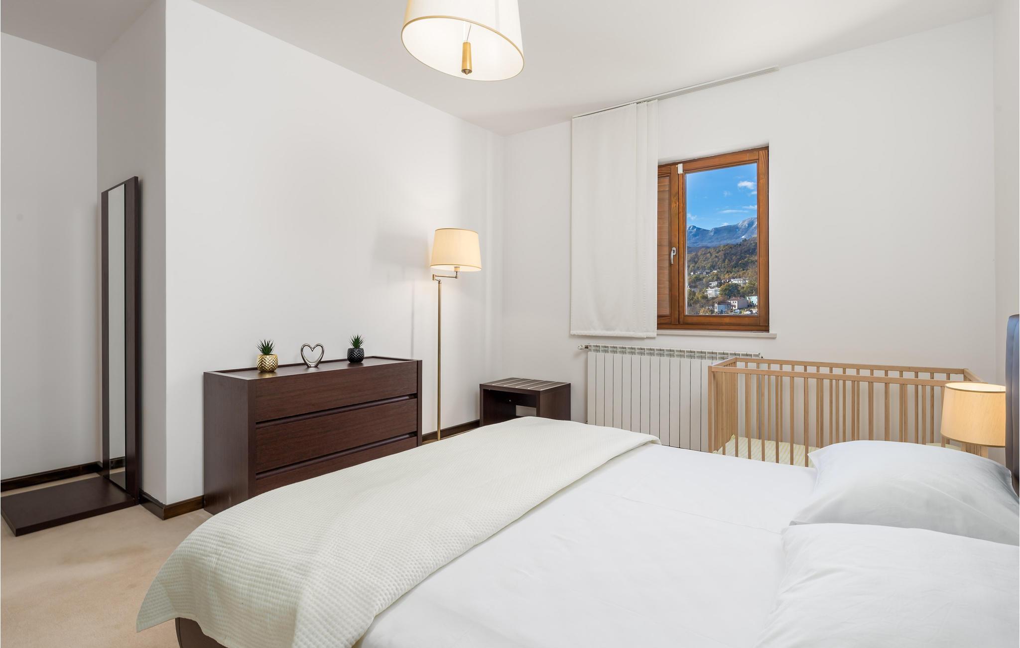 Læn dig tilbage og kig ud over de bølgende bakker ned mod havet. Du bor i umiddelbar nærhed af strande, restauranter og caféer og kan hurtigt nå den smukke kystby Opatija. Udforsk området til fods eller med båd langs kysten.