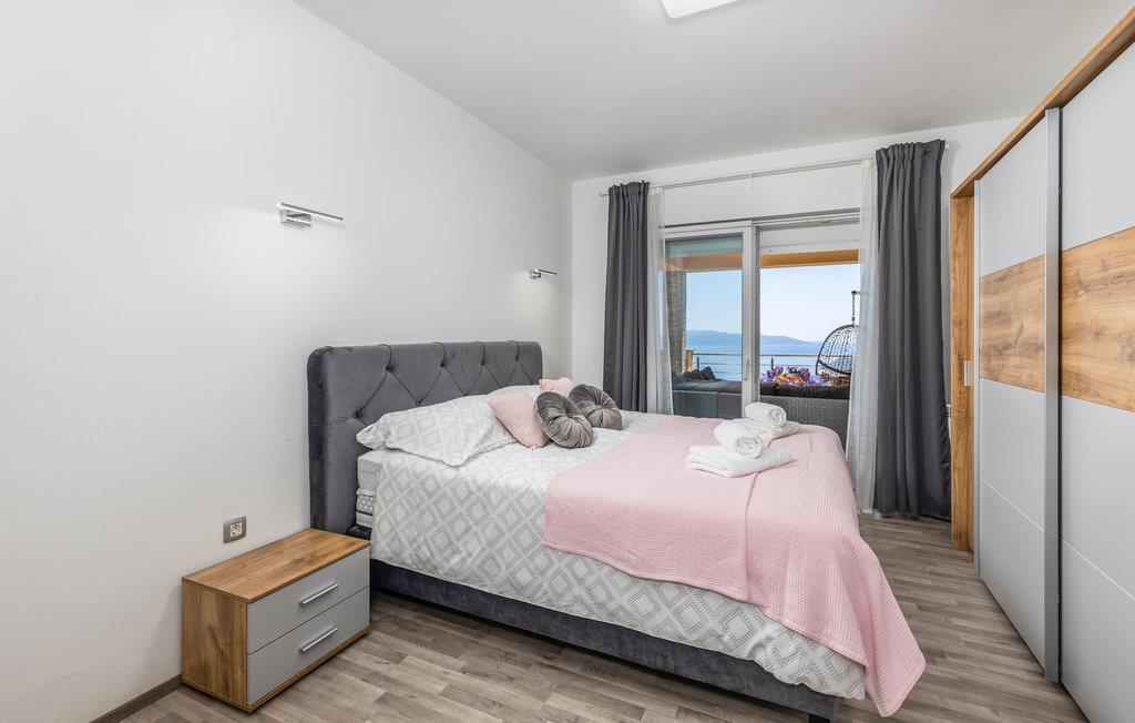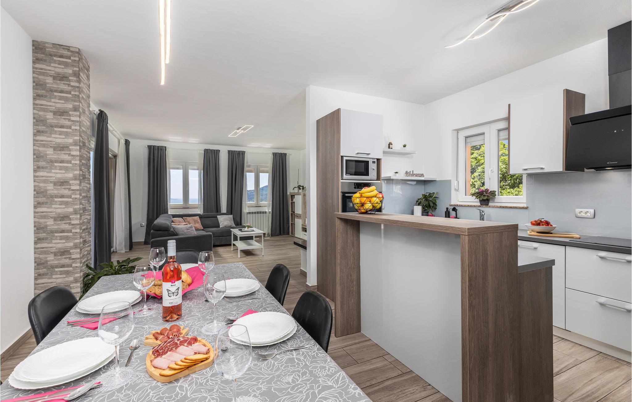 Ferielejligheden ligger i en rolig beliggenhed i den lille by Veprinac. Med sine lyse værelser, smagfuld indretning og originale detaljer indbyder lejligheden til en afslappende pause med gode muligheder for aktiviteter. Forbered en lækker morgenmad i det åbne køkken og gør jer klar til en vidunderlig dag. Nyd den vidunderlige udsigt over havet, mens I slapper af sammen. Kom tilbage hertil efter jeres udflugter, gør jer godt tilpas sammen i den indbydende sofa og snak længe, ??måske planlægger I allerede udflugterne til næste dag, for området har meget at byde på.