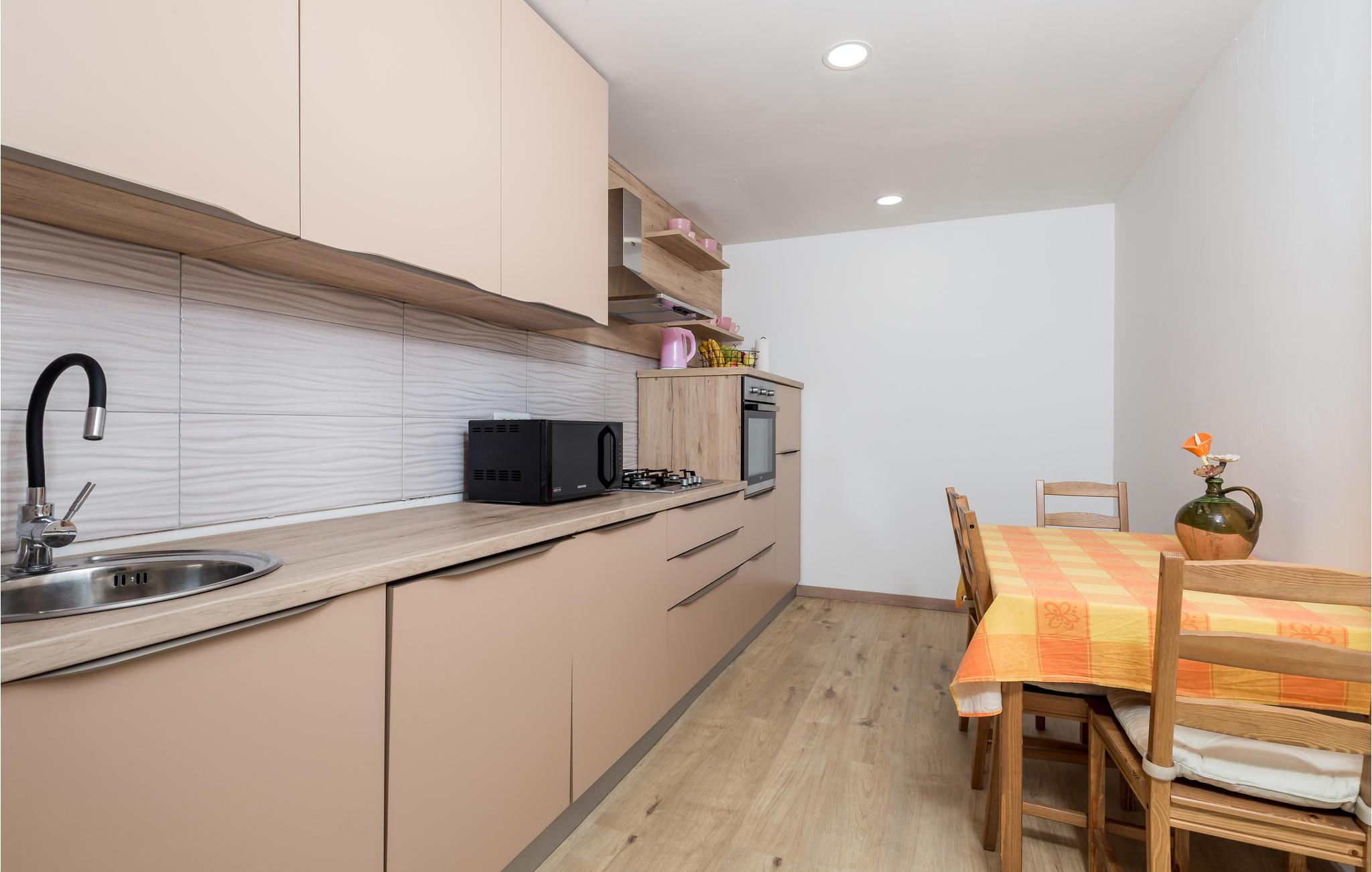 Over den fortryllende Kvarnerbugt, ikke langt fra en idyllisk skov, ligger dette feriehus. Det strækker sig over både stueplan og første sal, der er forbundet via udendørs trapper. I stueplan er der et soveværelse, et badeværelse og et lille køkken, mens S2 også kan bruges som stue da her her sovesofa. På første sal er der to soveværelser, et badeværelse, et rummeligt køkken og en stue. I vil nok tilbringe meget tid ved og i poolen, ligesom jeres børn vil sætte pris på haven, hvor de kan tumle sig og spille bold. I kan hygge jer sammen i pavillonen, hvor der er en grill, og kan høste grøntsager i haven, hvis de er parat. Vil I bade i det krystalklare hav, så varer det ikke længe at køre til de skønne strande ved Rijeka og Opatija.