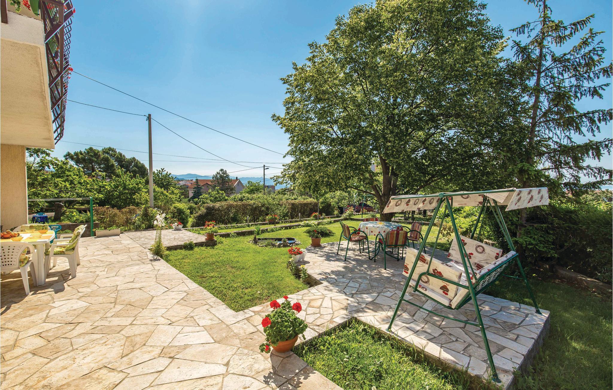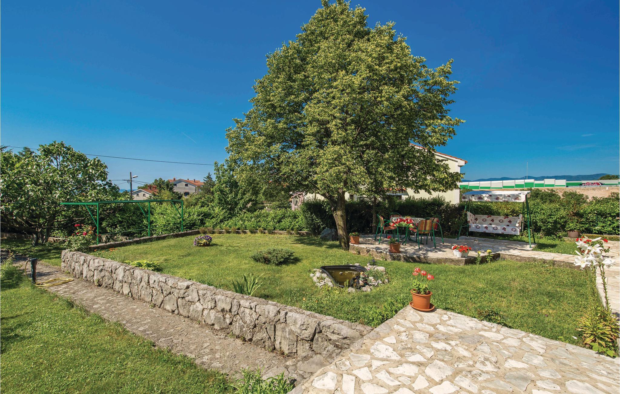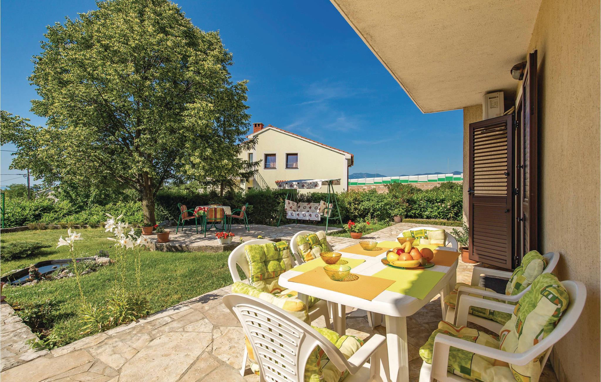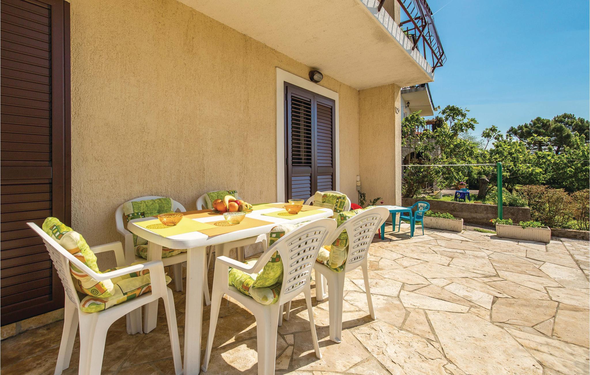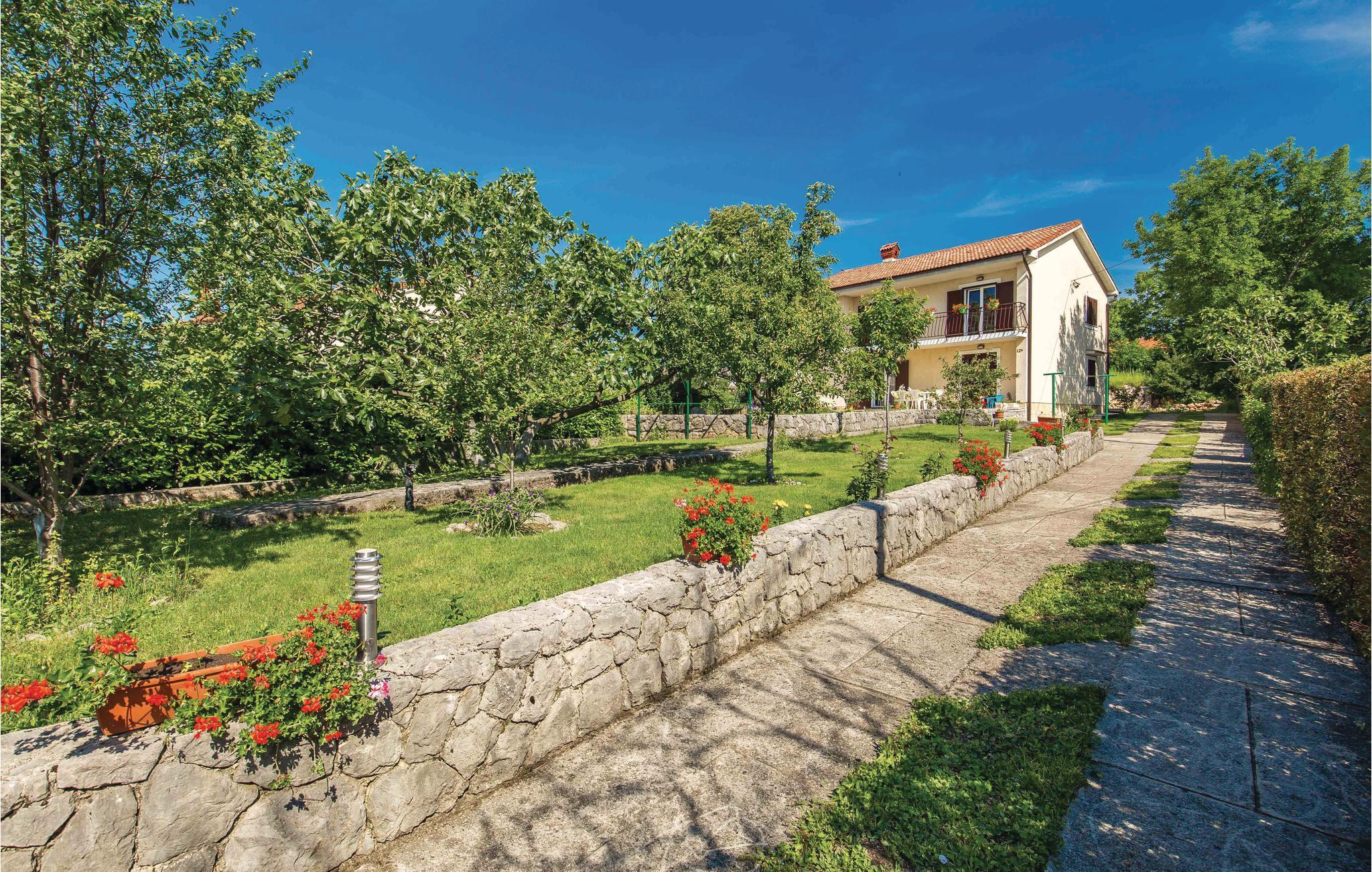 Denne venligt og praktisk indrettede ferielejlighed ligger i stueetagen af en privat ejendom. Slap af på den hyggelige terrasse, der er omringet af grønt. Lejligheden råder over tre soveværelser, en dagligstue med køkken og to badeværelser. I bil kommer I hurtigt til byerne Rijeka og Opatija. Her venter idylliske gåture ved havet, flotte strande, kulturelle arrangementer, fremragende restauranter og maleriske kystbyer. Hold en pause i et af restauranterne og smag på traditionelle specialiteter fra havet. Har I lyst til en aktiv ferie, kan I tage på udflugt i naturparken i Ucka bjerkæden. Her kan I både vandre og prøve paragliding. Øerne Cres og Krk er ligeledes et besøg værd.