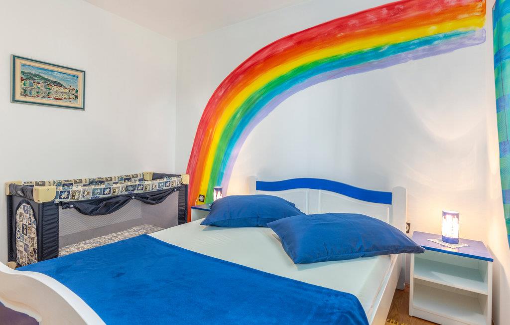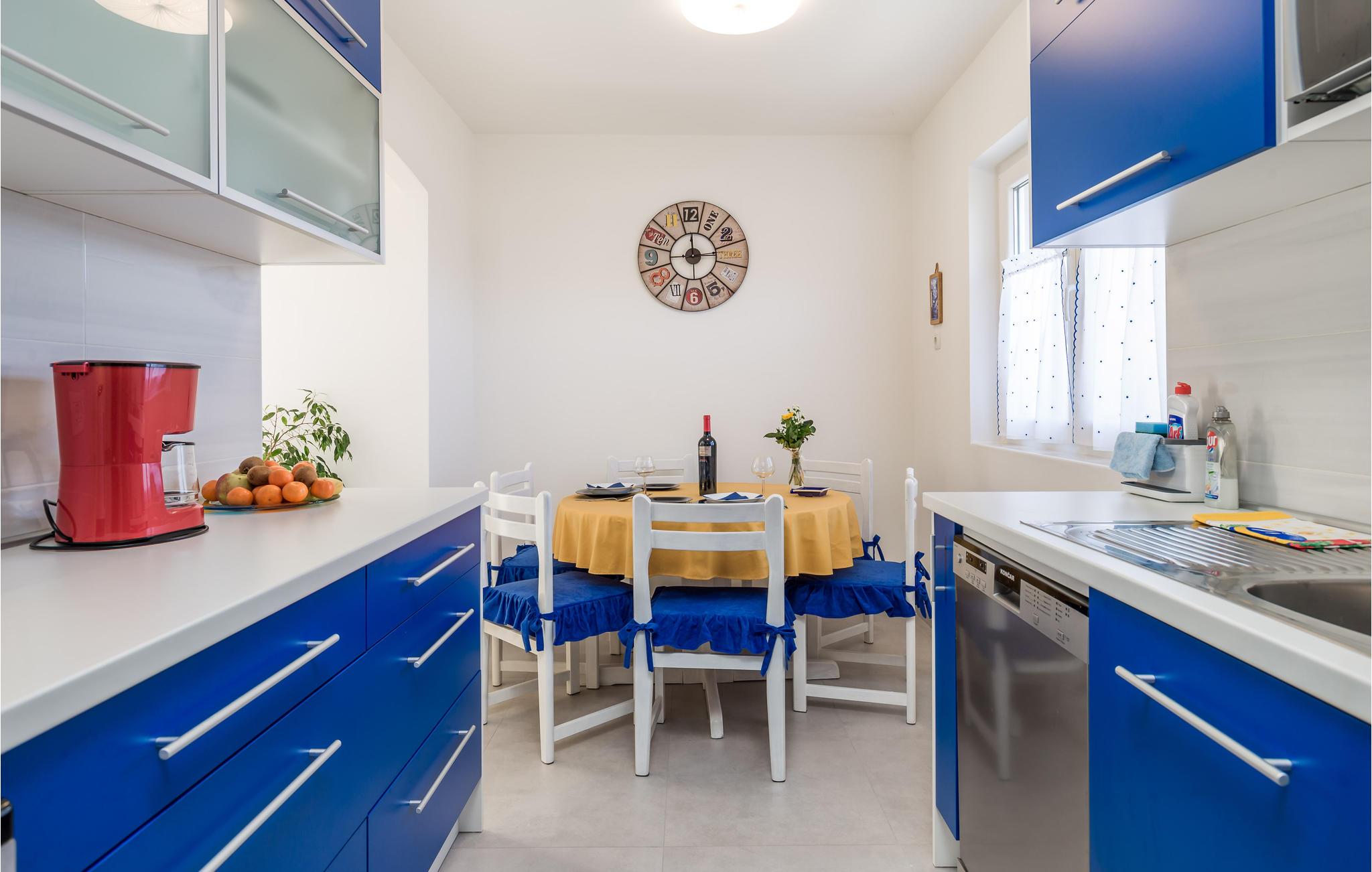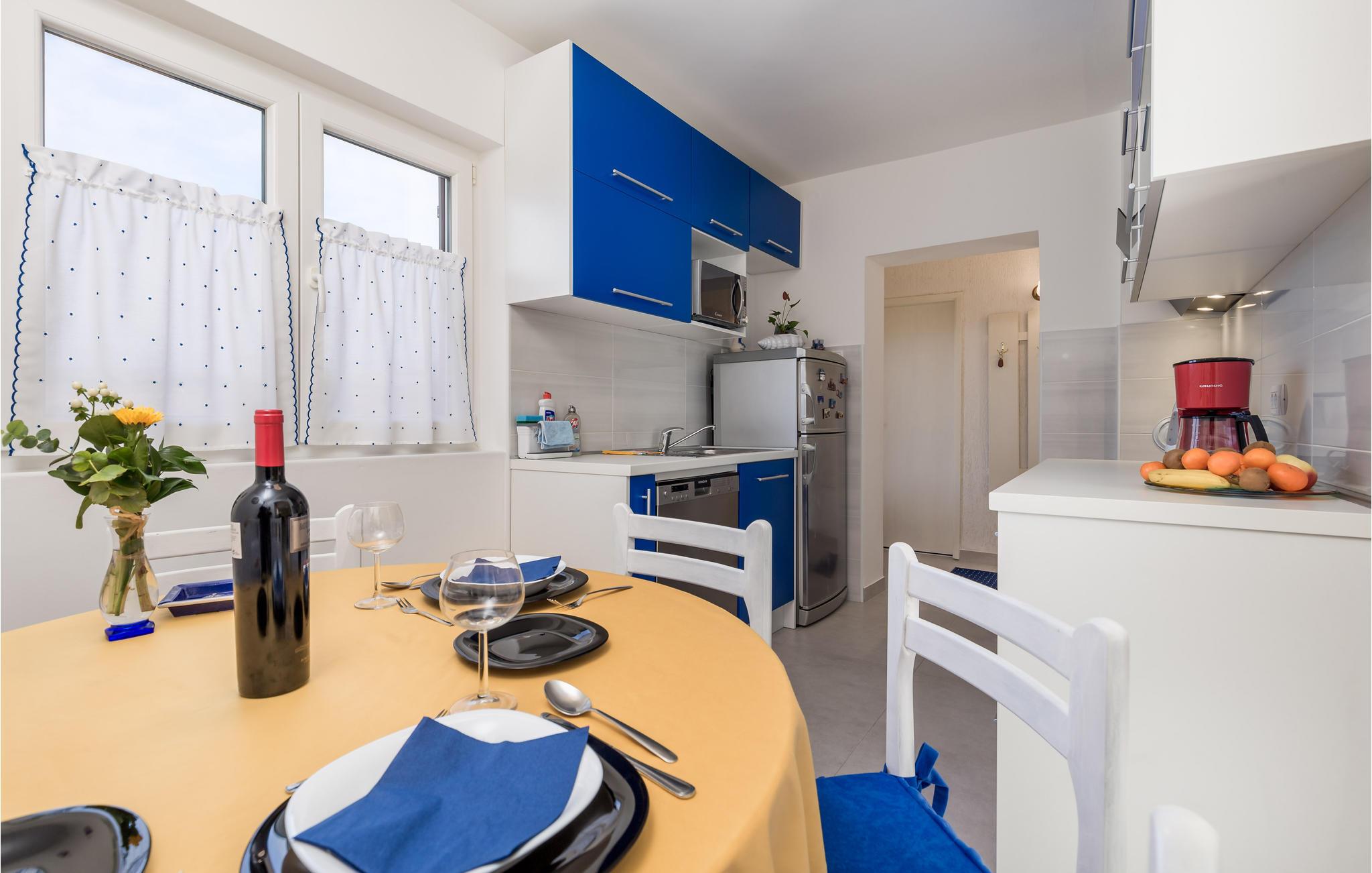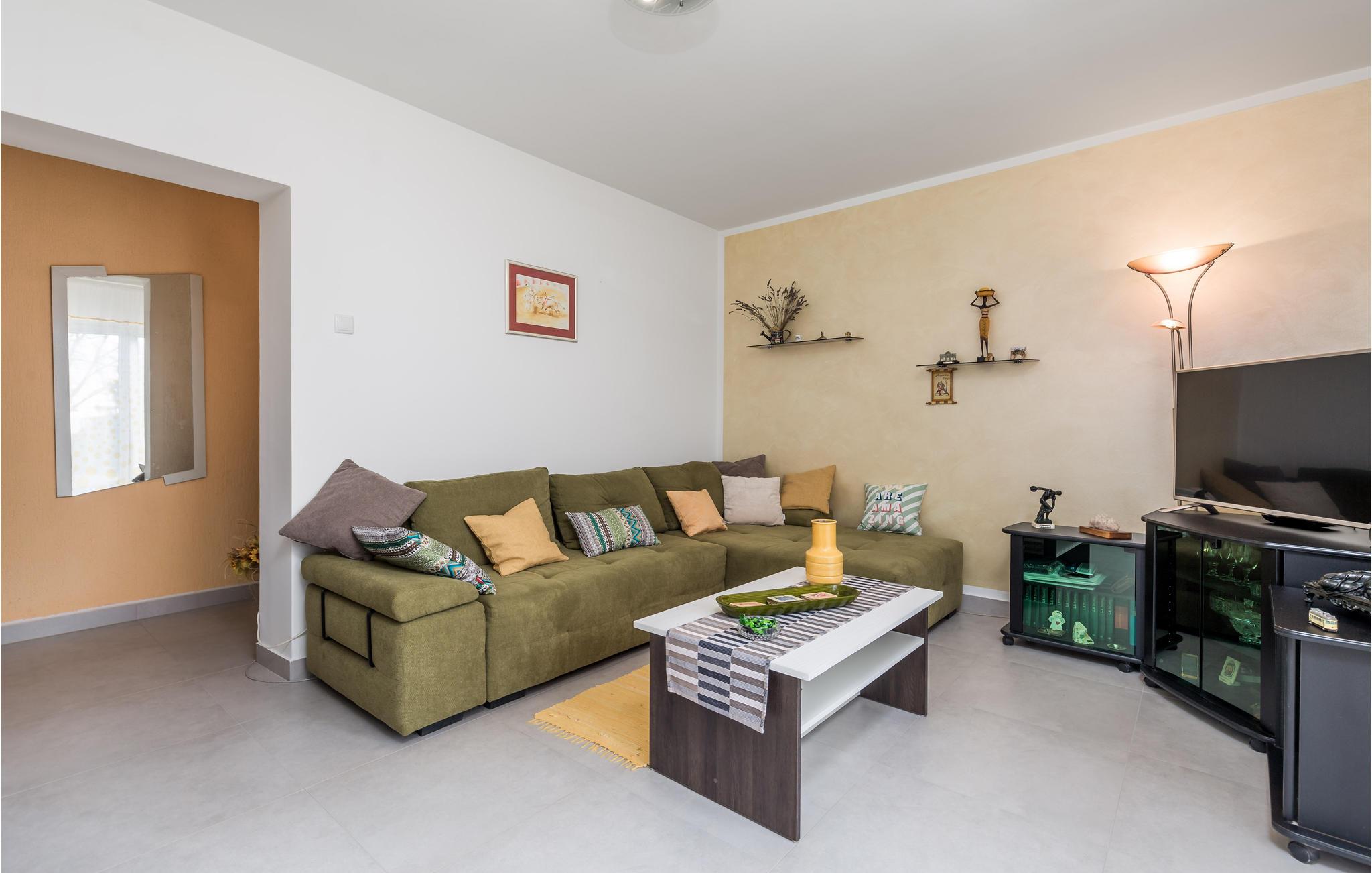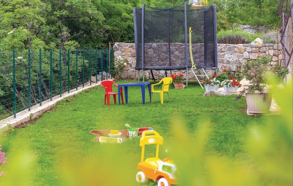 Denne venligt og praktisk indrettede ferielejlighed ligger i stueetagen af en privat ejendom. Slap af på den hyggelige terrasse, der er omringet af grønt. Lejligheden råder over tre soveværelser, en dagligstue med køkken og to badeværelser. I bil kommer I hurtigt til byerne Rijeka og Opatija. Her venter idylliske gåture ved havet, flotte strande, kulturelle arrangementer, fremragende restauranter og maleriske kystbyer. Hold en pause i et af restauranterne og smag på traditionelle specialiteter fra havet. Har I lyst til en aktiv ferie, kan I tage på udflugt i naturparken i Ucka bjerkæden. Her kan I både vandre og prøve paragliding. Øerne Cres og Krk er ligeledes et besøg værd.