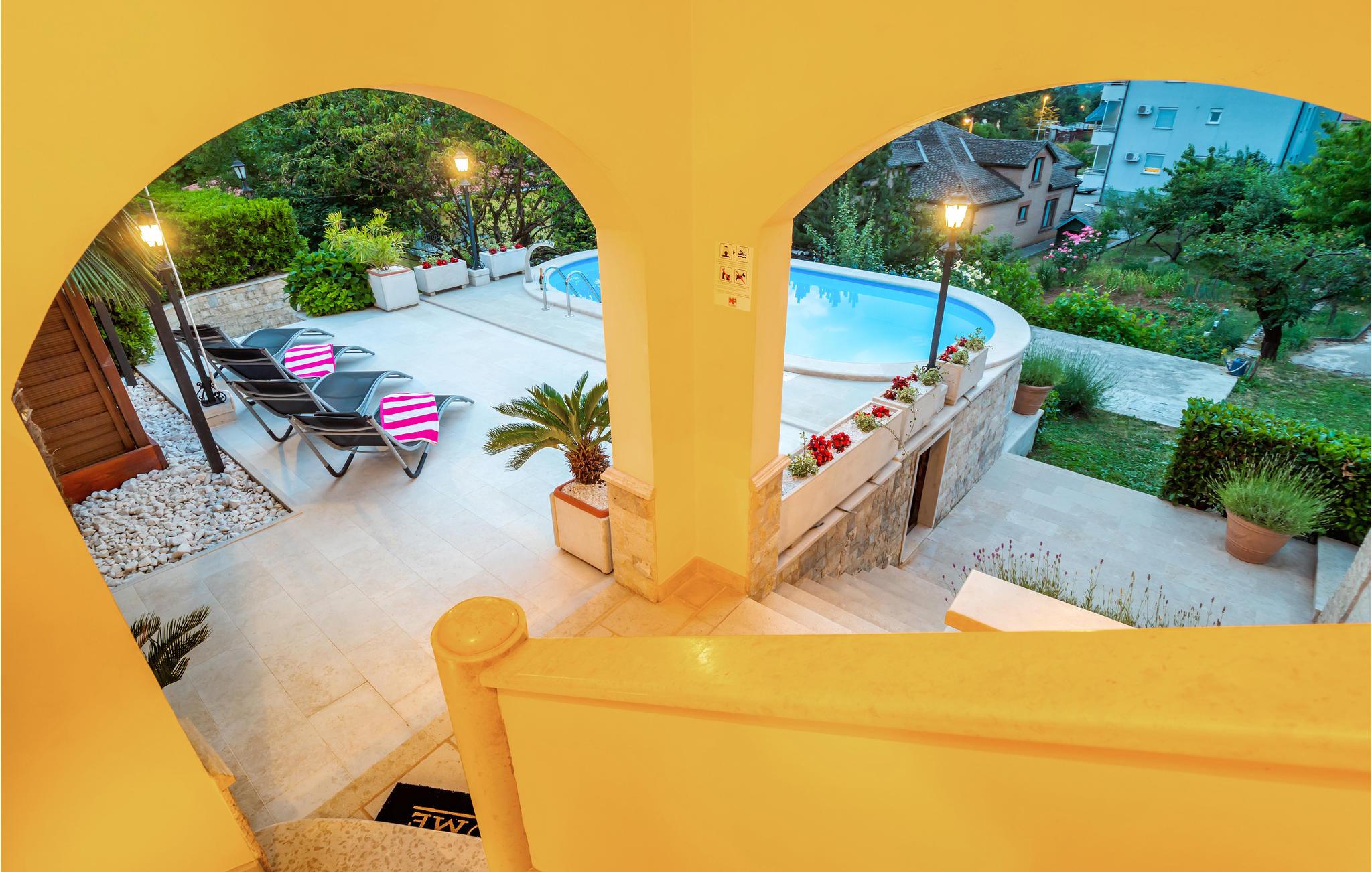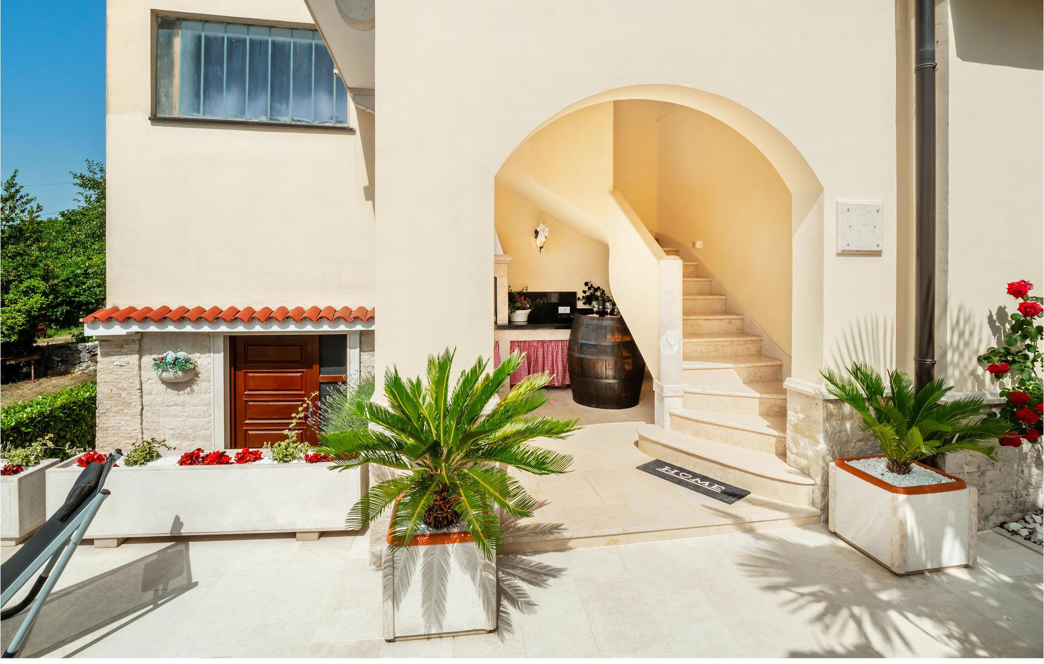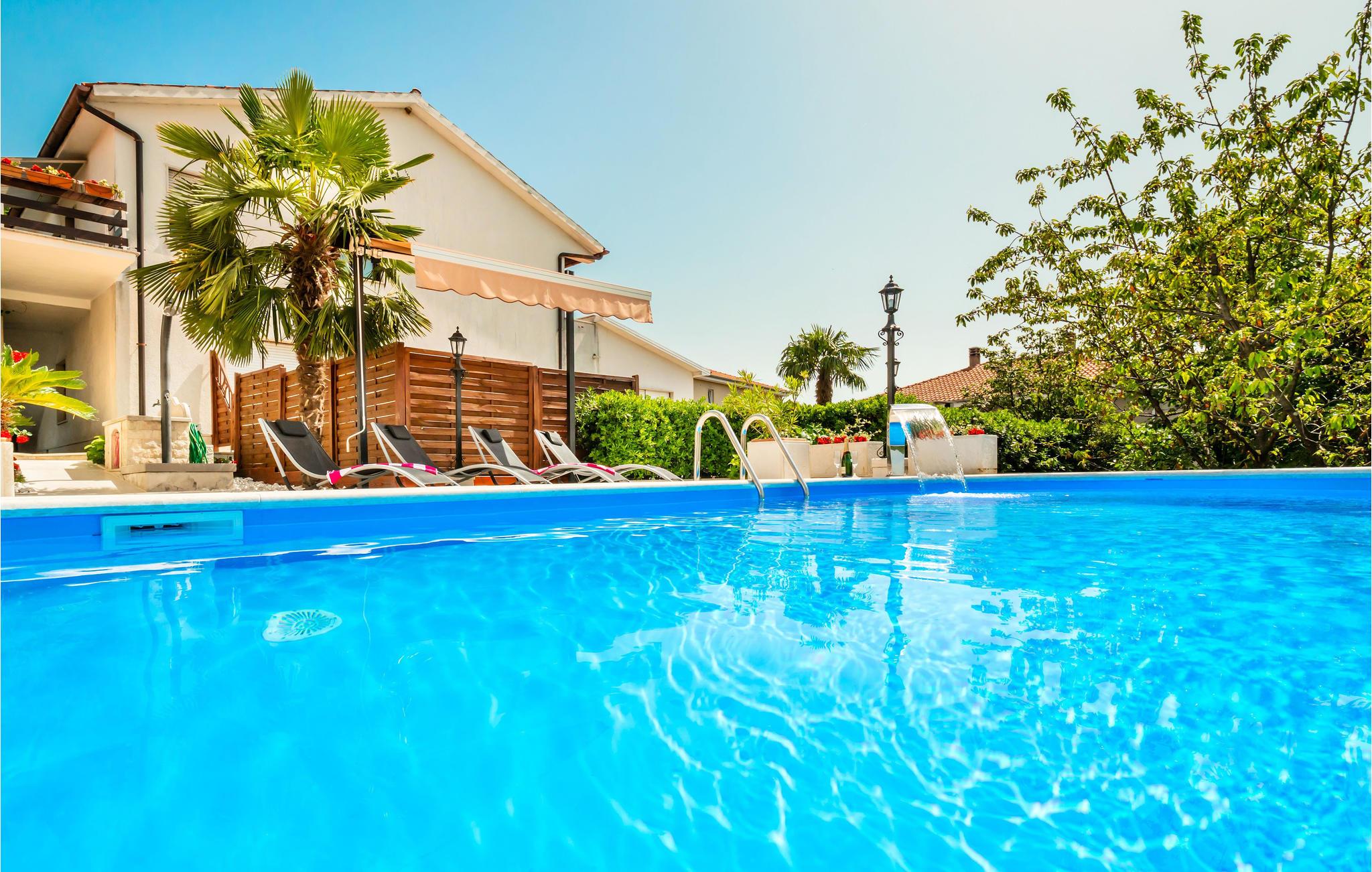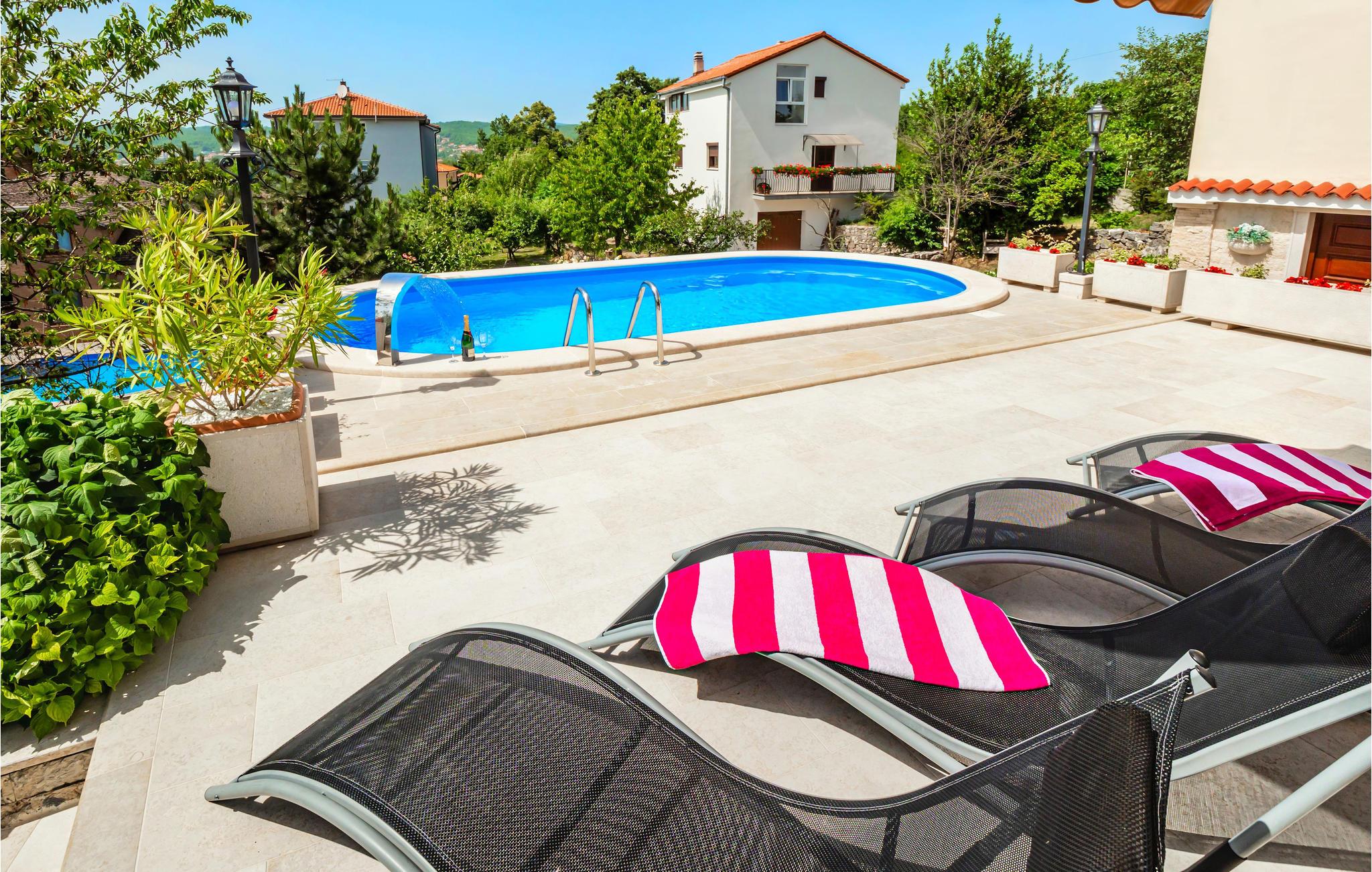 Denne komfortable og rummelige ferielejlighed med swimmingpool ligger i Viskovo, en rolig bydel i byen Rijeka. Indgangen og grunden er skilt af fra den del, der benyttes af husets ejer, så I kan se frem til fuldstændig ro og høj grad af privatsfære. I lejligheden er der tre soveværelser, et køkken, en stue, et badeværelse og en balkon og to overdækkede terrasser. På den ene terrasse står en gasgrill. I bor perfekt til dagsudflugter til Rijeka, Opatija, Crikvenica eller til øen Krk, og takket være de gode trafikale forbindelser nås halvøen Istrien nemt, hvor der er mange interessante udflugtsmål som Porec, Rovinj og Pula. Vi anbefaler jer også at besøge den maleriske by Kastav og Naturparken Ucka, med sin fuldstændigt betagende skønhed.