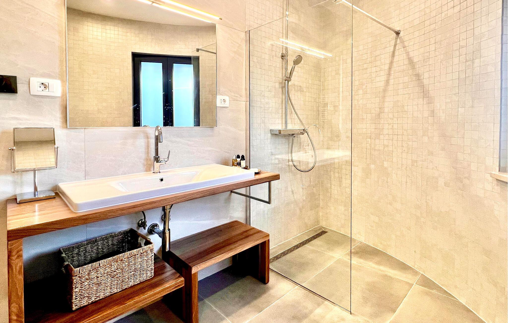 Nyd privatlivet på den afsondrede poolterrasse – Begynd dagene med morgenmad udendørs og glæd jer til timevis af solbadning. Forkæl jer selv med afslappende øjeblikke i spabadet på den panoramiske terrasse og nyd delikatesser fra grillen.
